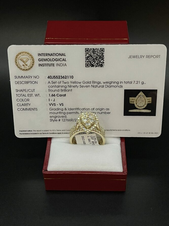 14KT W/Gold 1.66CT Certified Bridal Ring VVS Clarity Size 7 Complementary Sizing Available I-J Color