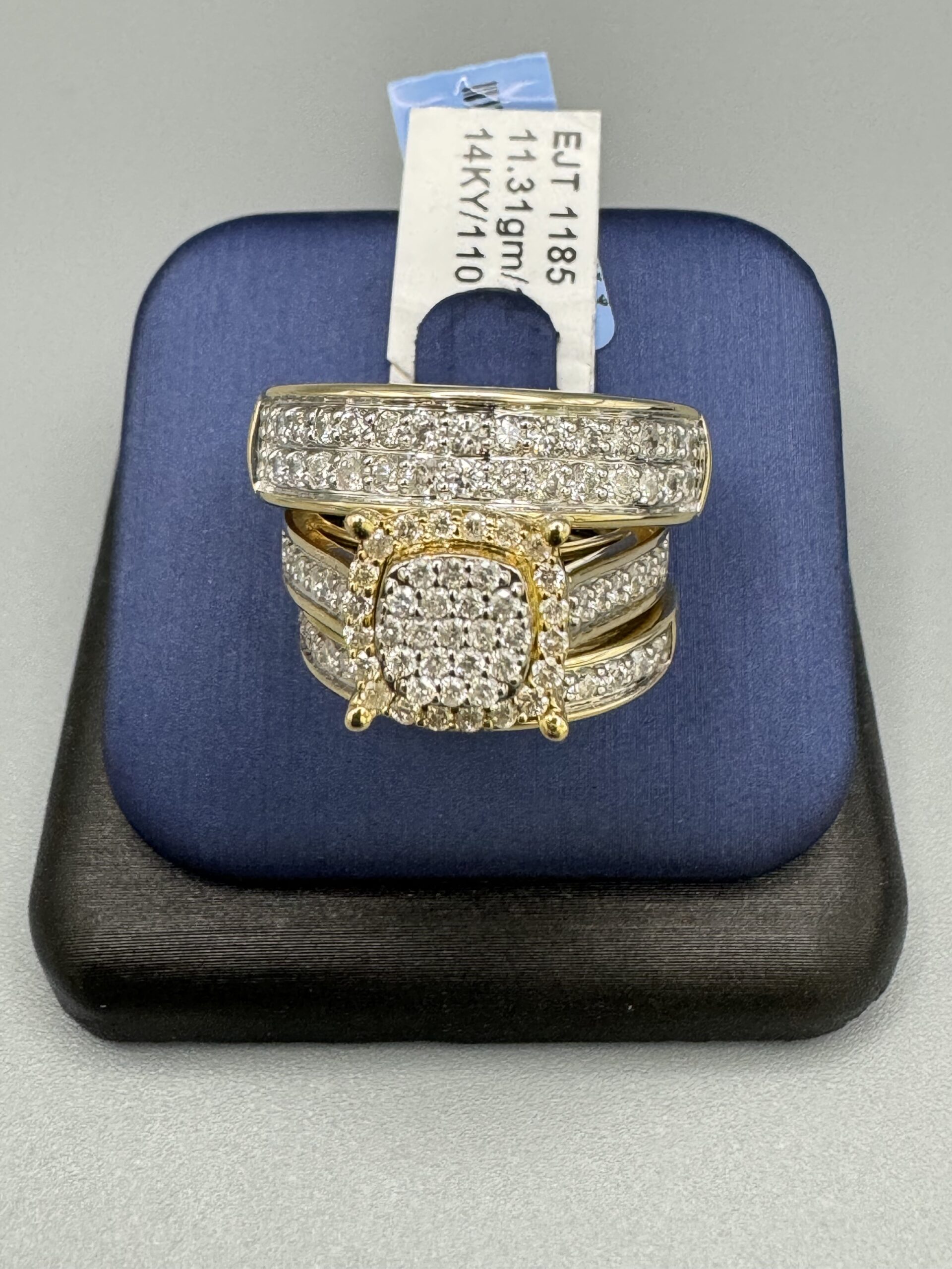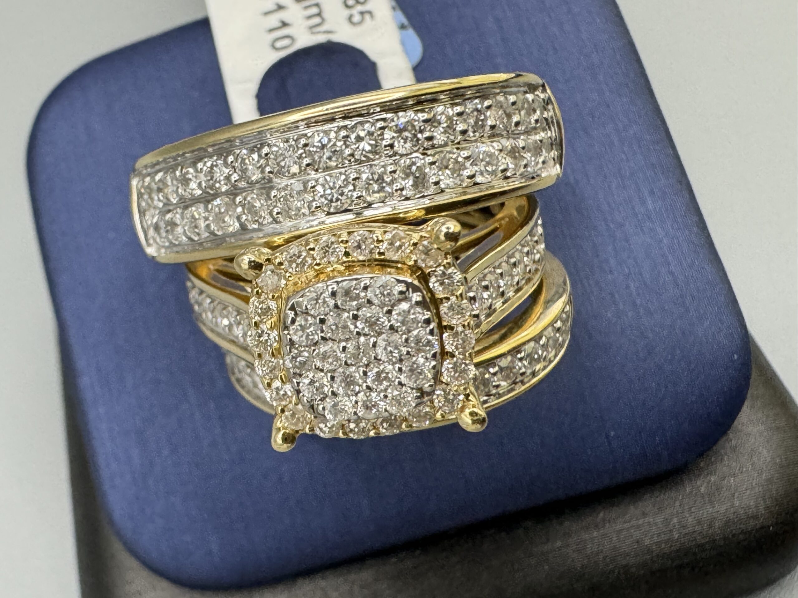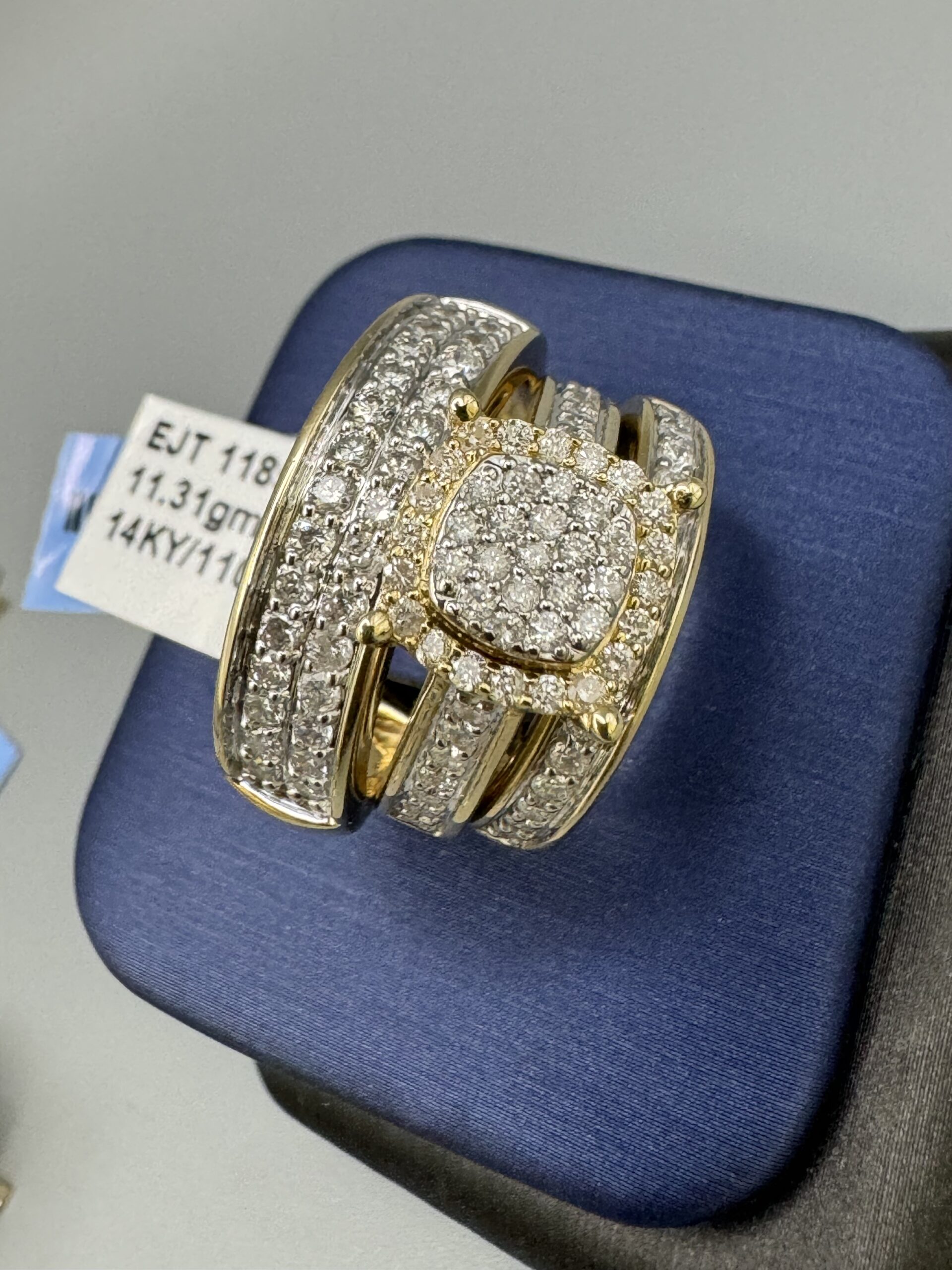 14KT Gold 1.71CT Diamond TrioSet Ring Gold Comes With Mens Band 6MM Width Size 10 Ladies Size 7 Approx Gold Weight 11.13 Gram VS Quality