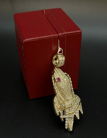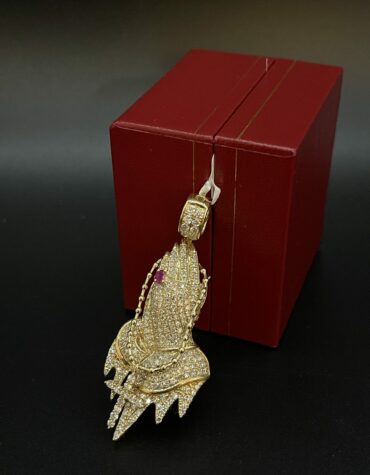 14KT Gold 1.78CT Dia Praying Hand Pendant With Genuine Ruby Stone All Honeycomb Setting Solid Gold
