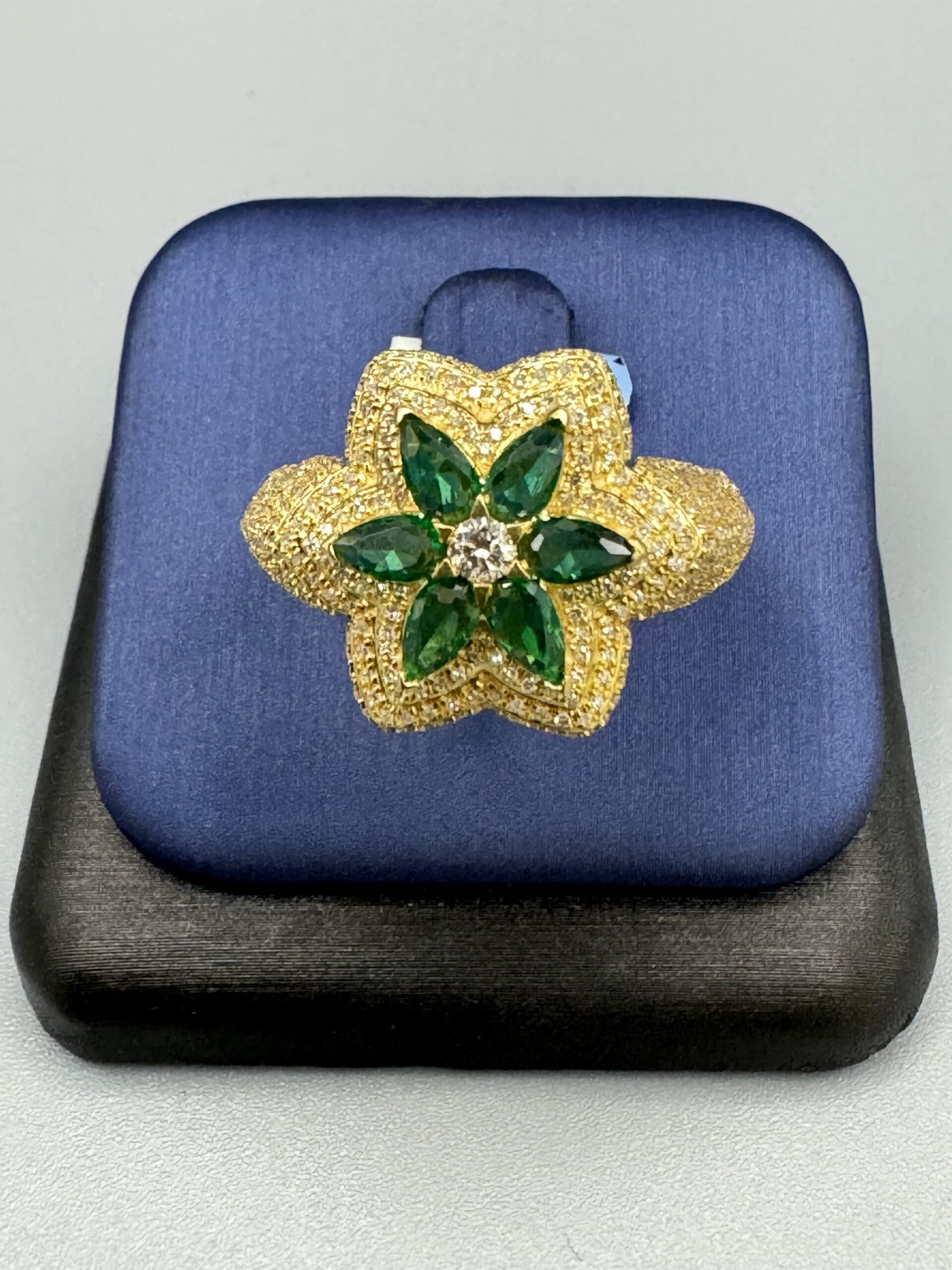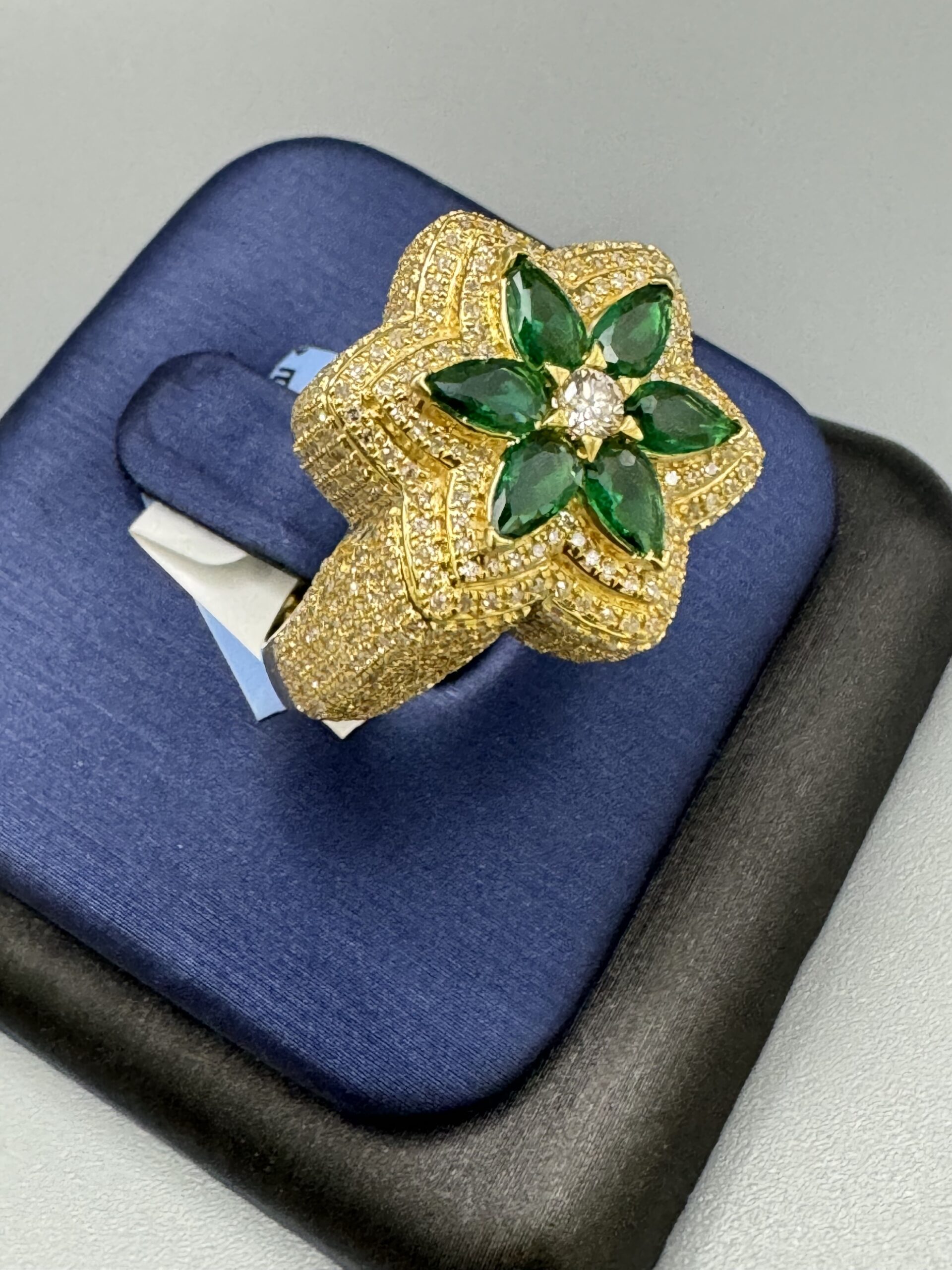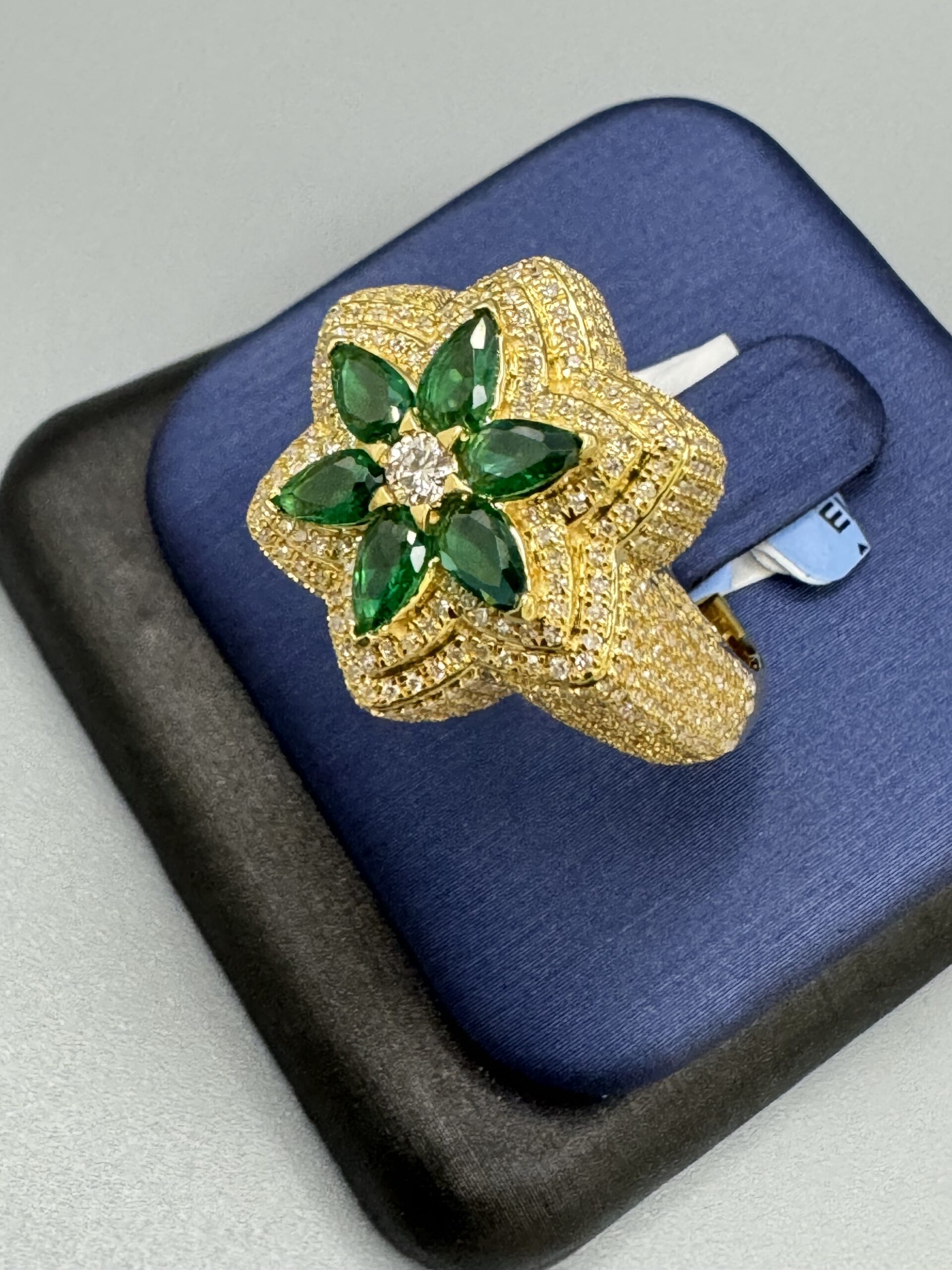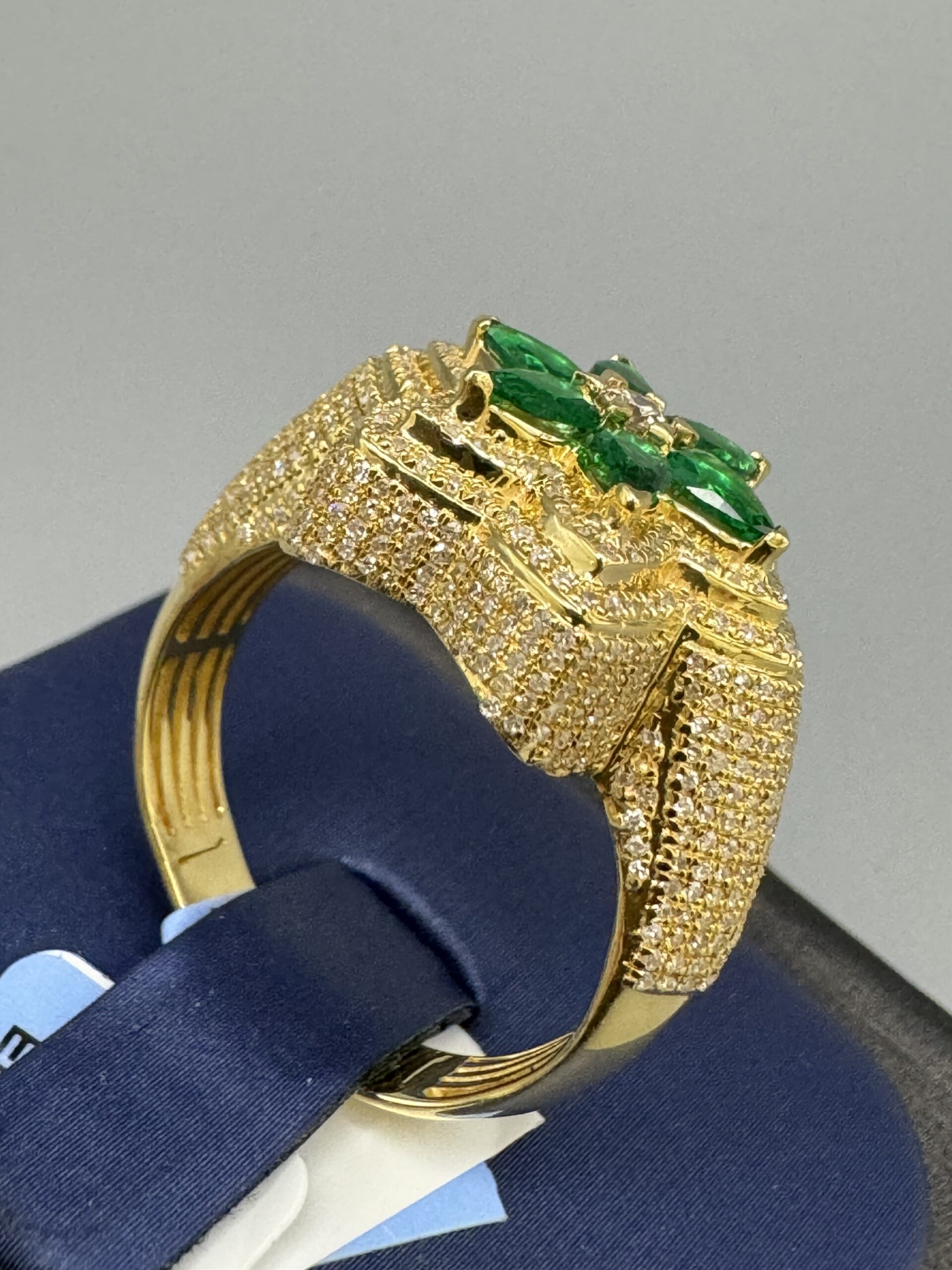 14KT Gold 1.95CT Diamond Green Emerald Mens Ring Solid Gold Approx Gold Weight 6.82 Gram Size 10 VS Quality