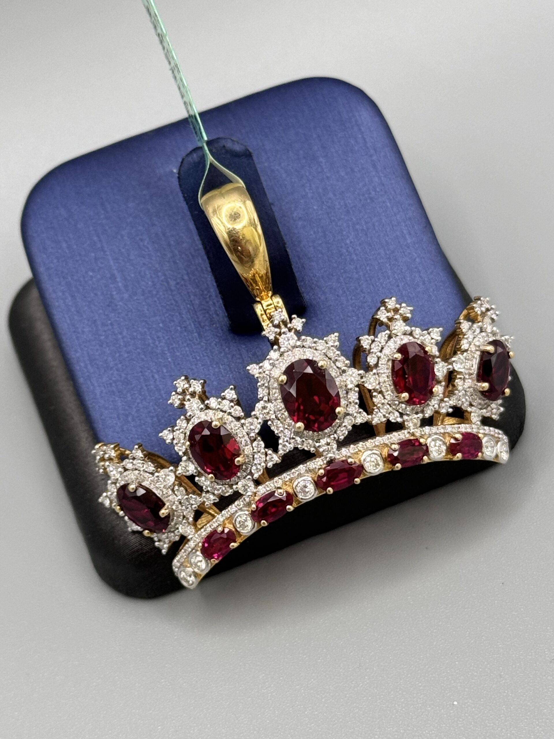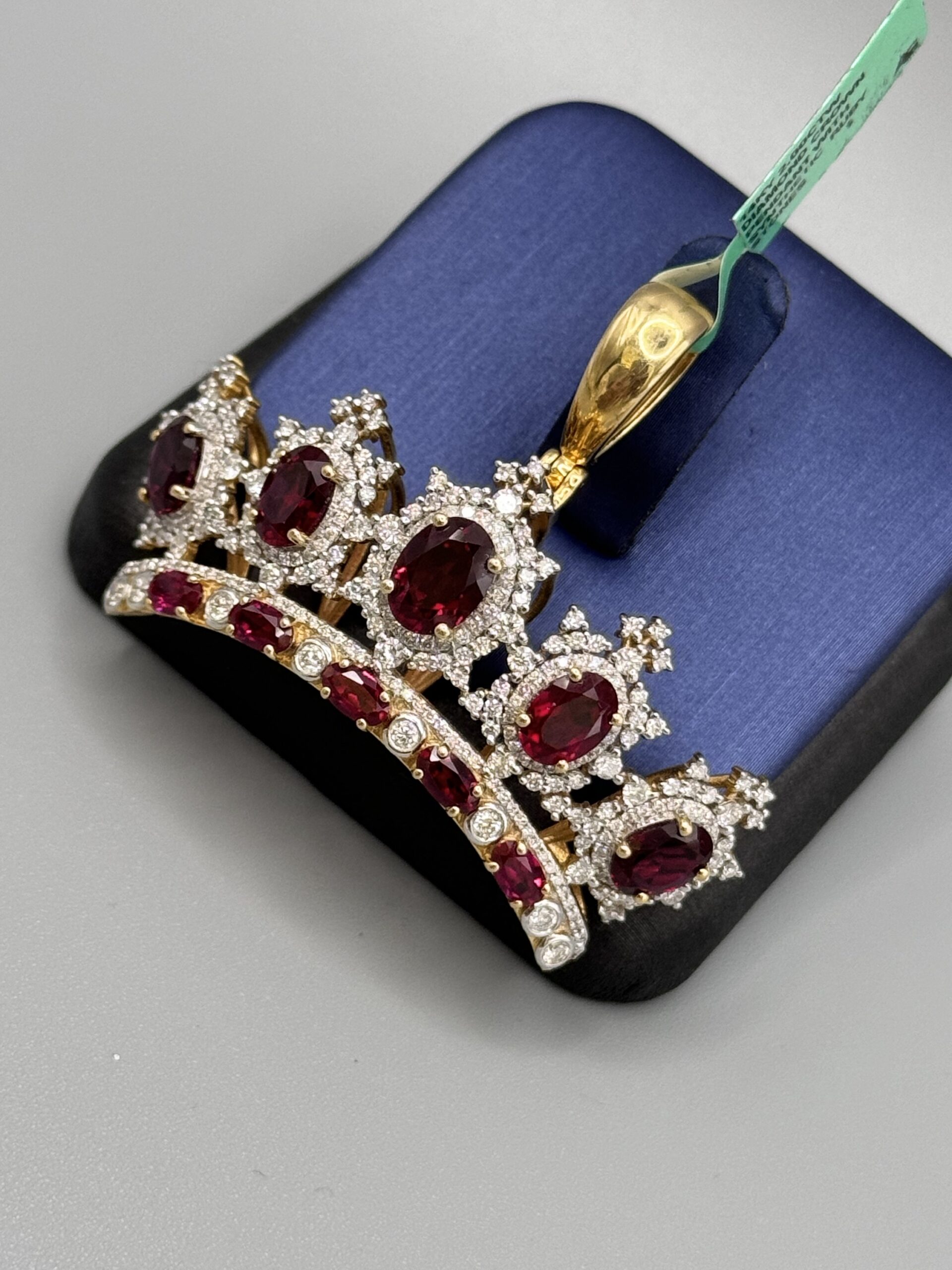14KT Gold 2.00CT Diamond Ruby Queen Crown Pendant Custom Made 2″ Wide By 1.5″ Wide Approx Gold Weight 13.7 Gram