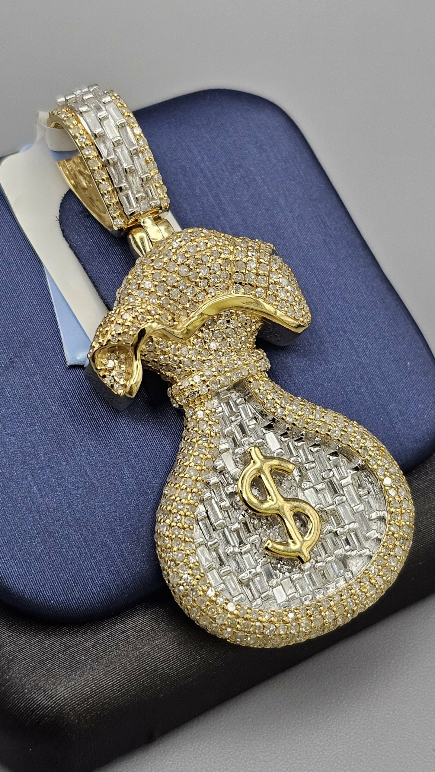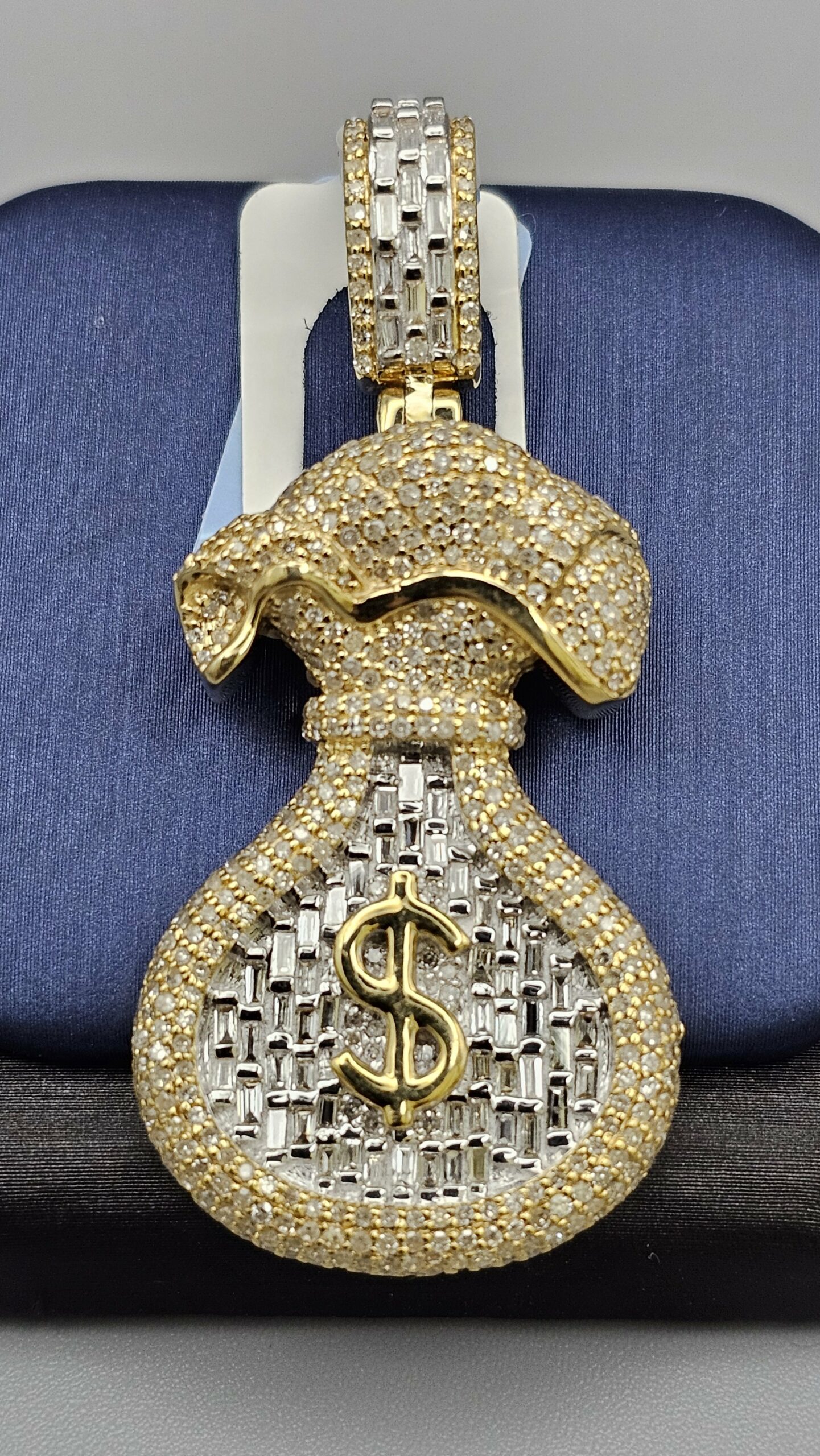 14KT Gold 3.48CT Diamond Money Bag Pendant