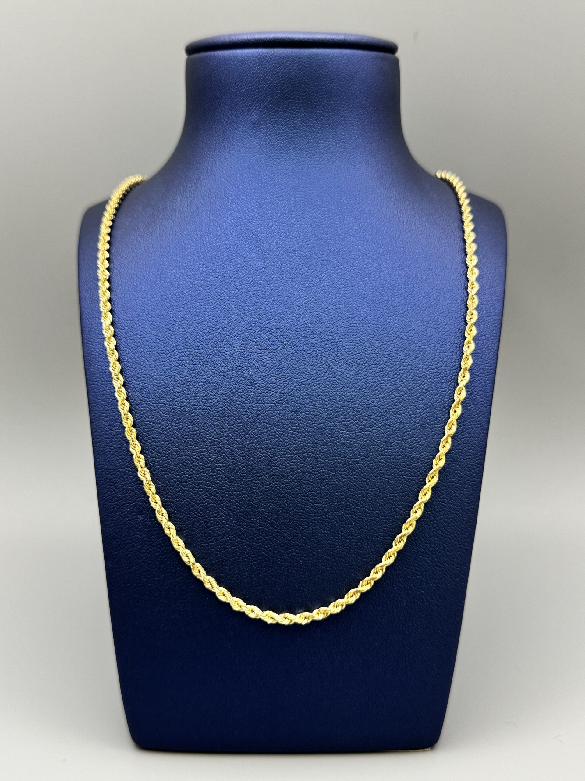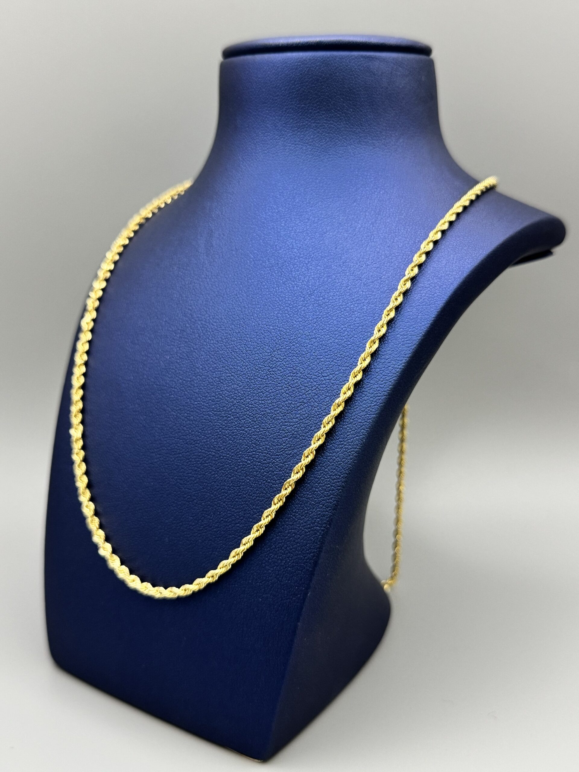 14KT Gold 2.5MM DiaCut Solid Rope Necklace 24” Approx Gold Weight 12.0 Gram