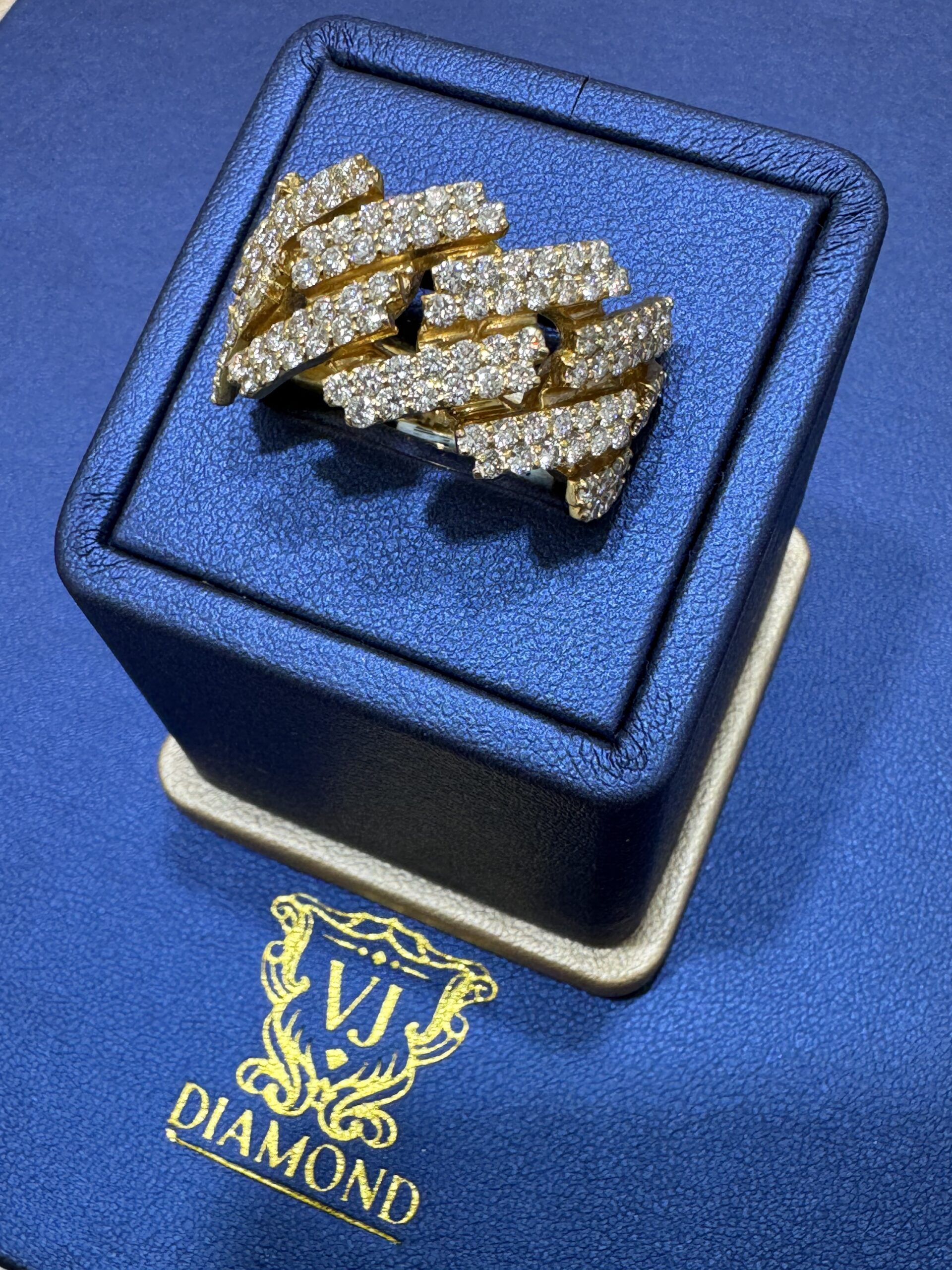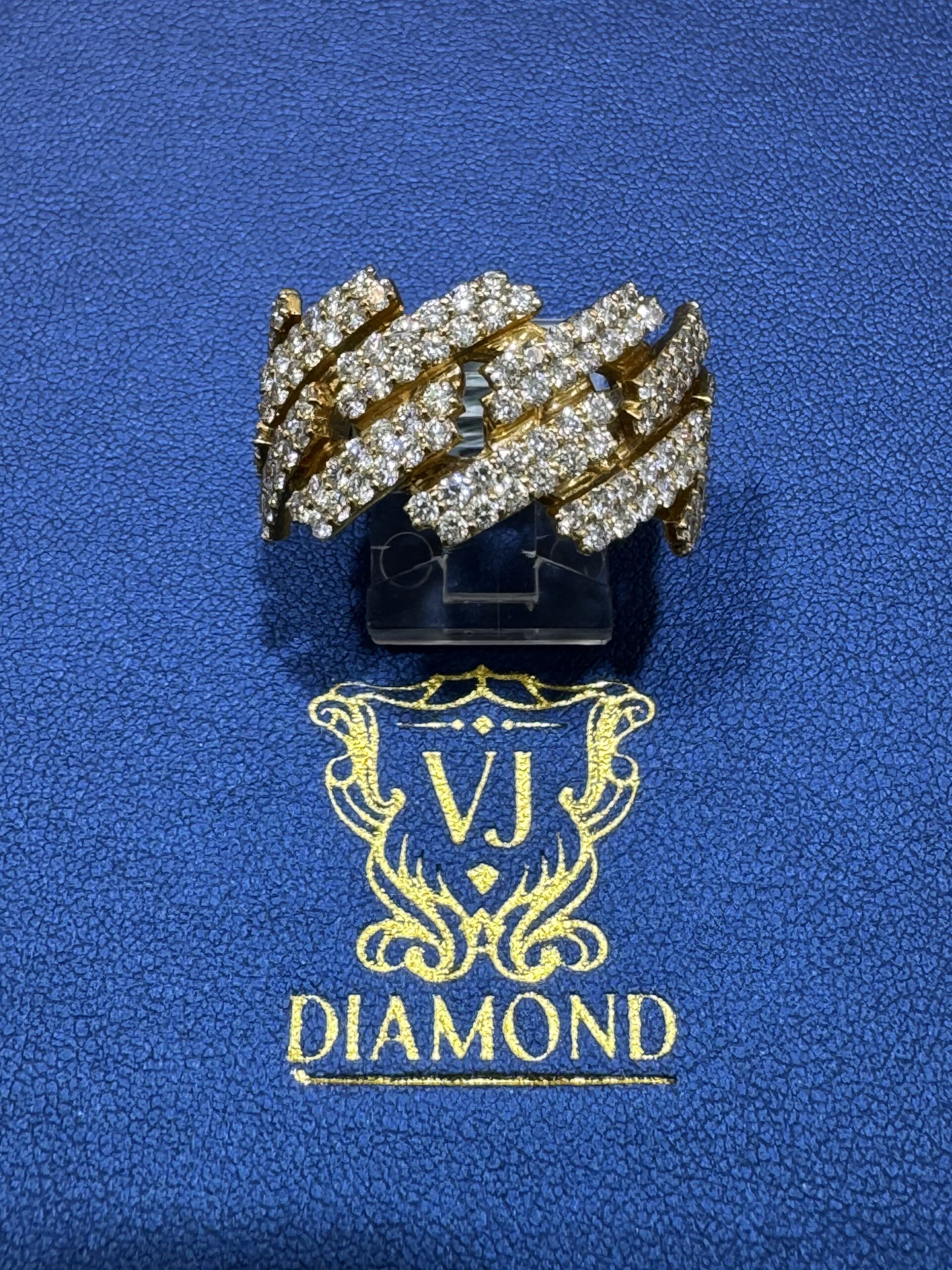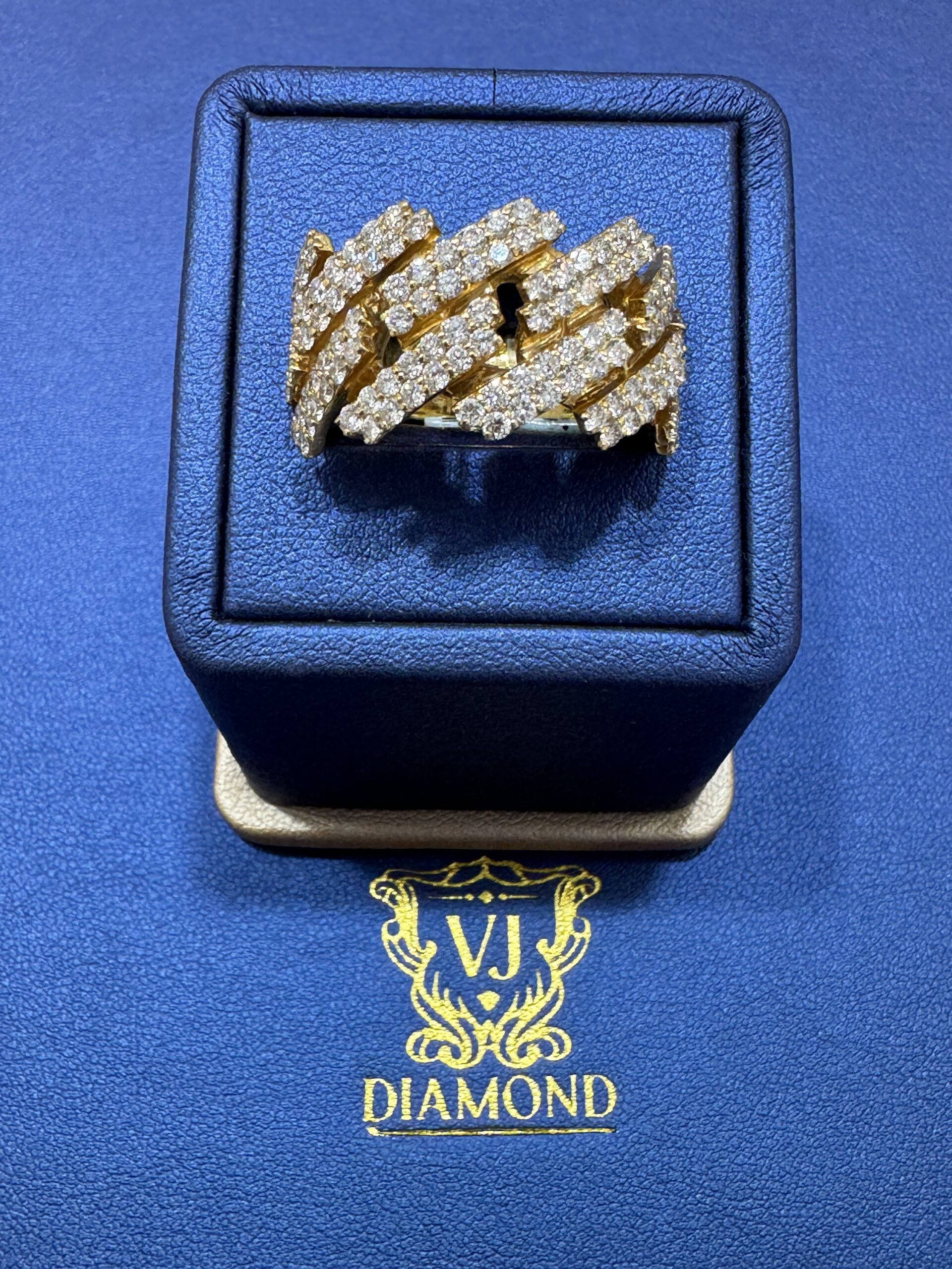 14KT Gold 2.85CT Diamond Cuban Ring 15MM Width Approx Gold Weight 17.1 Gram Size 10 Sizing Available Solid Gold Vvs Clarity Natural Diamonds