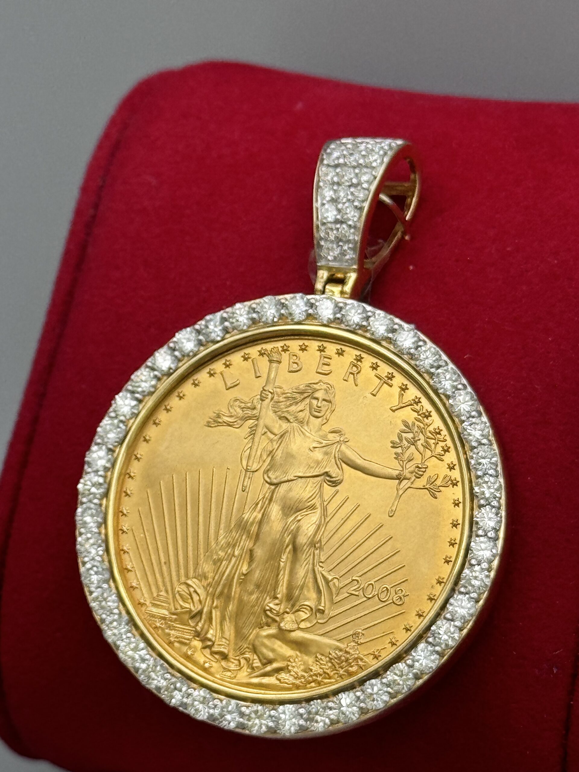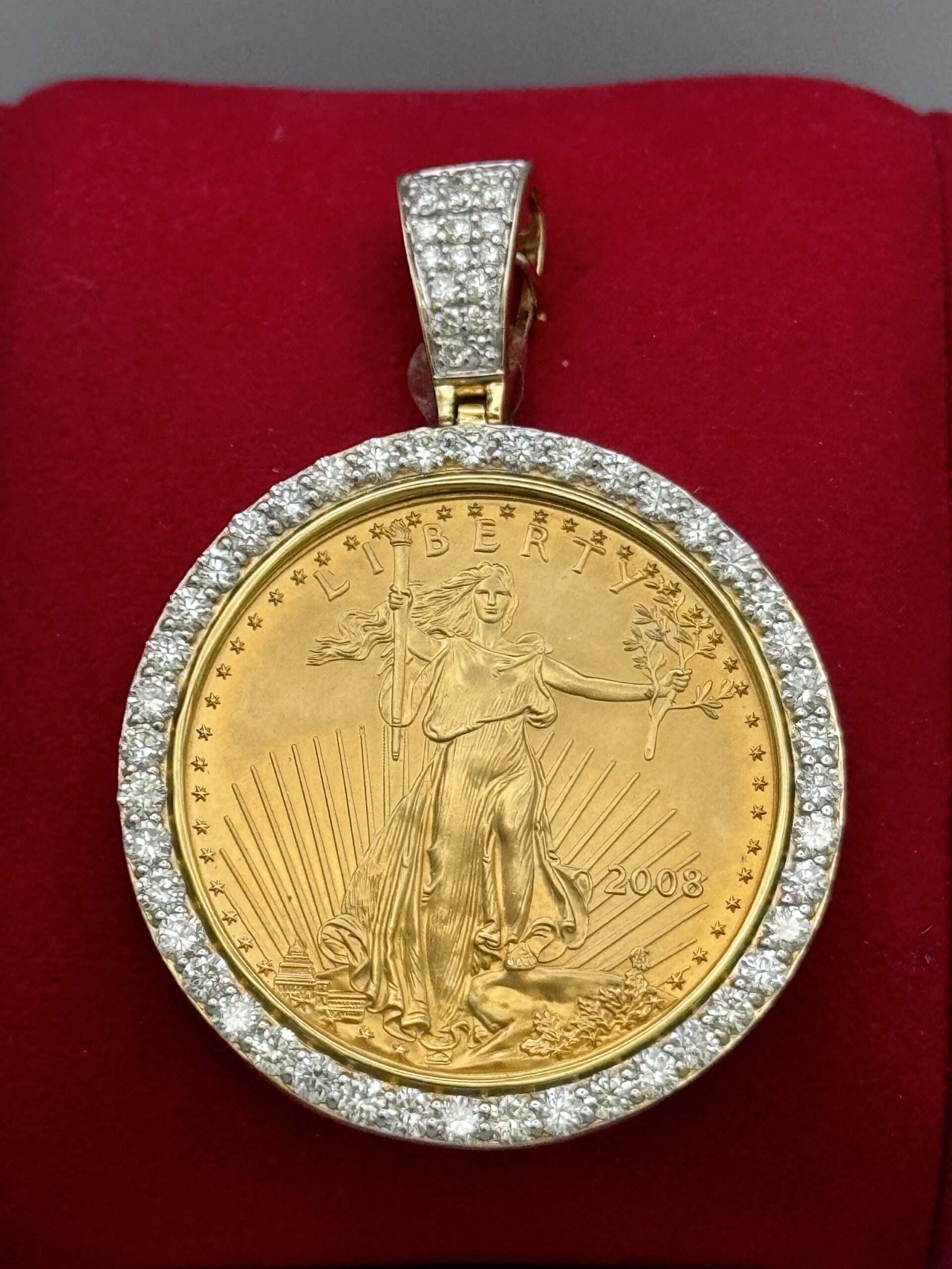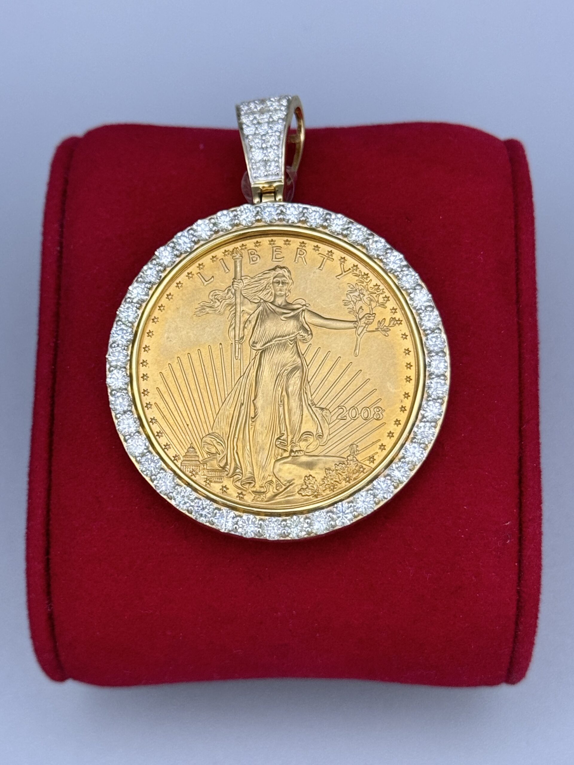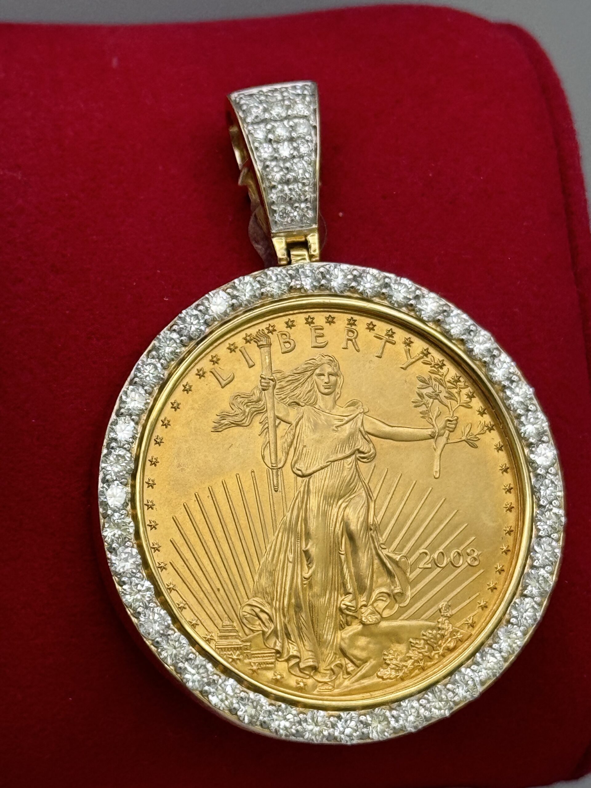14KT Gold 3.00CT Diamond 1 Ounce Pendant American Eagle Pendant All Natural VS Clarity Diamonds Approx Gold Weight 45.5 Gram 2″ Tall 1.5″ Wide