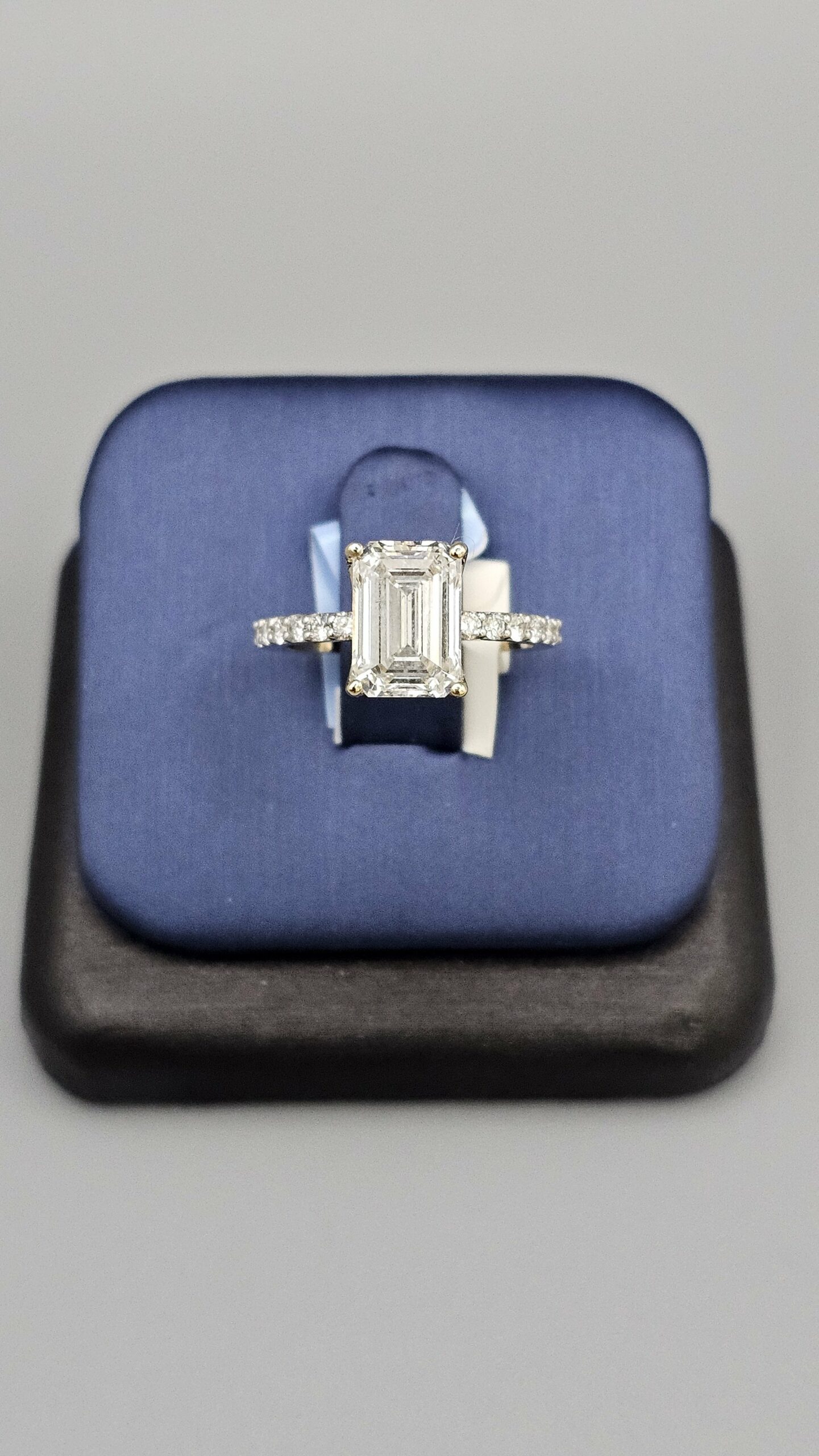 14KT Gold 3.00CT LGDia EmeraledCut Engagement Ring Size 7 VS Clarity F Color Center Solitaire 2.94CT Comes With Certificate Sizing Available