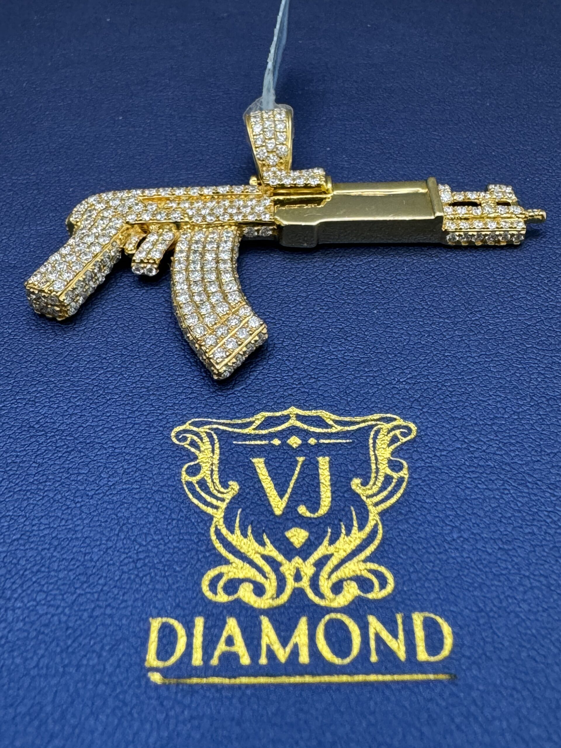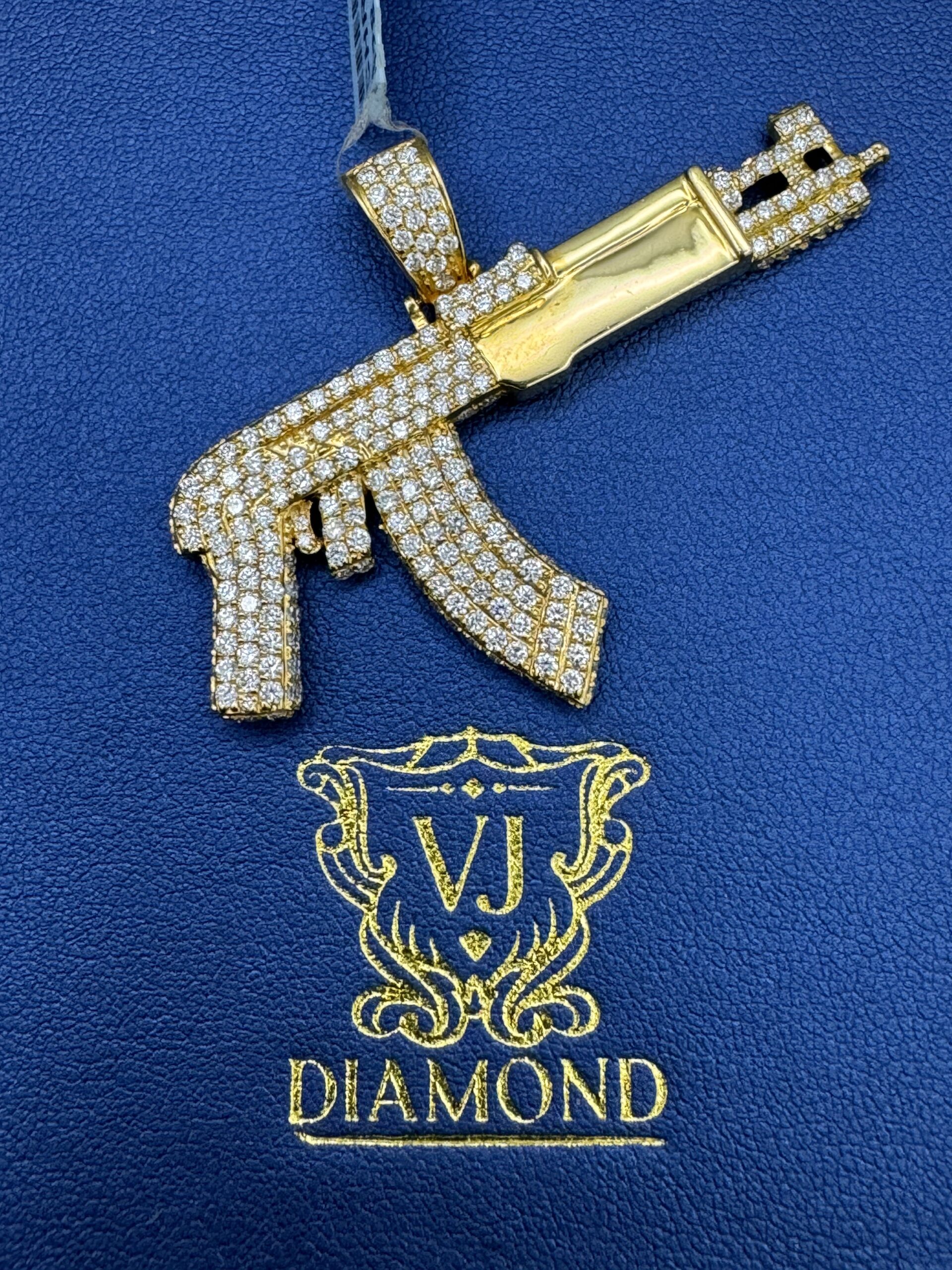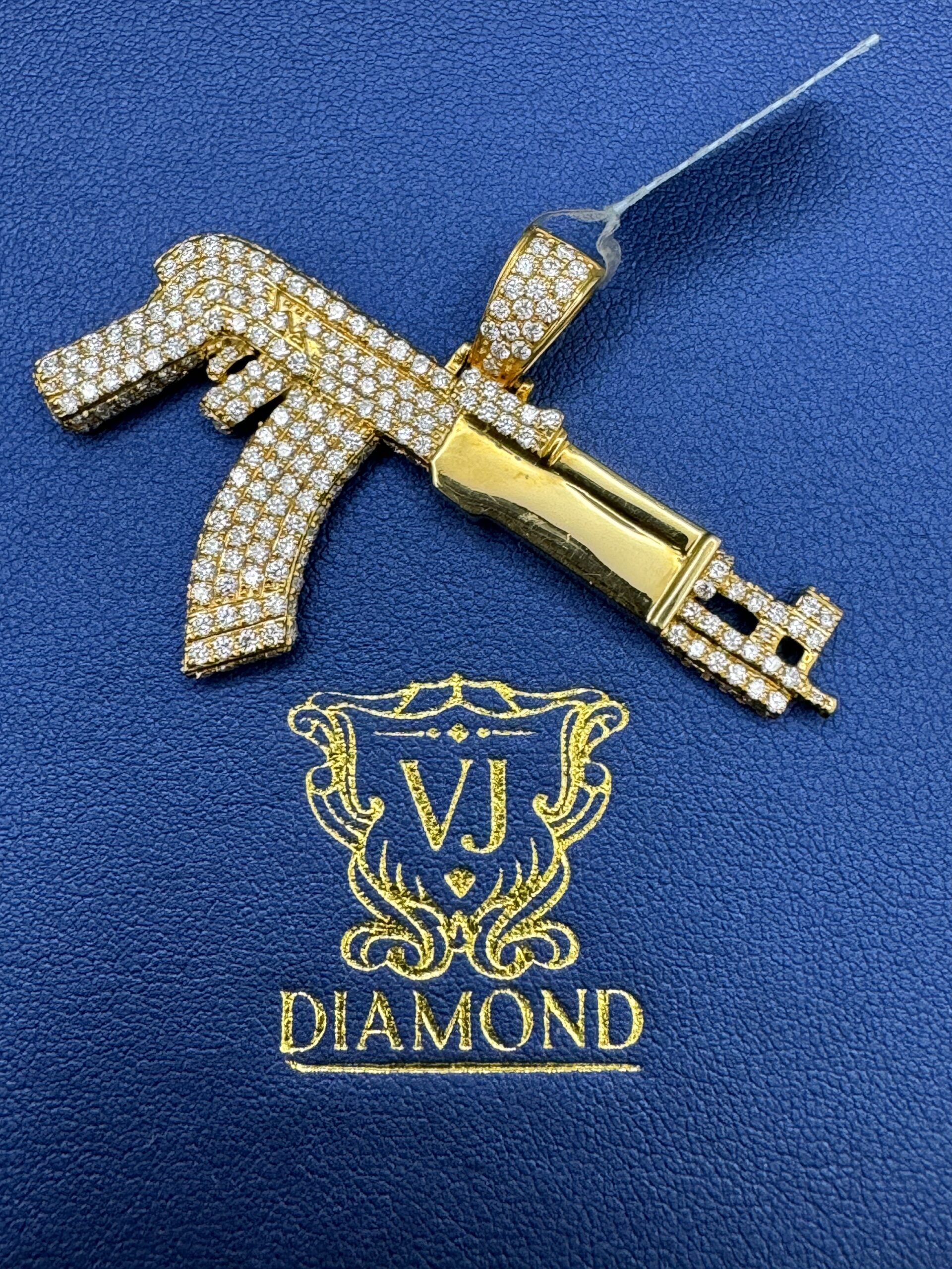 14KT Gold 3.20CT Diamond AK-47 Pendant Custom Made Approx Gold Weight 19.4 Gram 2.25″ Wide By 1.5″ Tall VS Quality Diamonds