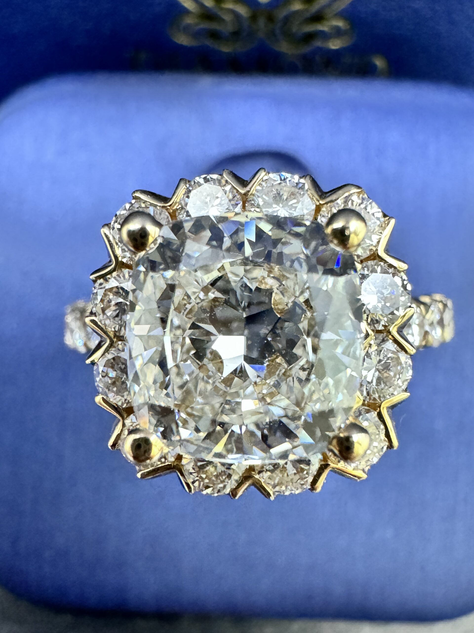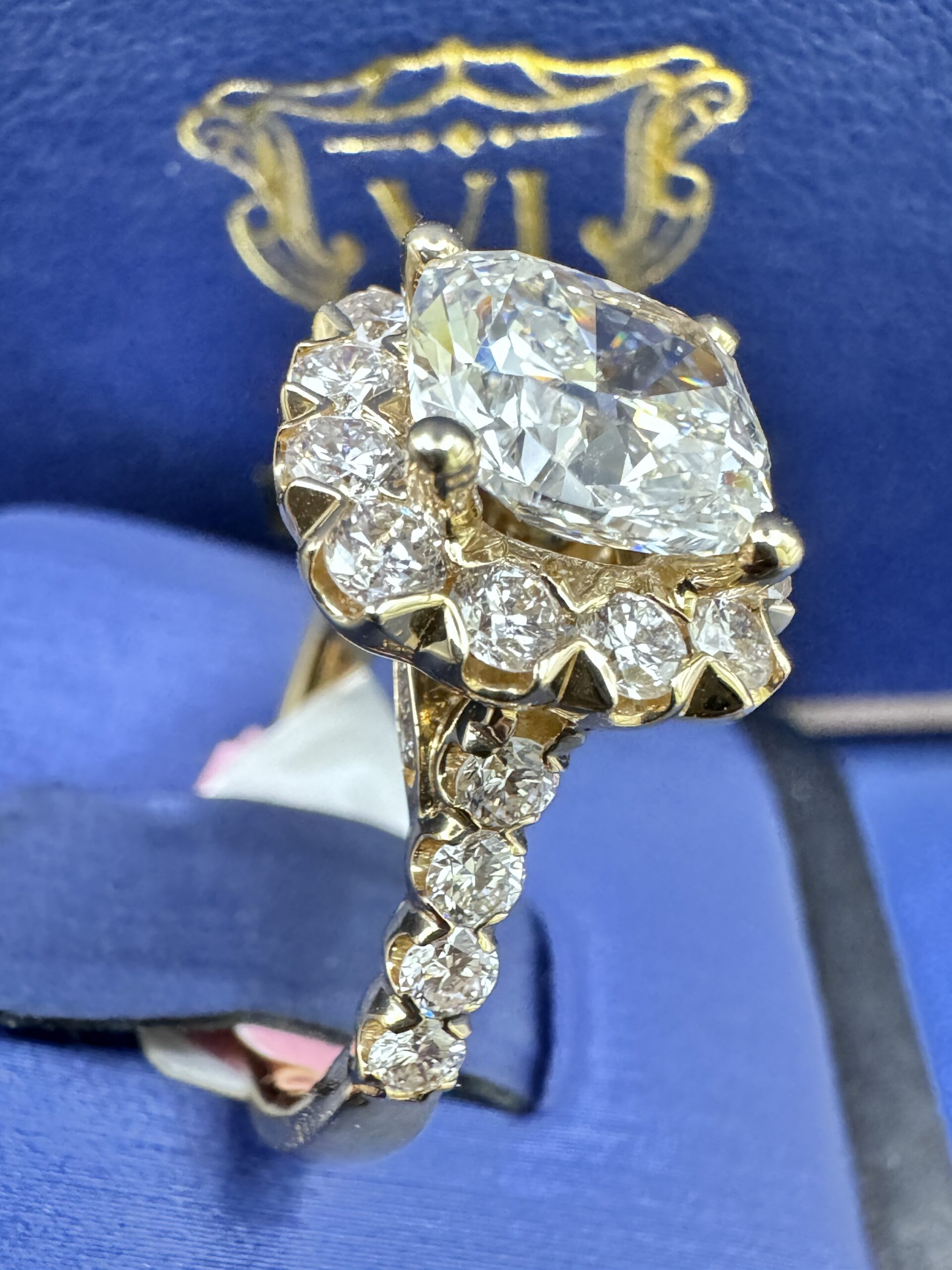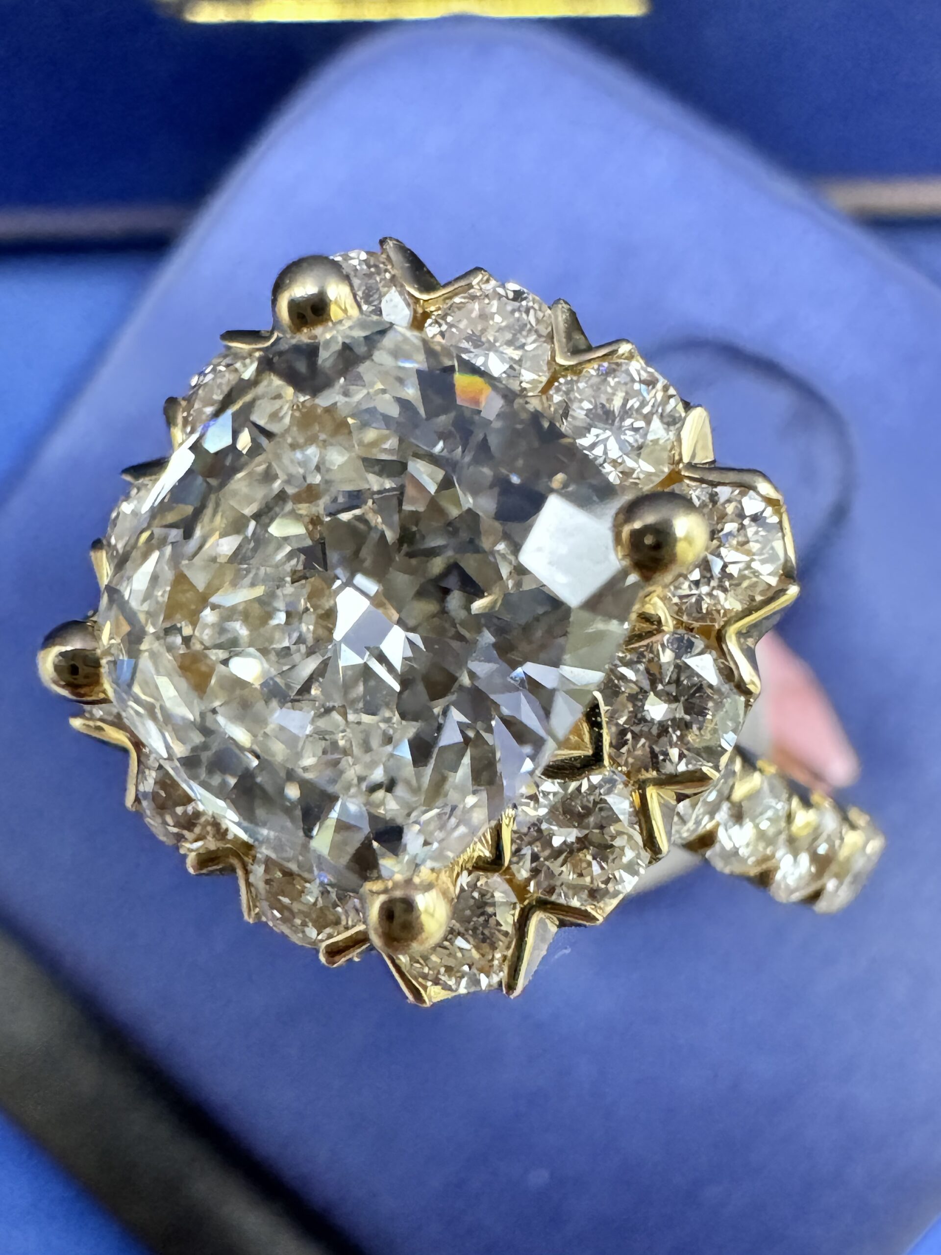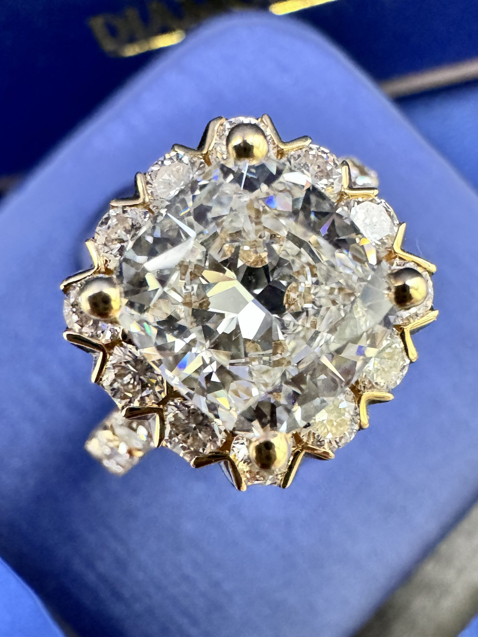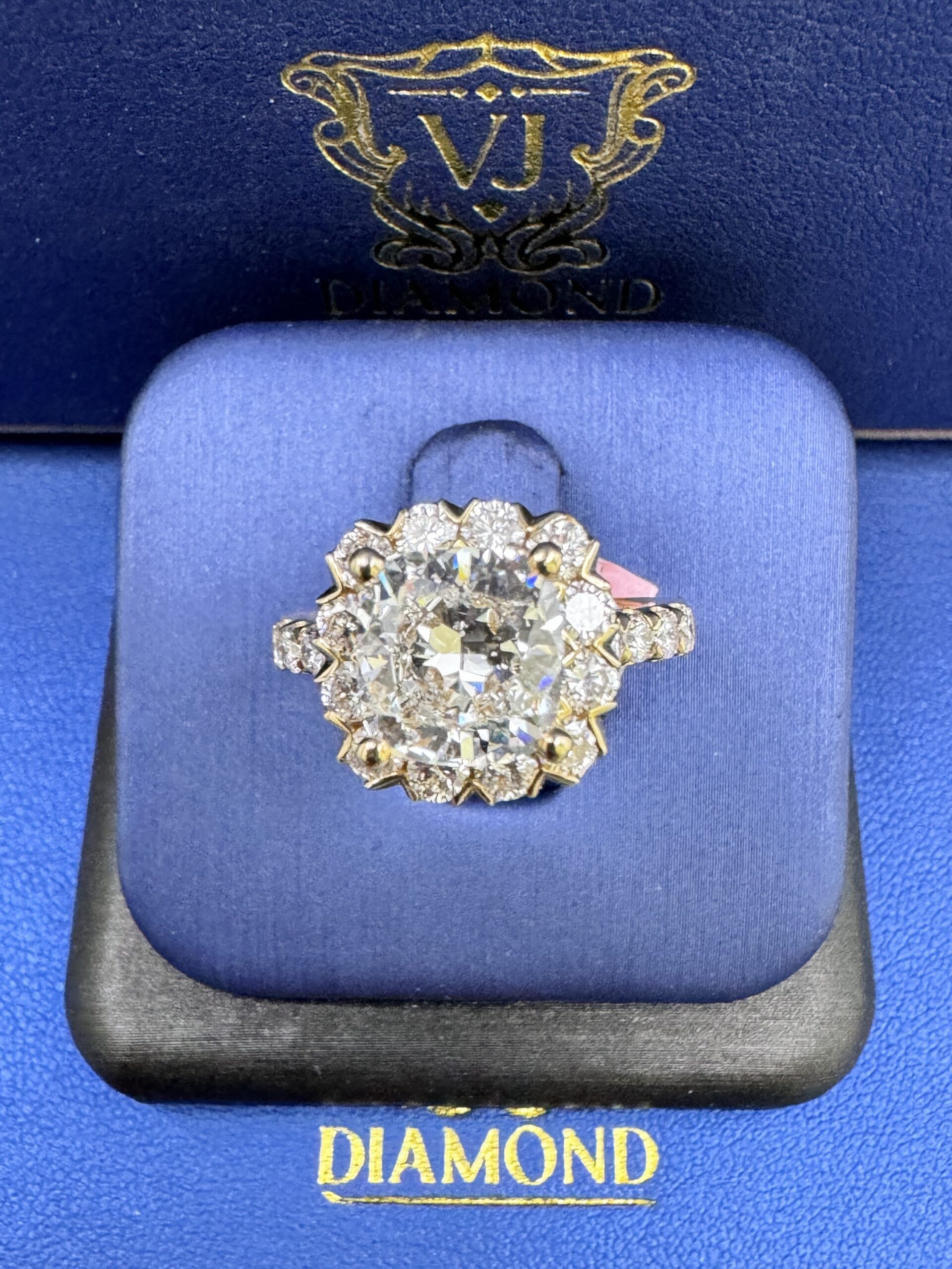 14KT Gold 3.45CT LabGrown CushionCut Diamond Ring 3.07 CT Center Solitaire VVS F Color Size 7 Approx Gold Weight 7.7 Gram