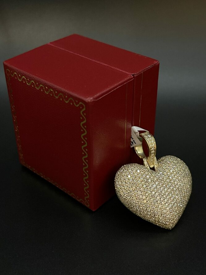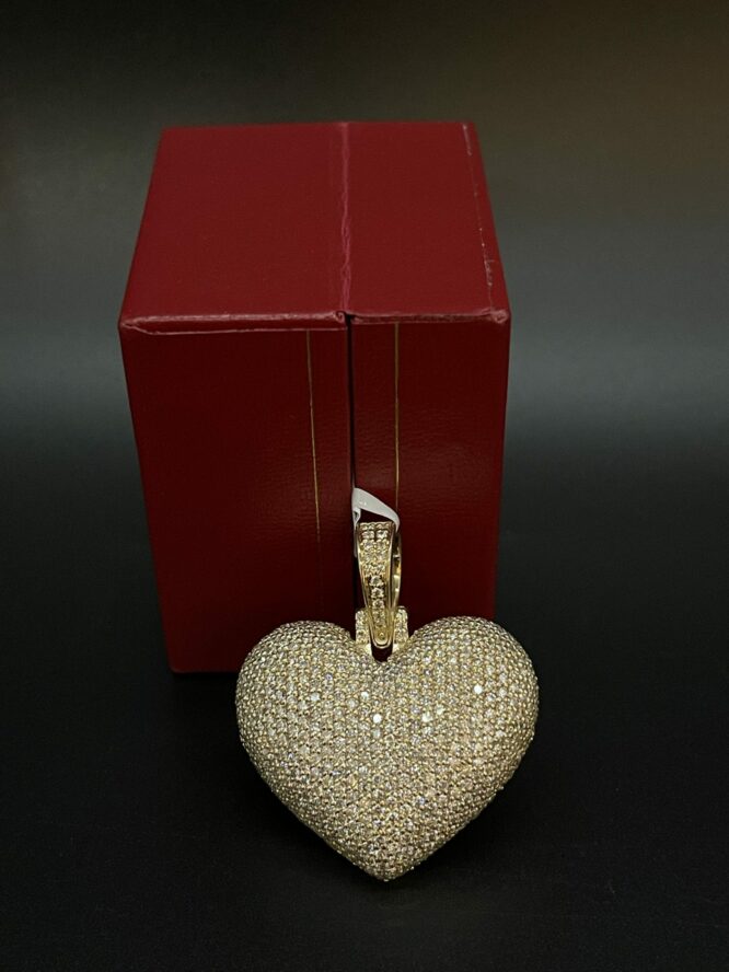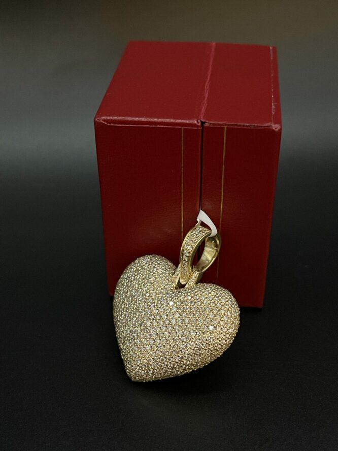 14KT Gold 3.85CT Diamond Jumbo Heart With All Honeycomb Set Diamonds Solid Back