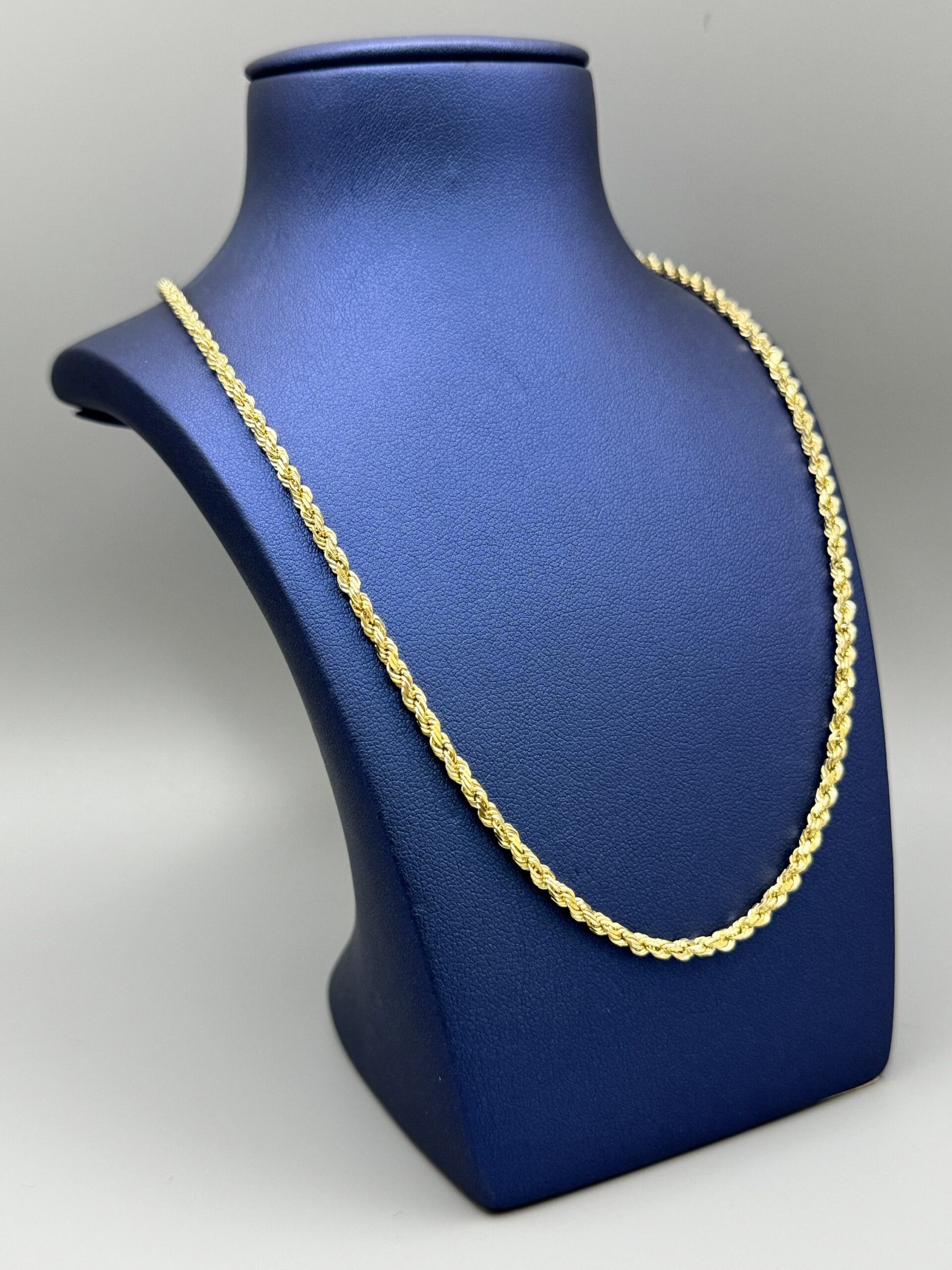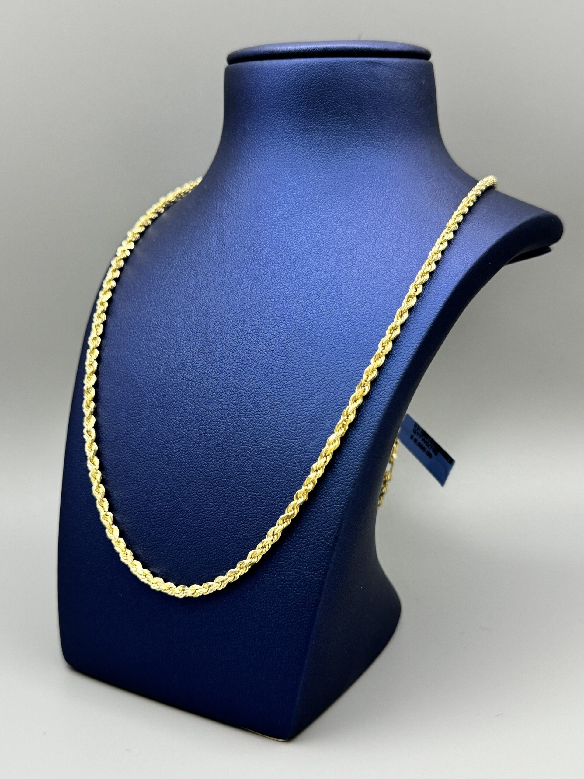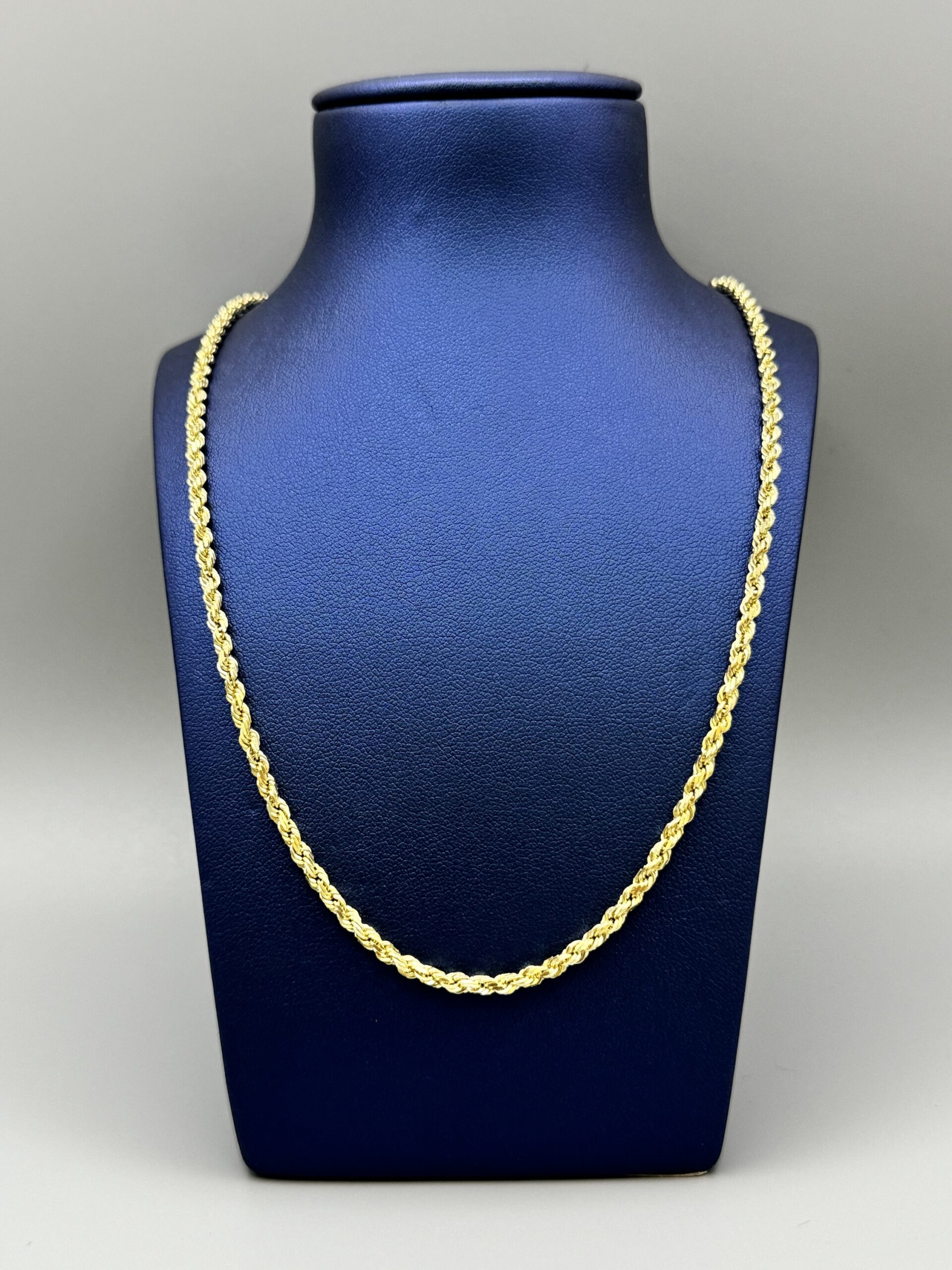 14KT Gold 3MM DiaCut Solid Rope Necklace 22”
