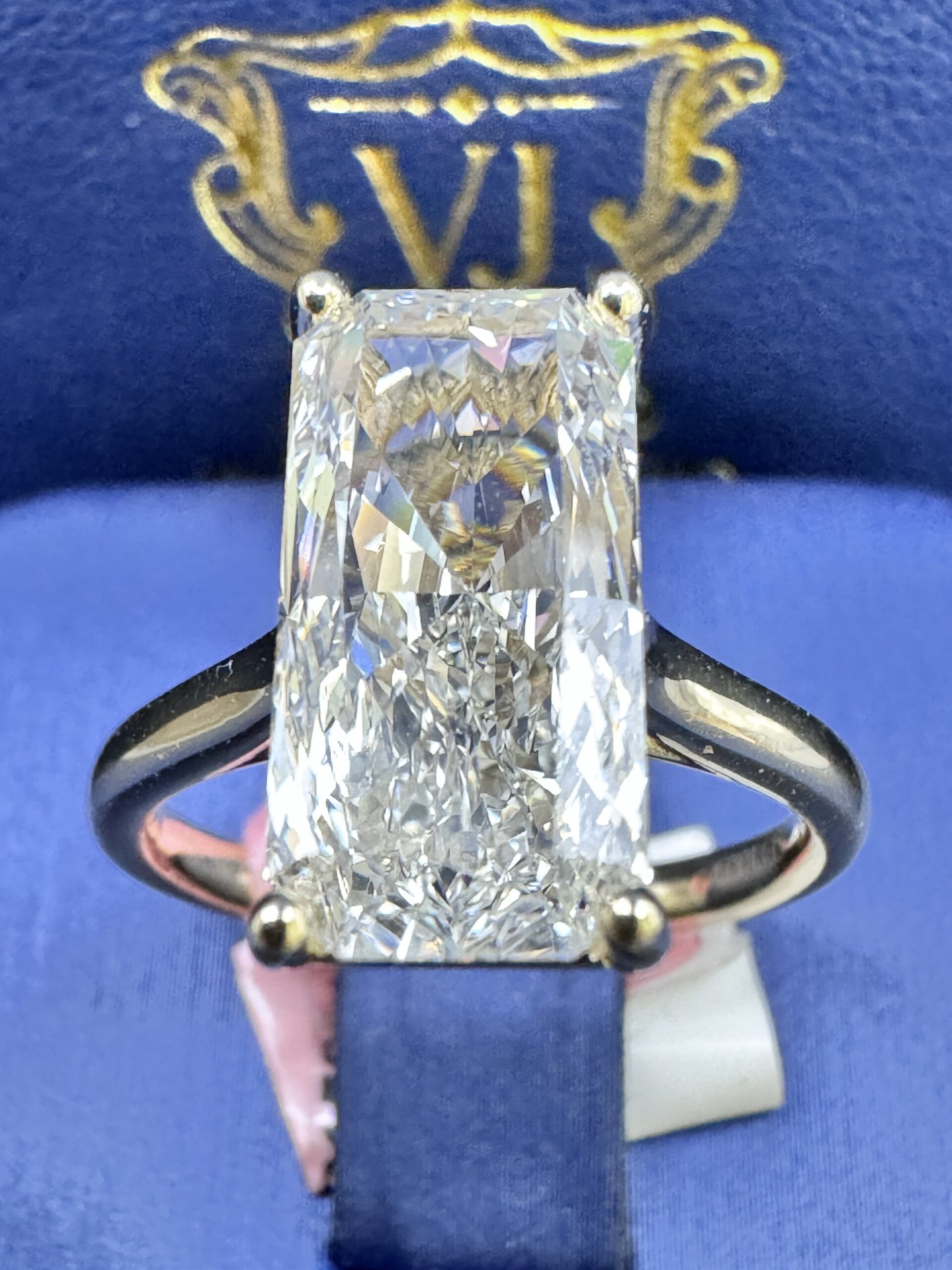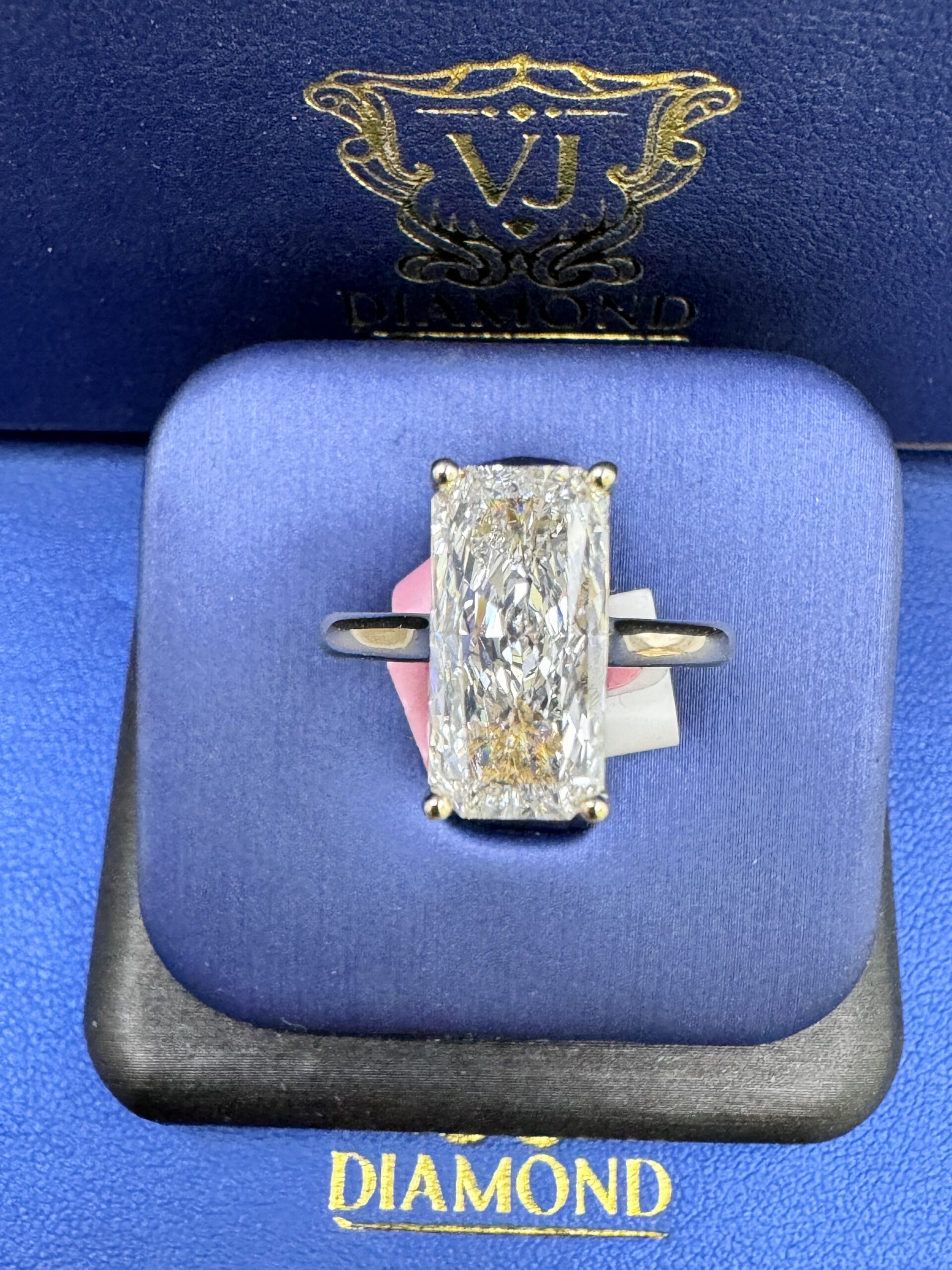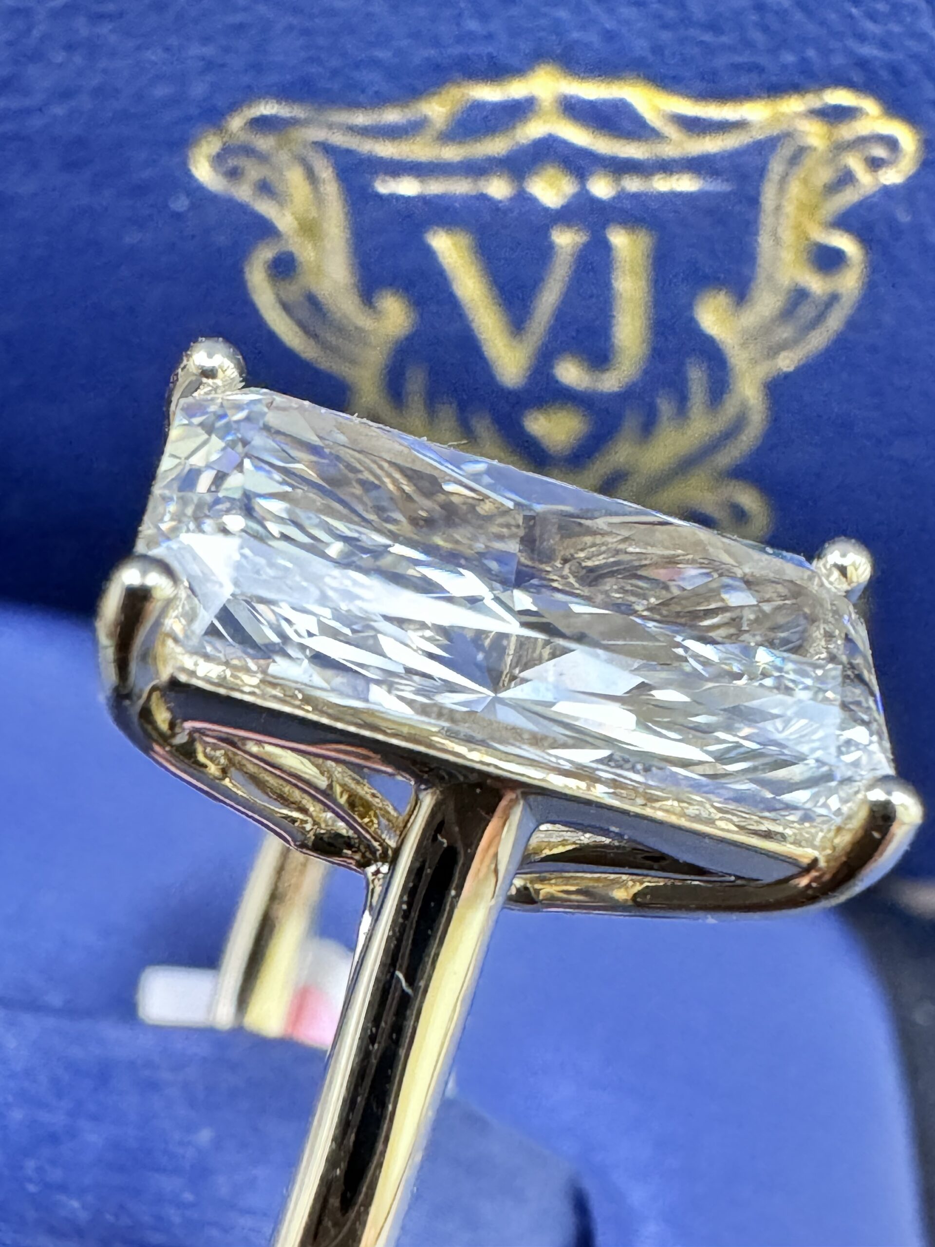14KT Gold 4.01CT LabGrown Elongated EmeraldCut Diamond Ring Solitaire VVS F Color Size 7 Approx Gold Weight 5.3 Gram