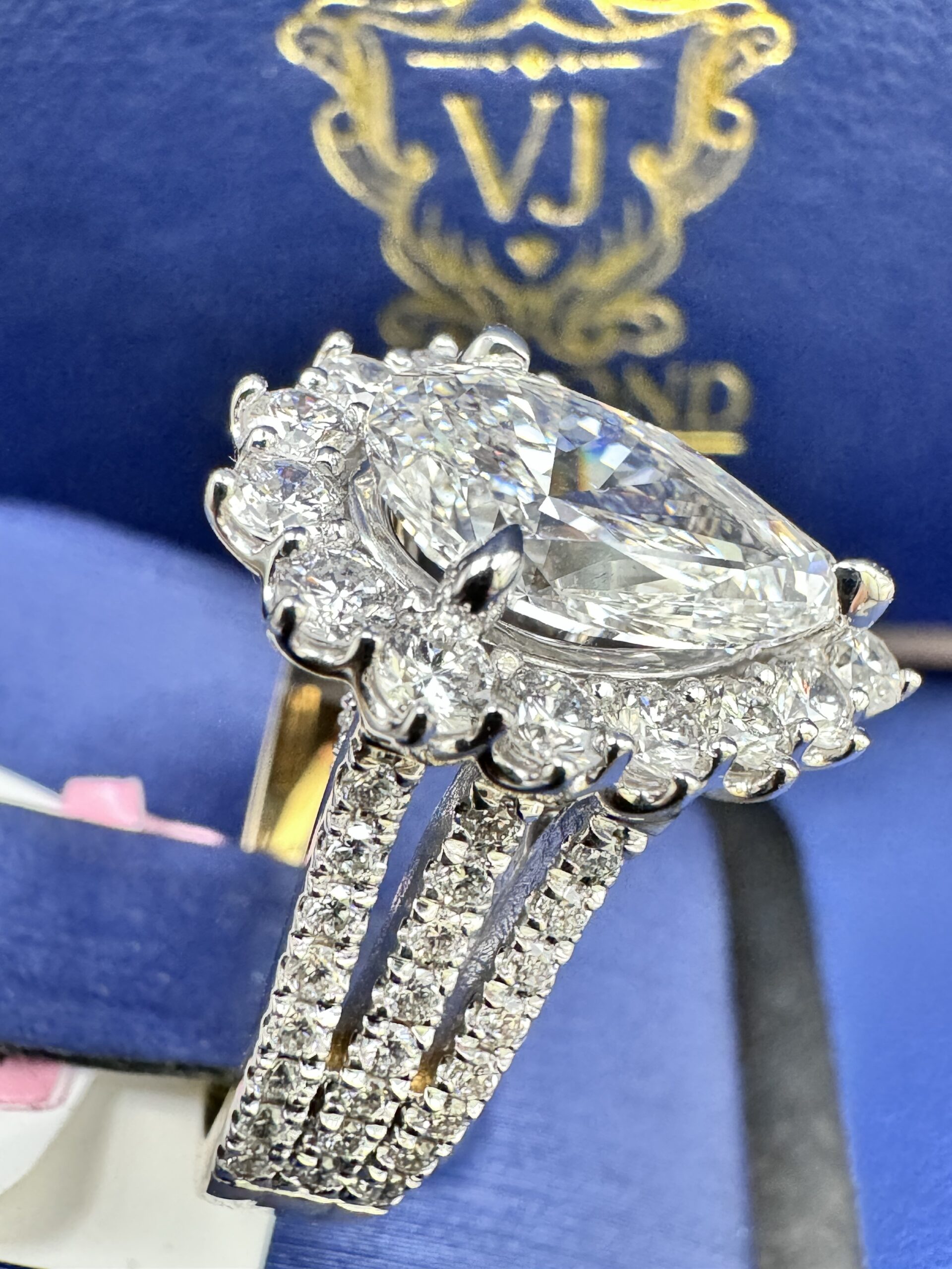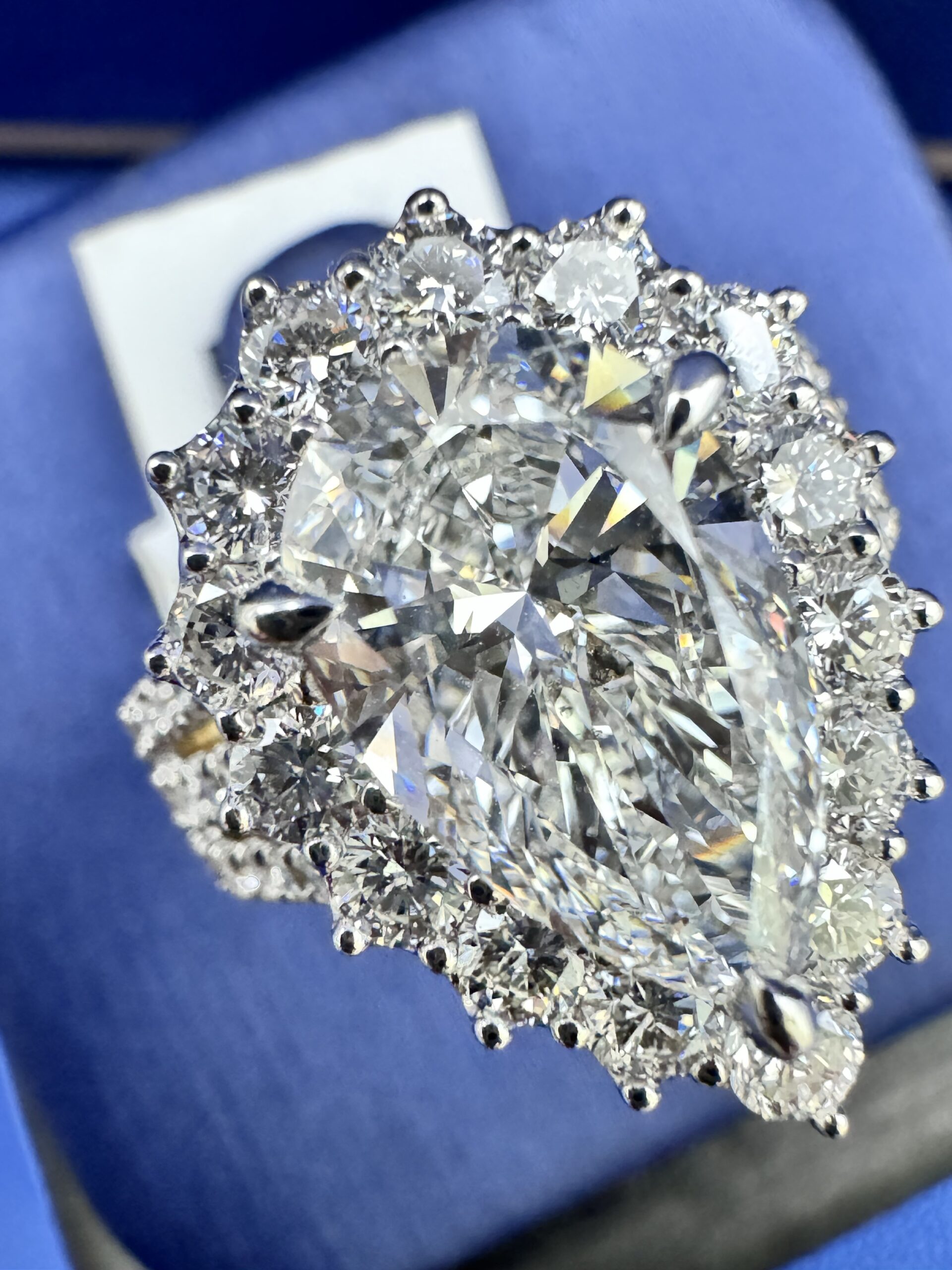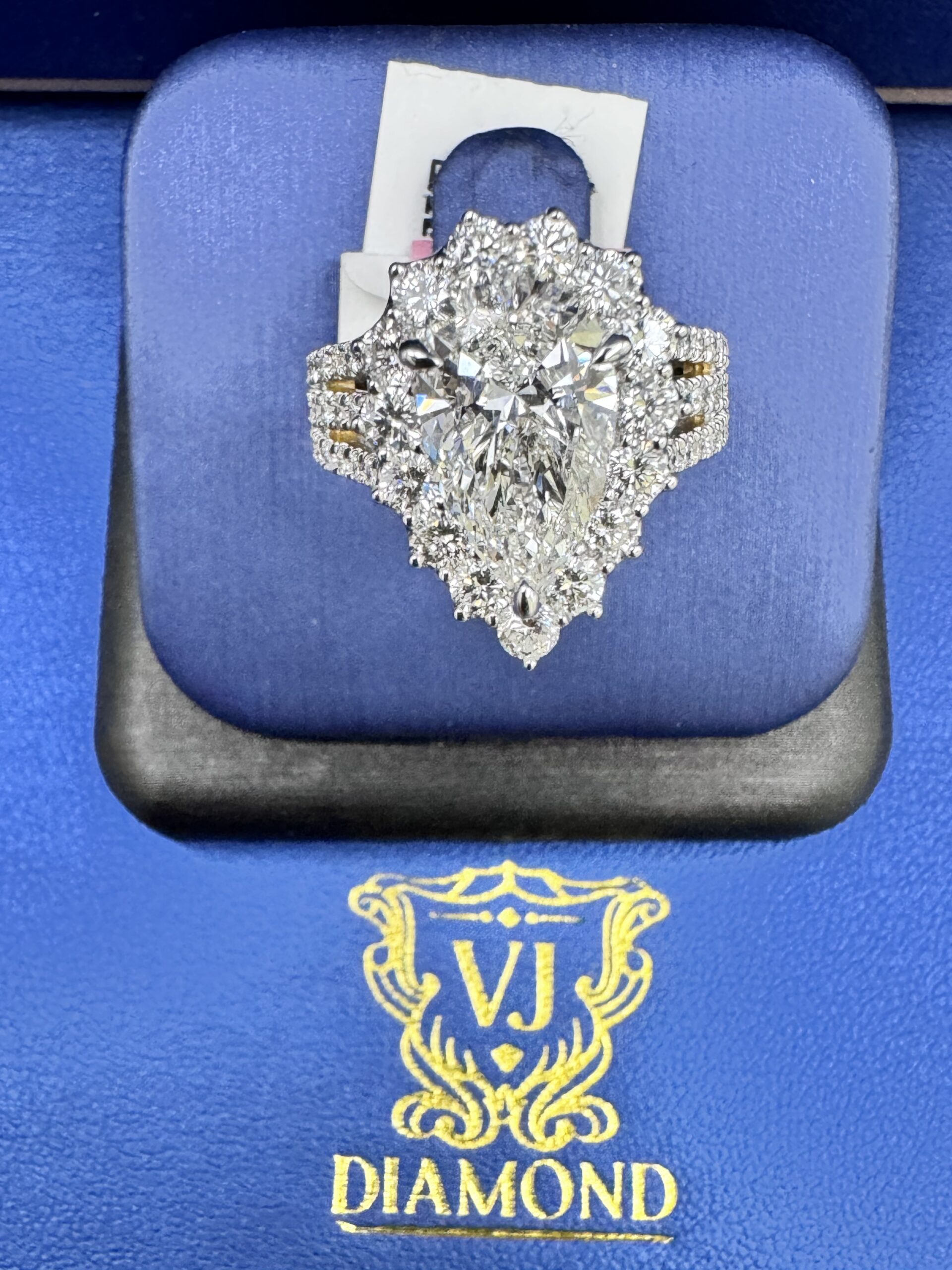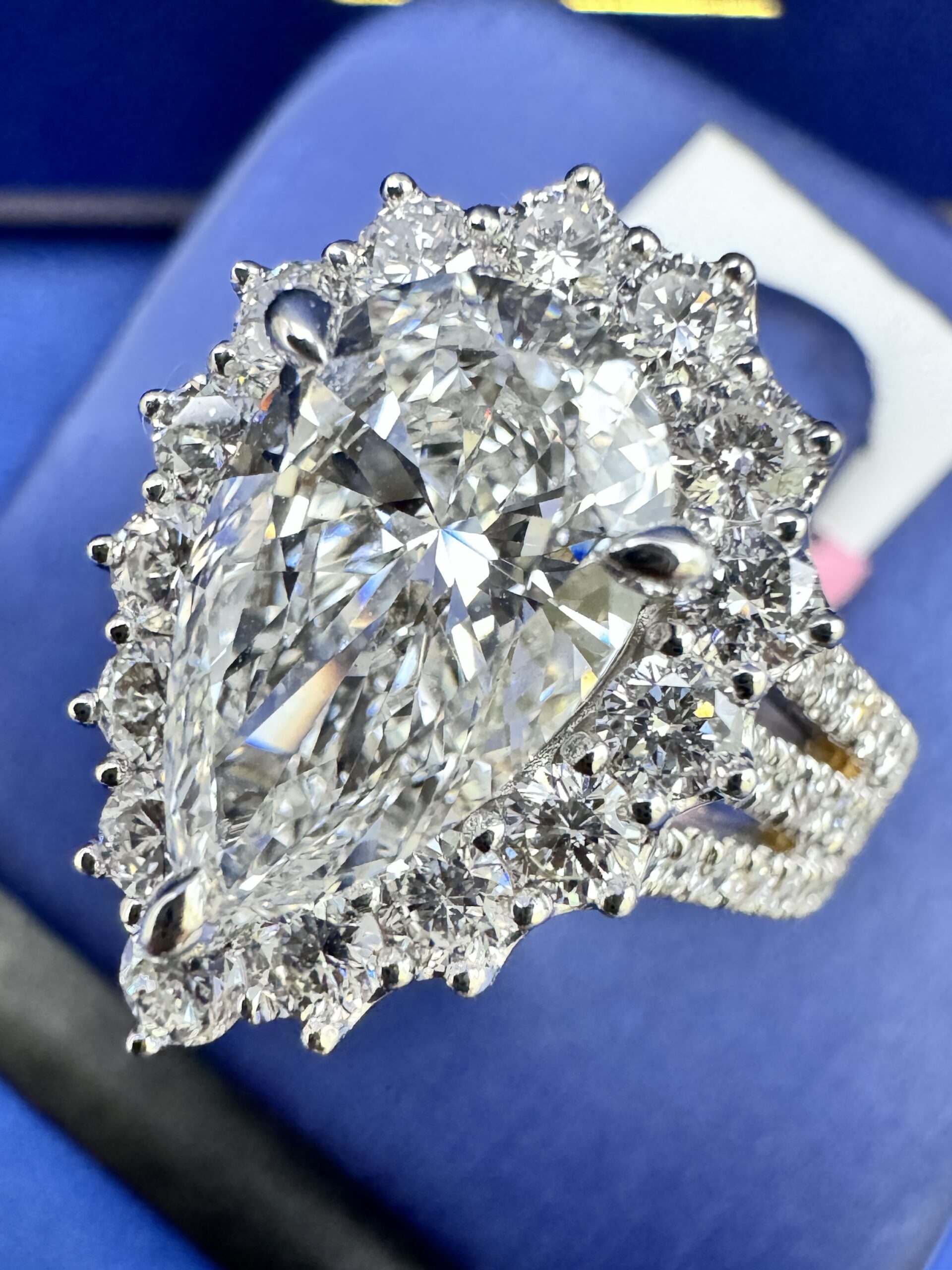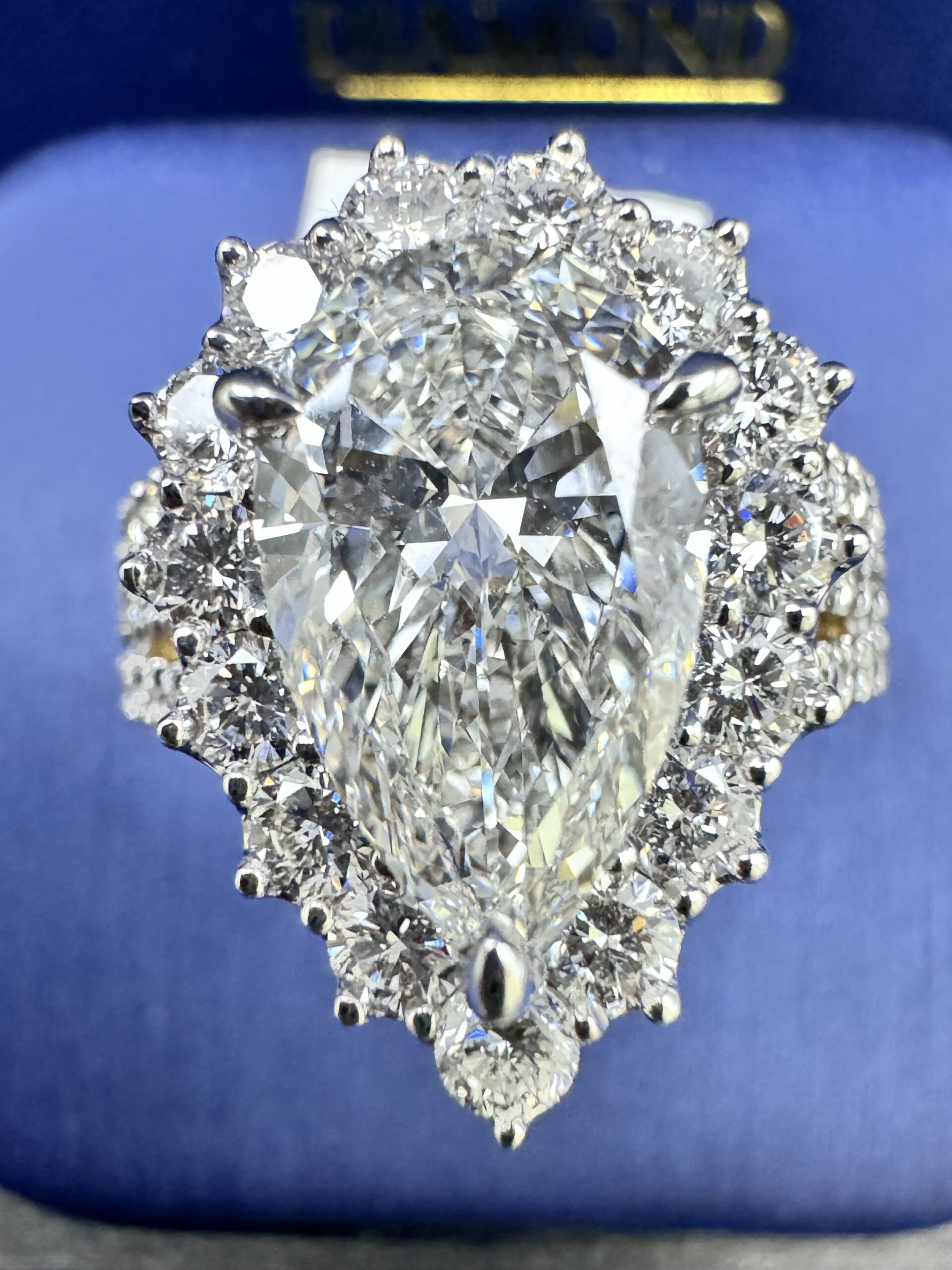 14KT Gold 4.50CT LabGrown PearCut Diamond Ring 3.00 CT Center Solitaire VVS F Color Size 7 Approx Gold Weight 7.9 Gram
