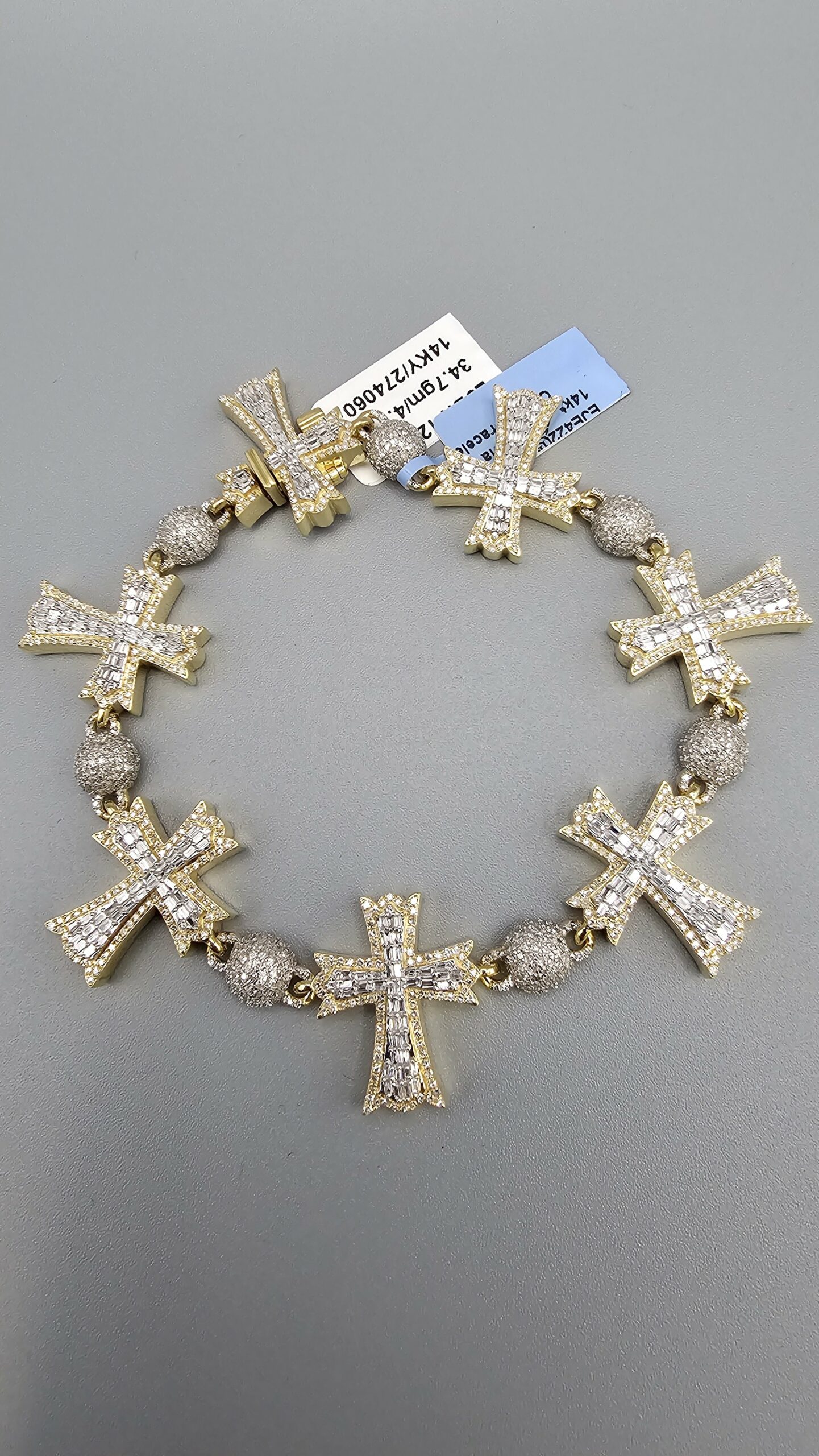 14KT Gold 4.51CT Diamomd Cross Bead Bracelet Solid Gold Natural VS Quality Diamonds Size 8″ 0.75″ Tall Cross By 7MM Beads