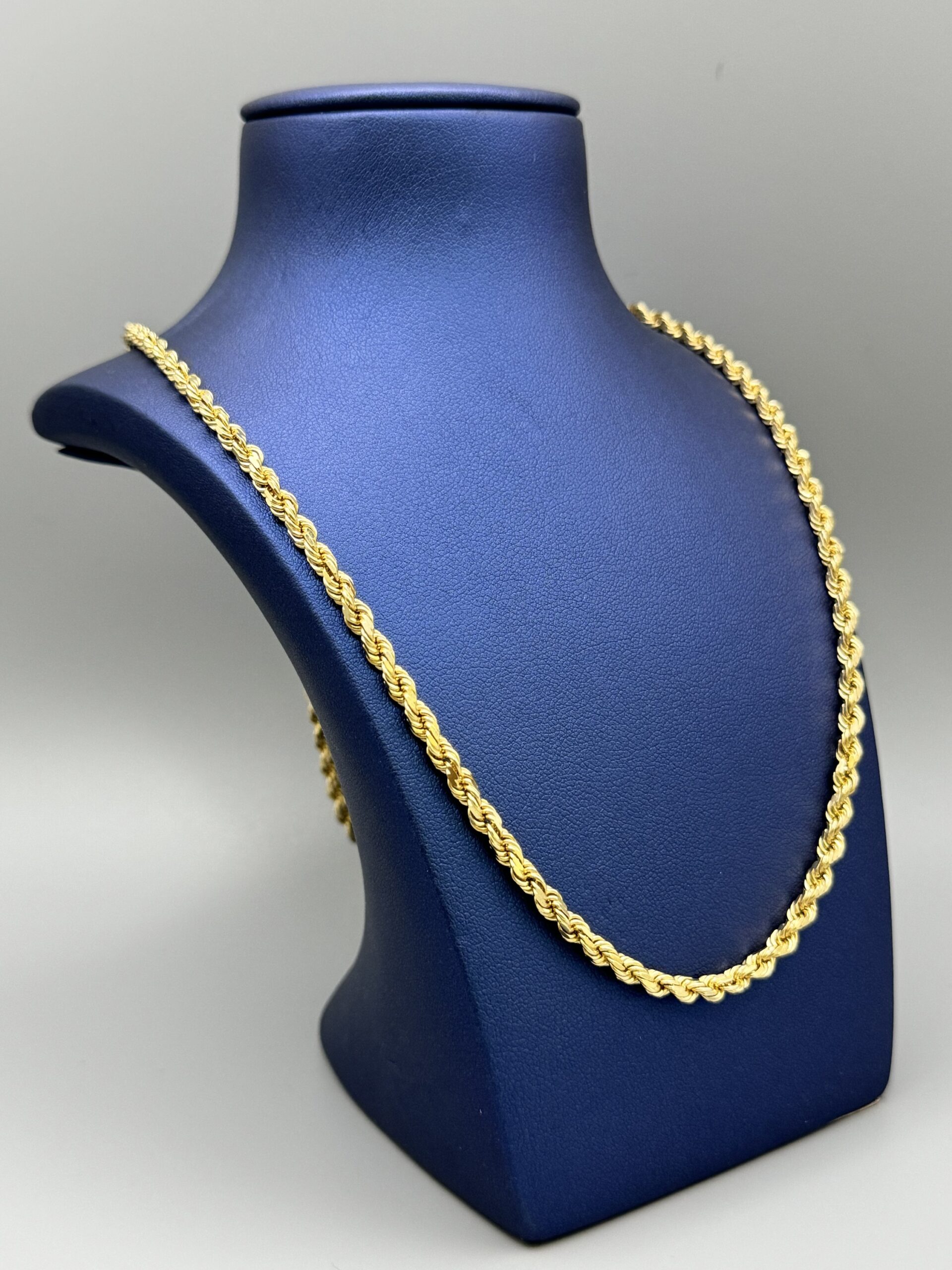 14KT Gold 4MM DiaCut Solid Rope Necklace 18” Approx Gold Weight 23.3 Gram
