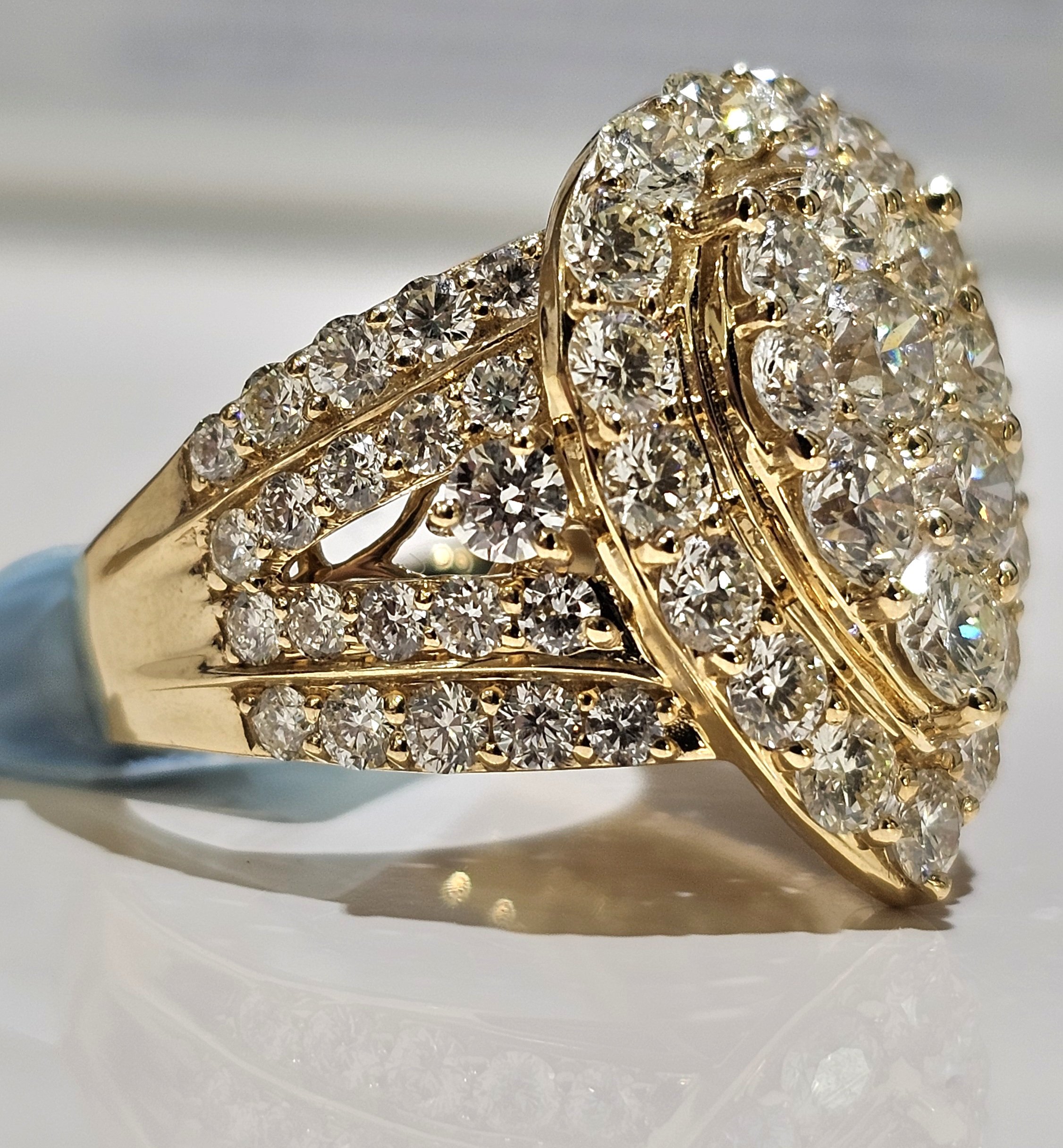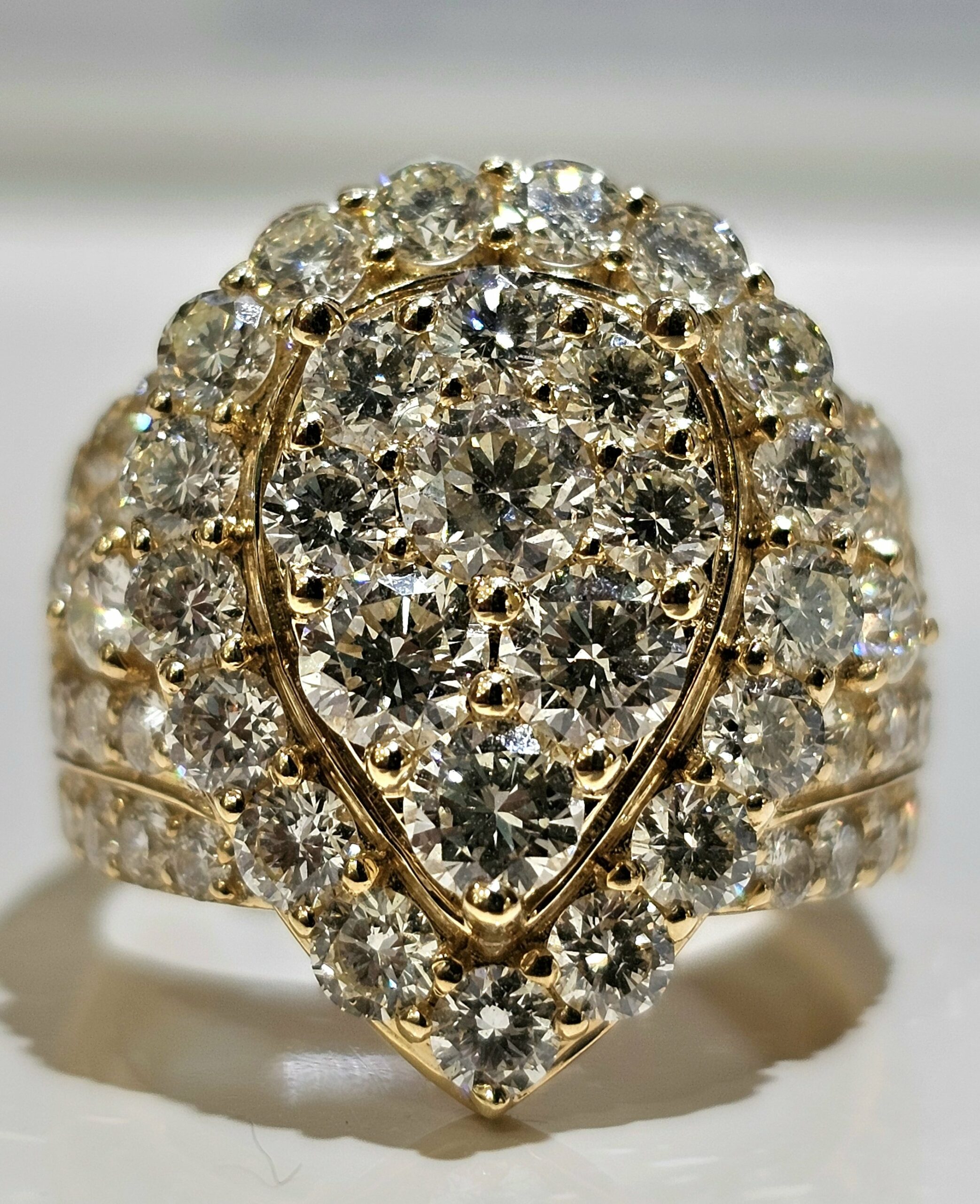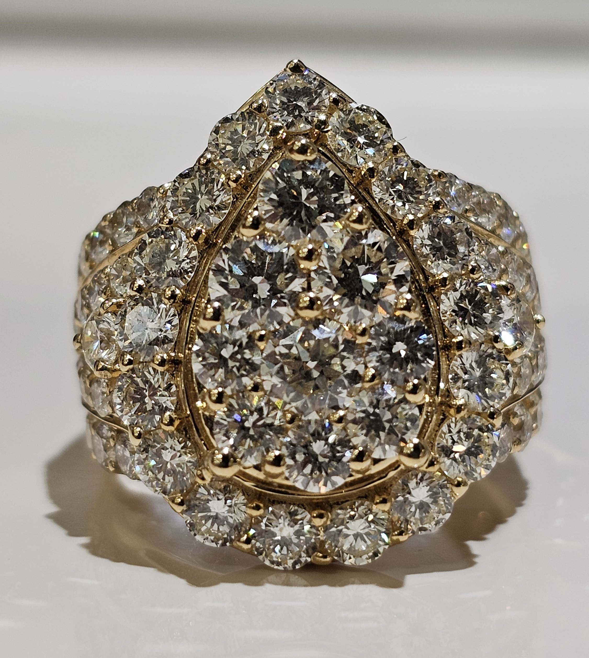 14KT Gold 5.00CT Dia Ladies Ring Pear Shape Halo Style All VS Clairty F Color Size 7 Approx Gold Weight 8.3 Gram 16Mam Top Head Width