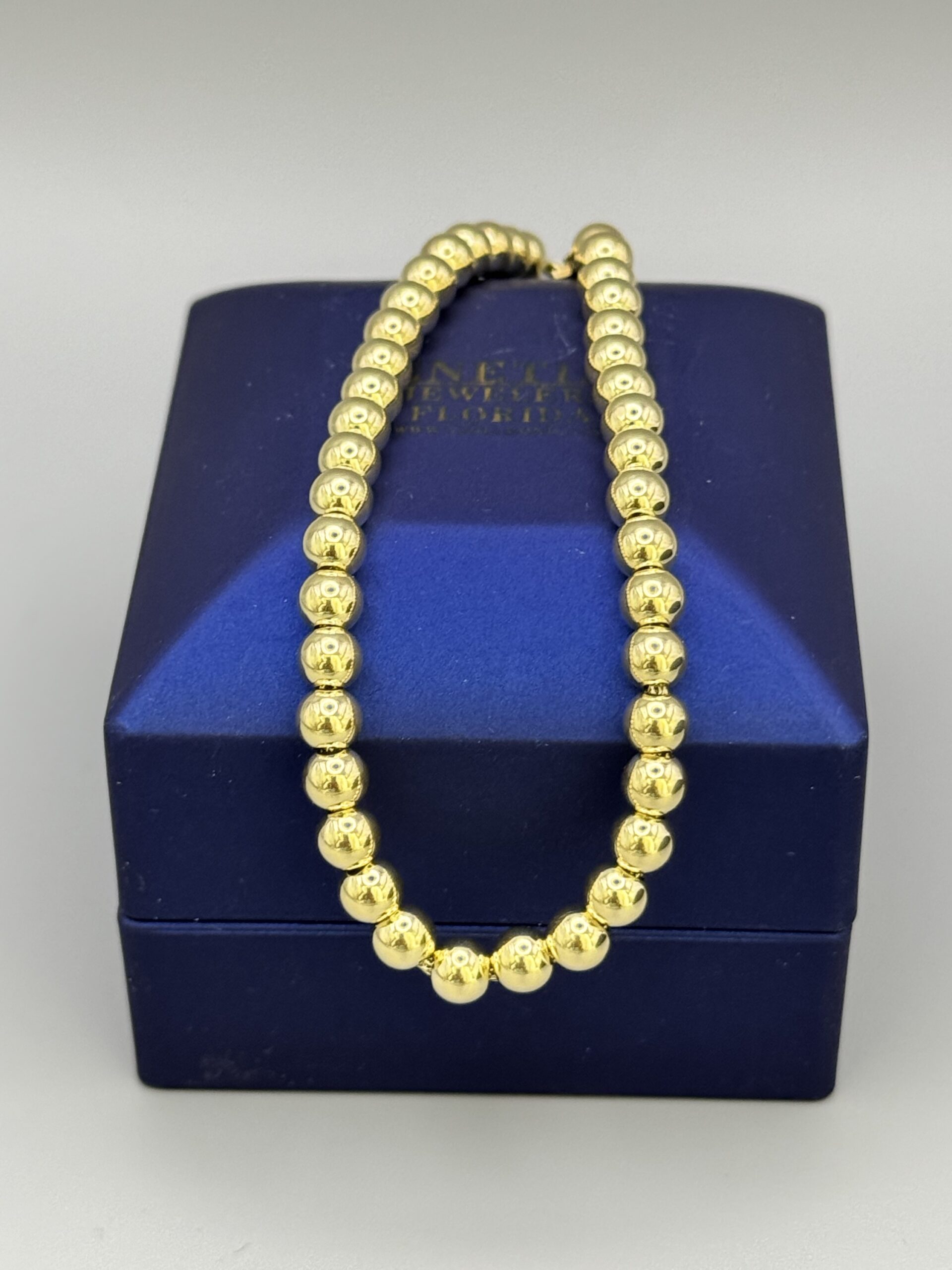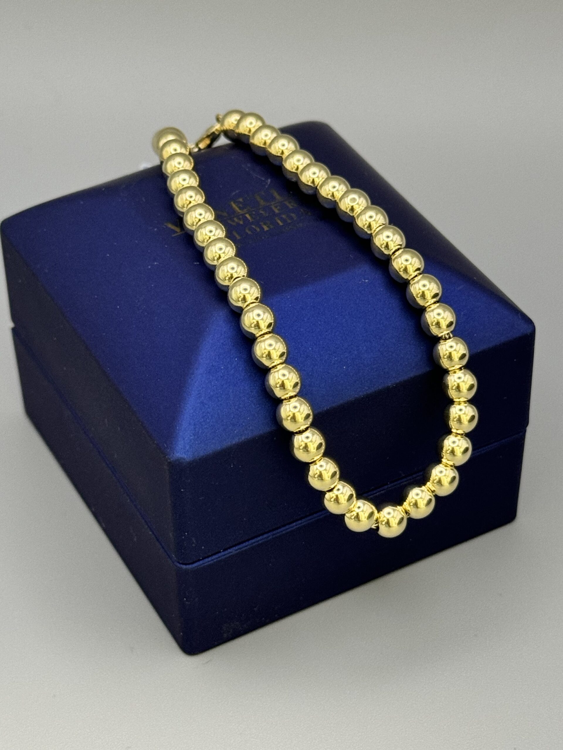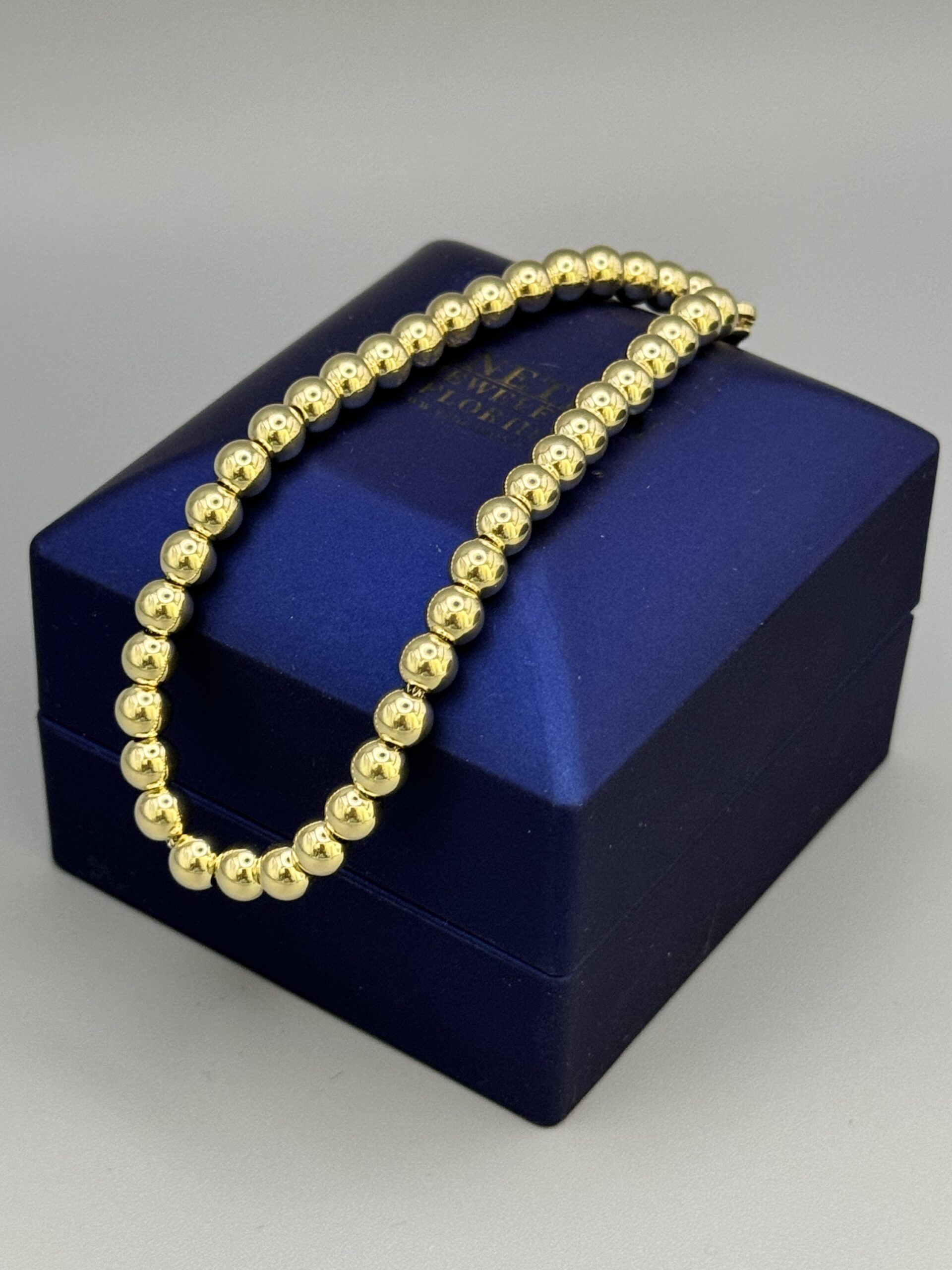 14KT Gold 5.5MM Fancy Bead Bracelet 8” Approx Gold Weight 4.9 Grams