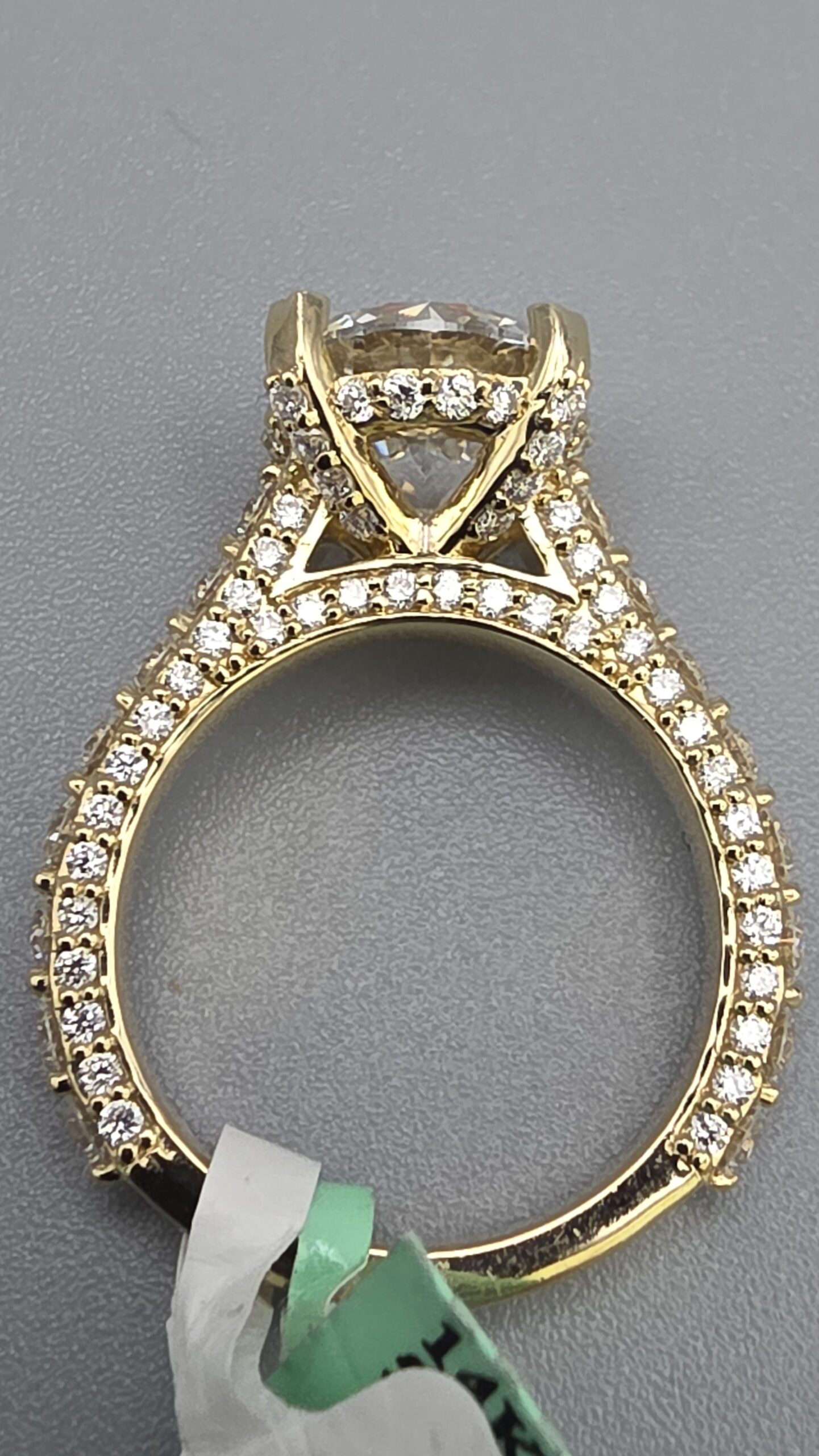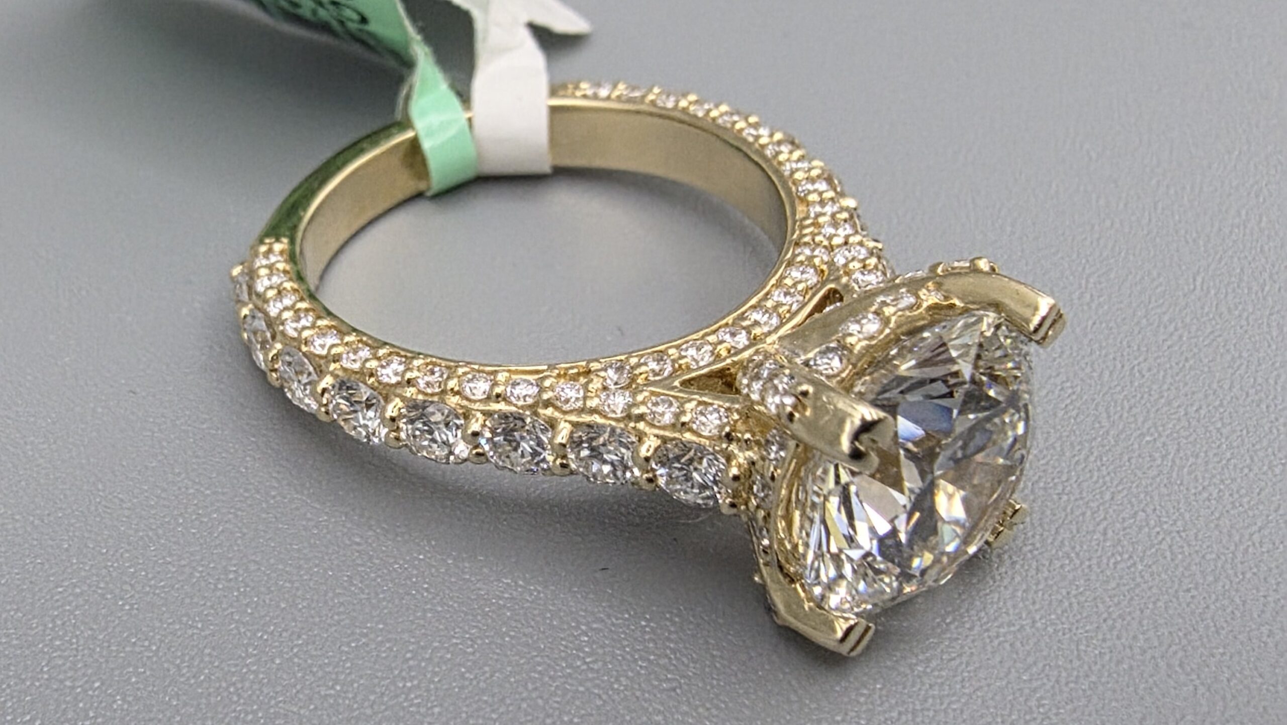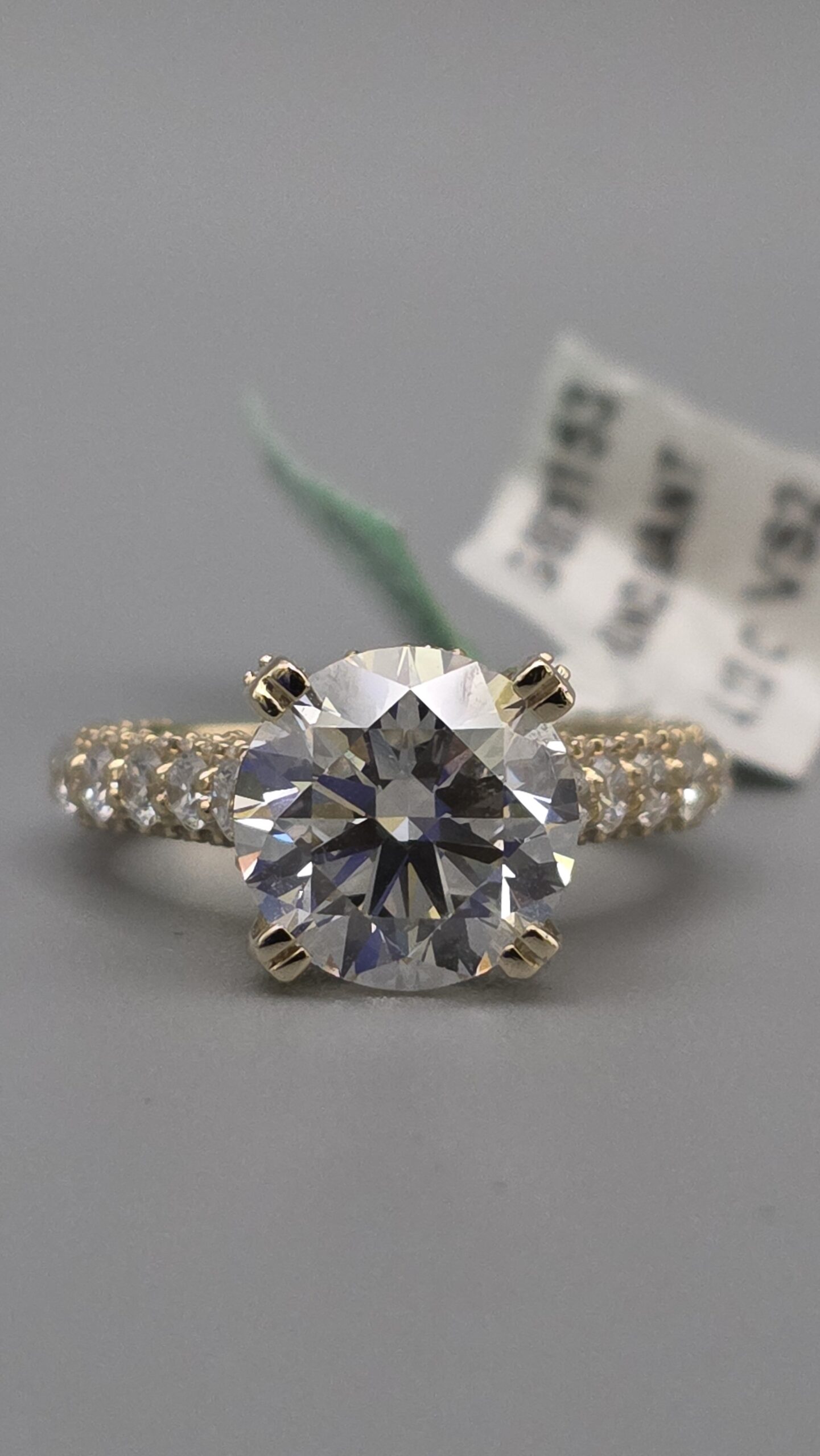 Say “I do” with elegance! This stunning 14KT Gold engagement ring features a 4.00CT center solitaire and 5.82CT total weight. Certified VS E-F color, it weighs approximately 7.5 grams. True love sparkles!