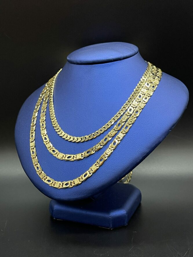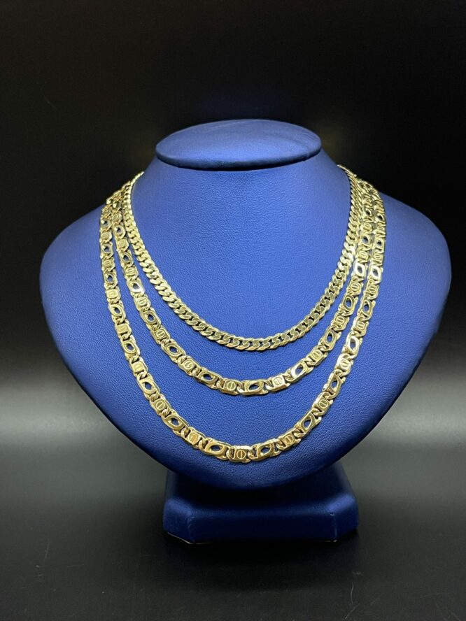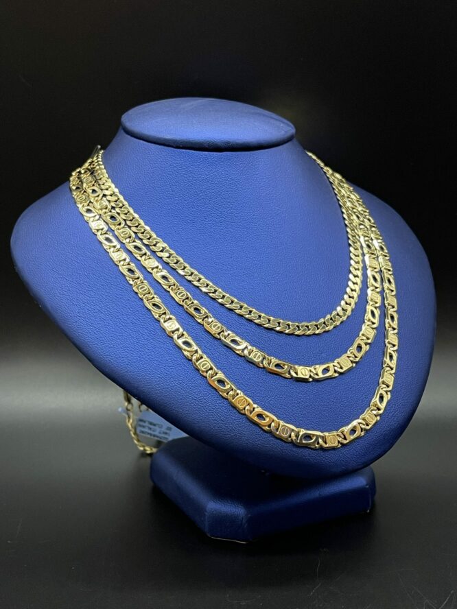 14KT Gold 5MM Italian Link 22″ Necklace Come In 2 Different Designs CurbLink And Tiger Eye