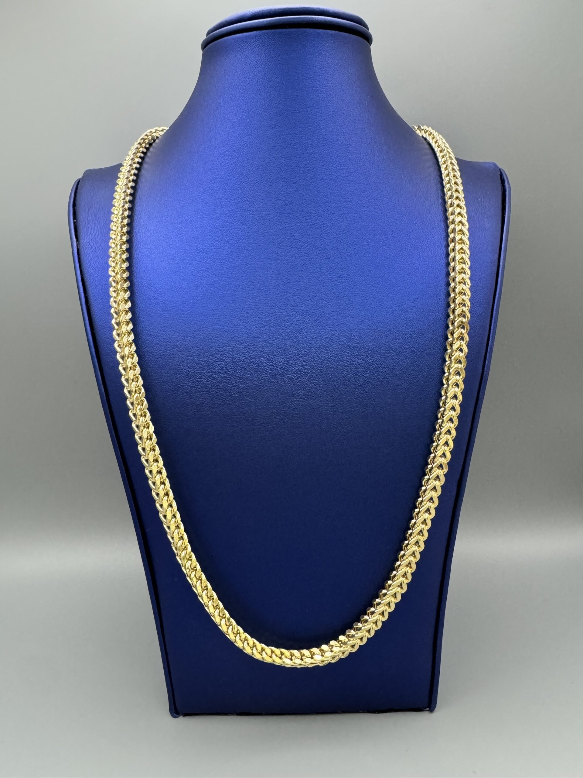 Elevate your style with this 14KT Gold Franco Necklace, measuring 6MM and 24 inches long, weighing approximately 39.1 grams. A timeless piece that sparkles with every turn!
