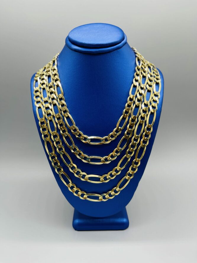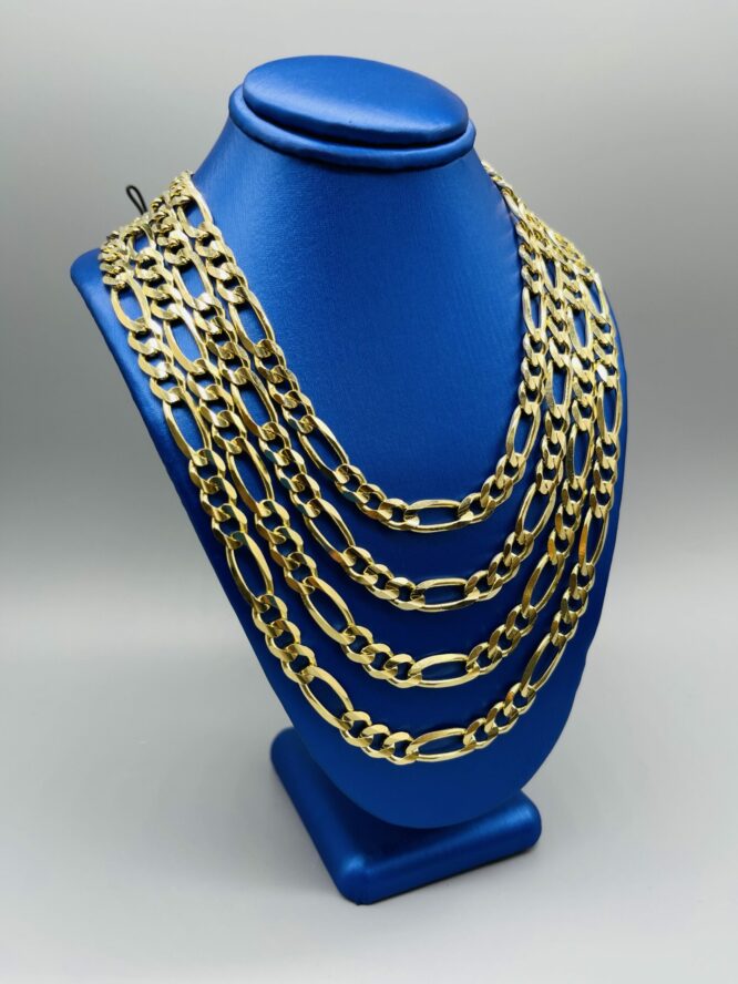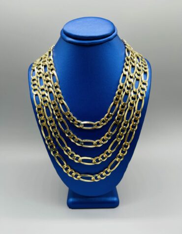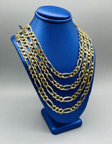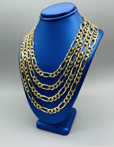 Discover the elegance of our 14KT Gold Figaro Necklace, featuring a stunning 7MM width. Choose from 22″ or 24″ lengths to perfectly complement any outfit. An ideal piece for any occasion!