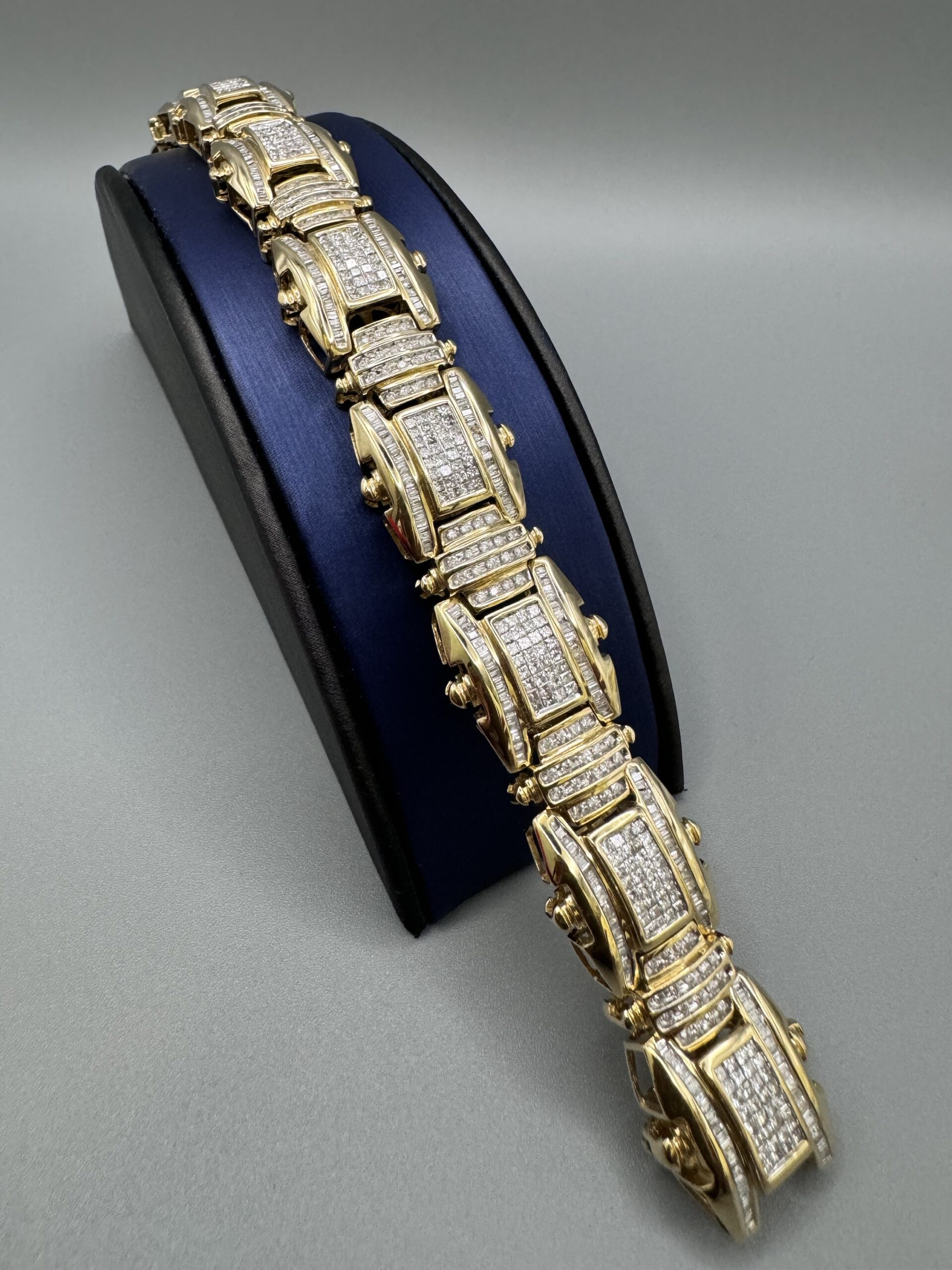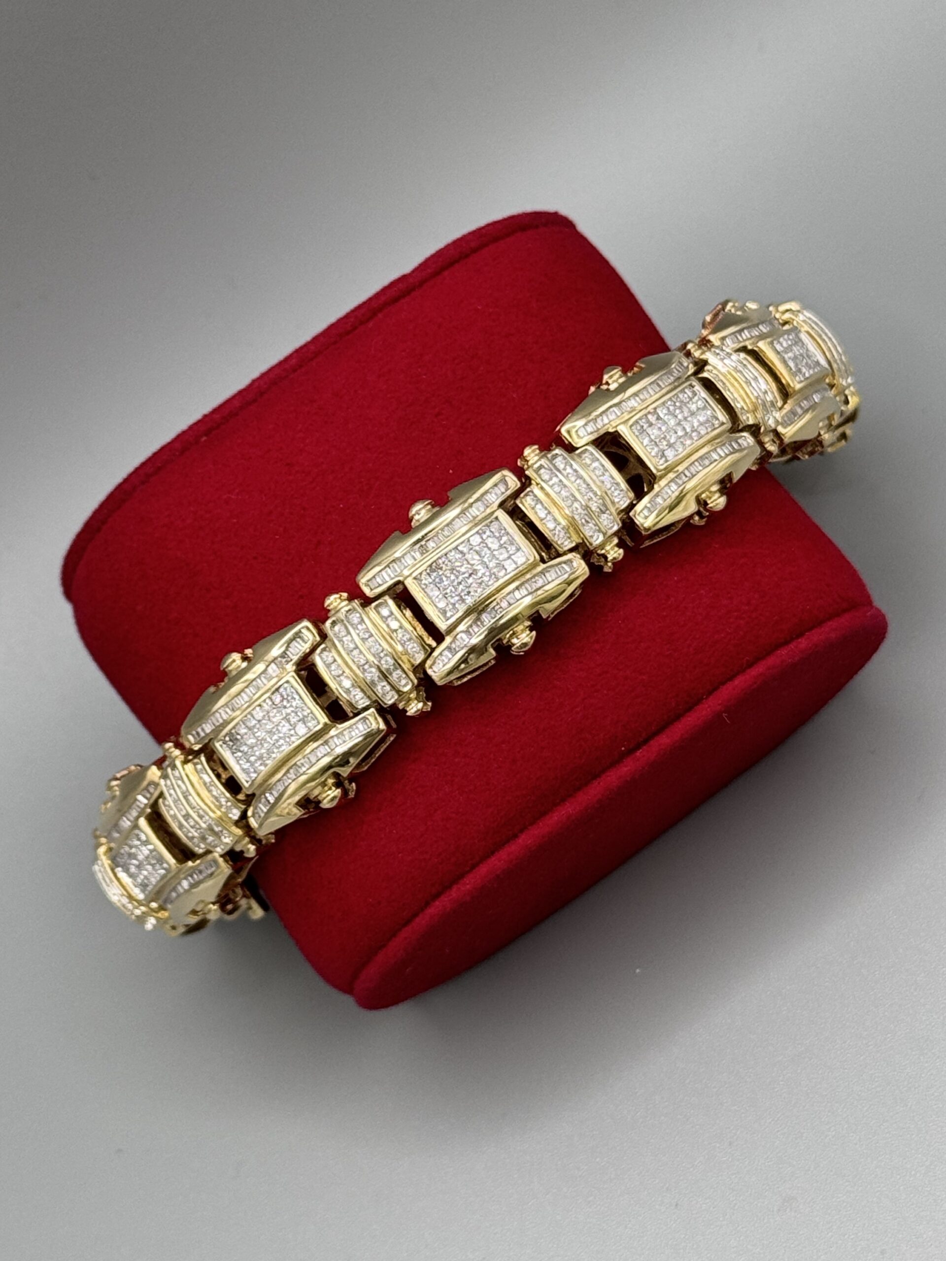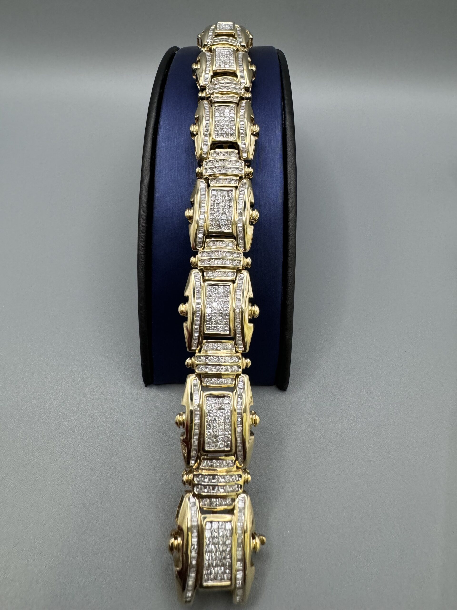 14KT Gold 8.10CT InvisibleSet Men’s Bracelet 20MM With Baguette And Round Diamond Approx Gold Weight 70.4 Gram Size 10″