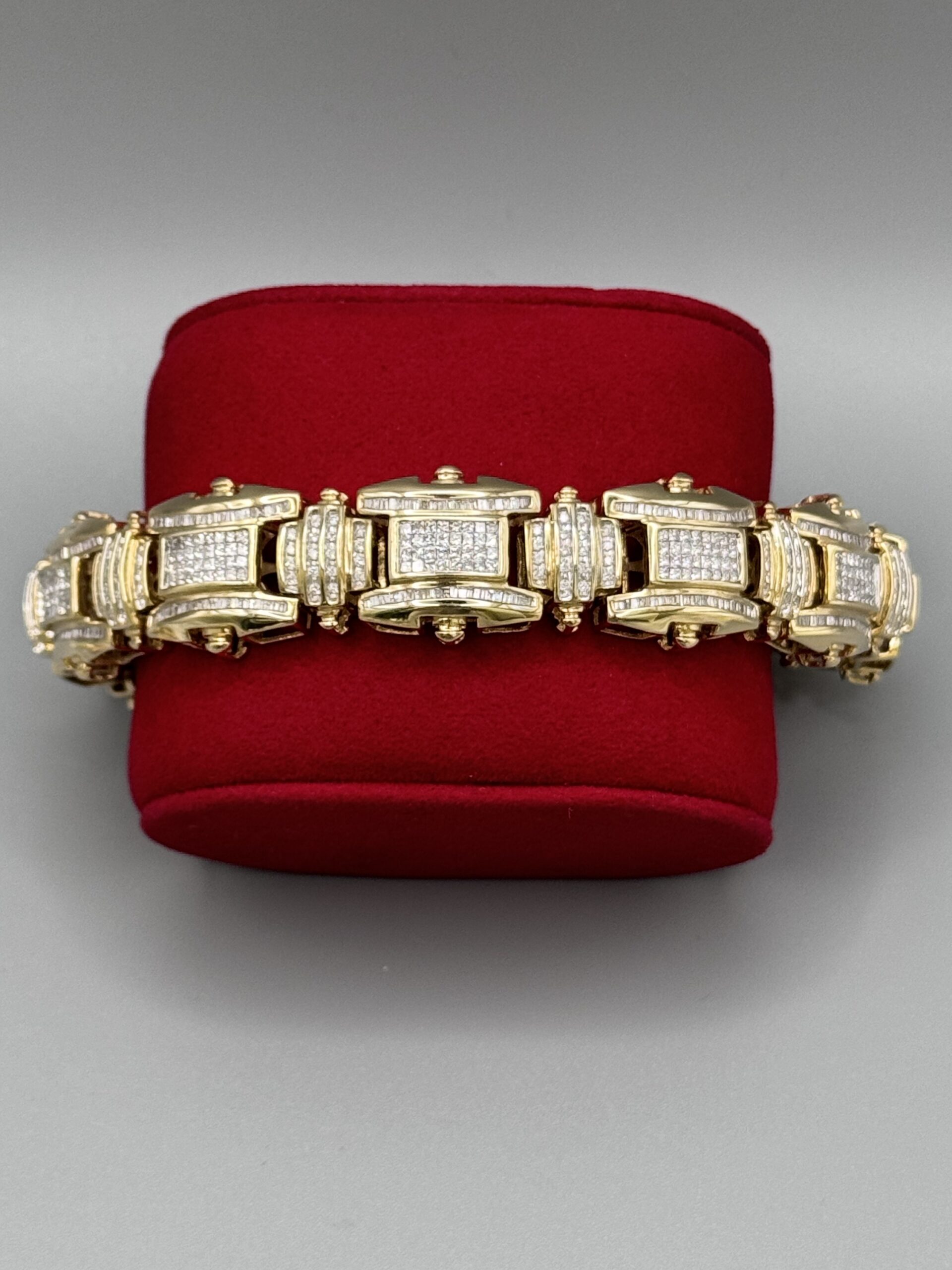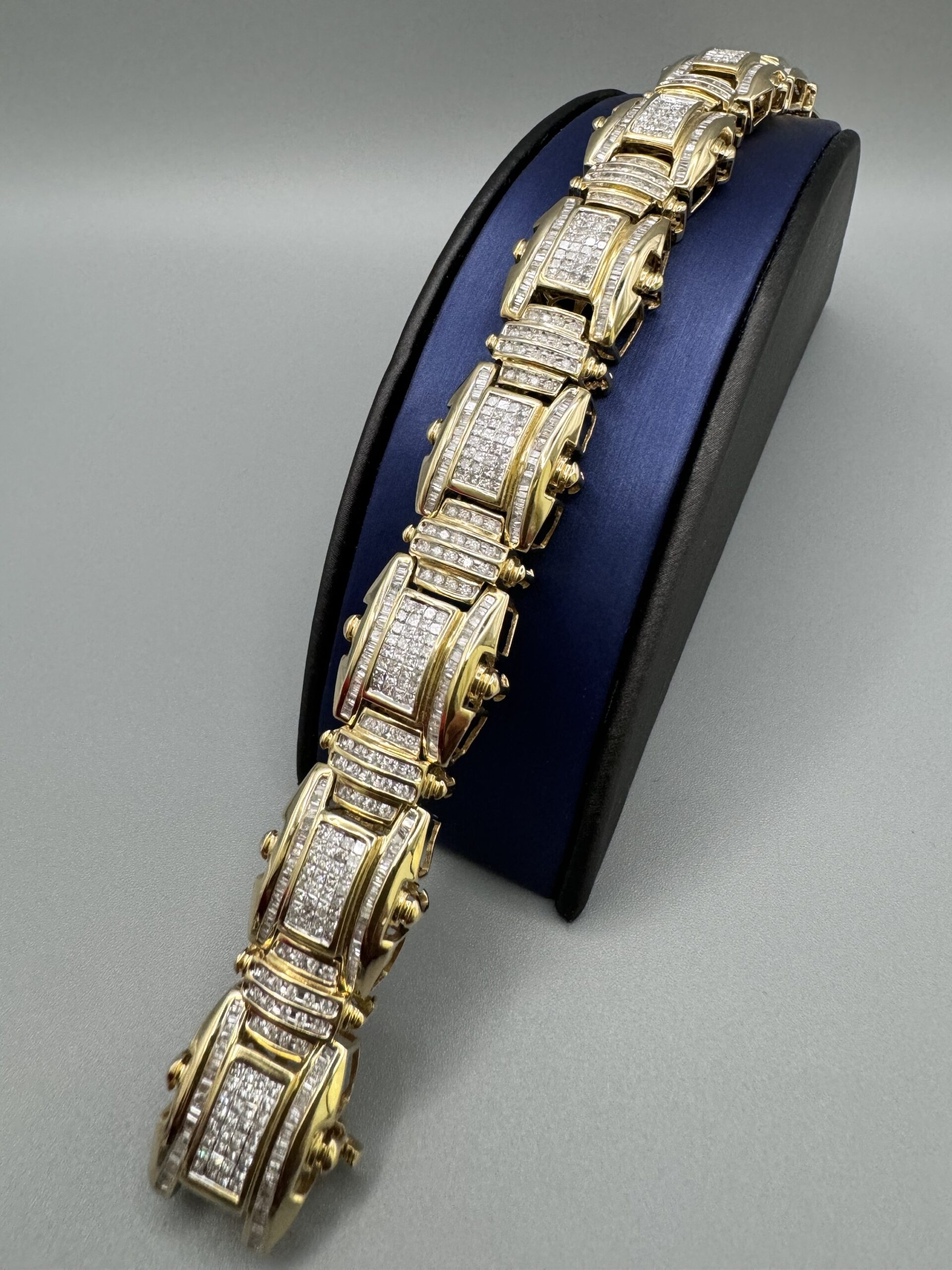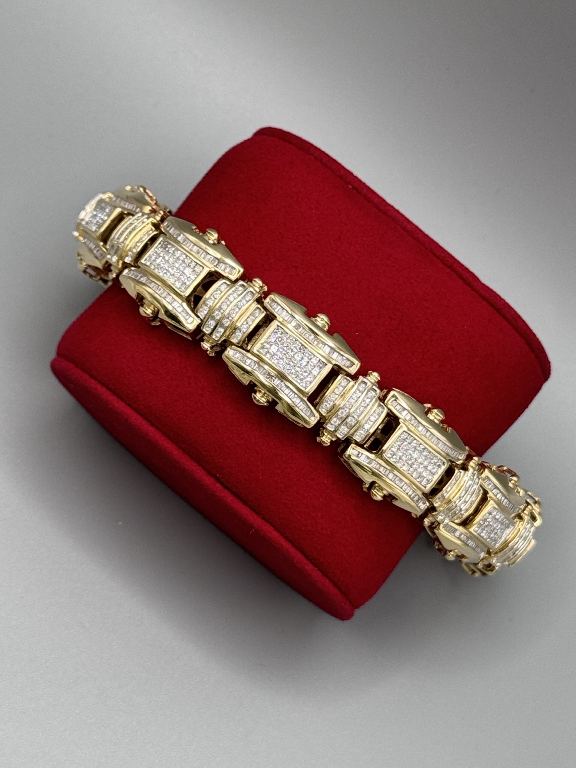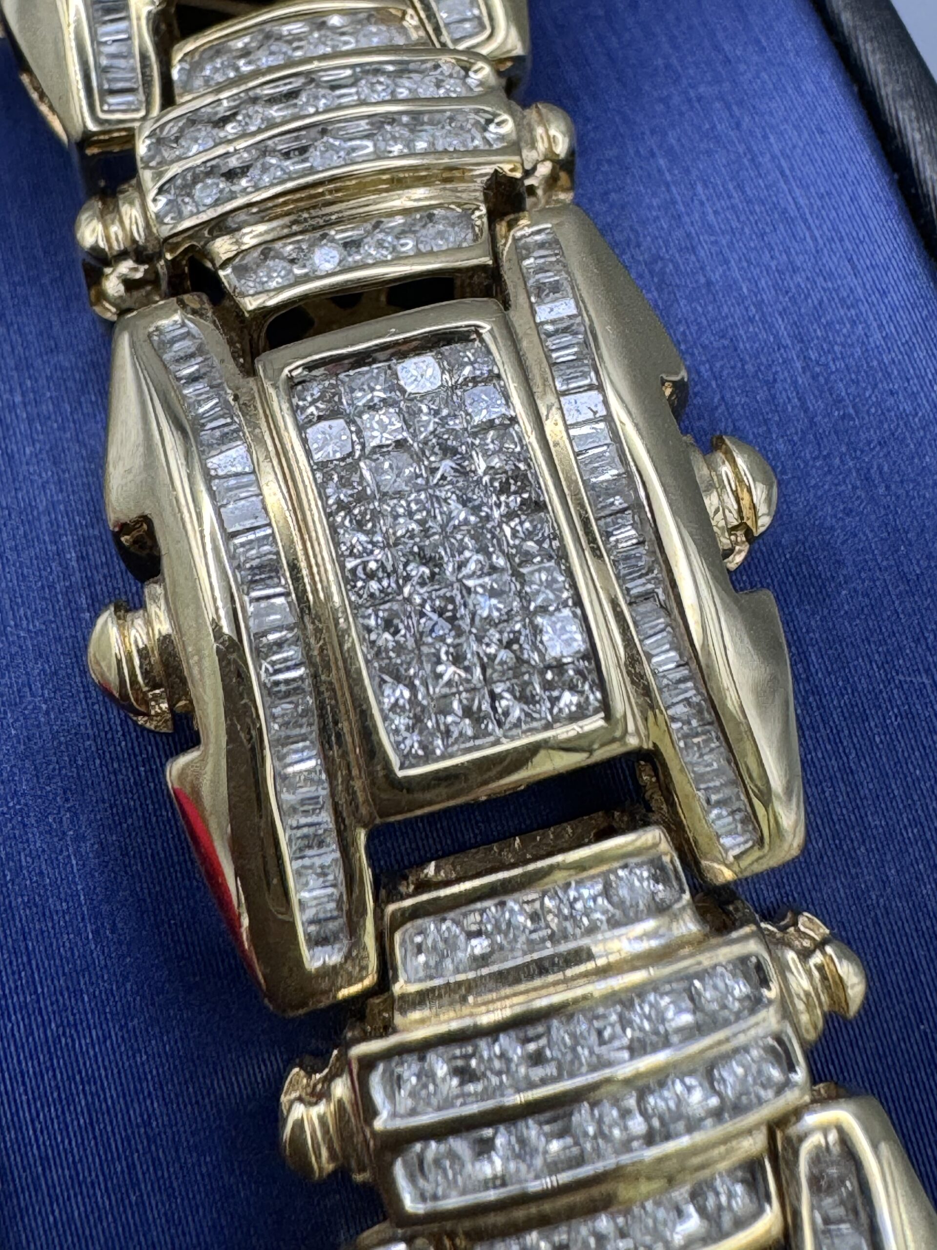 14KT Gold 8.10CT InvisibleSet Men’s Bracelet 20MM With Baguette And Round Diamond Approx Gold Weight 70.4 Gram Size 10″