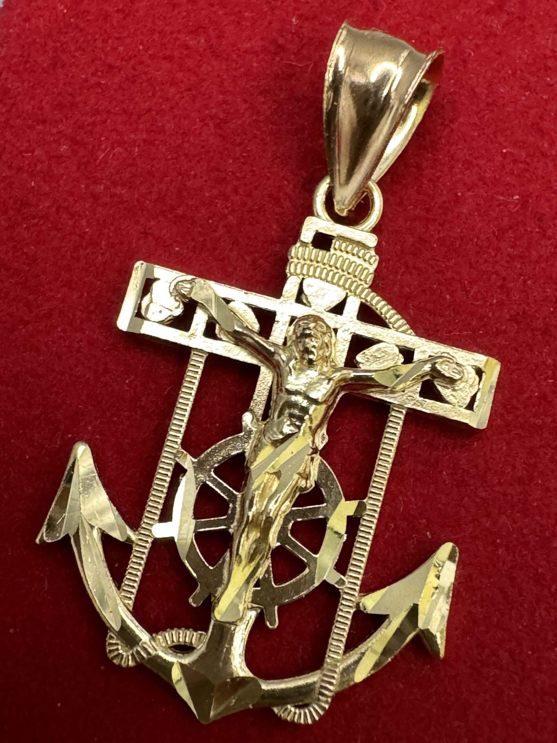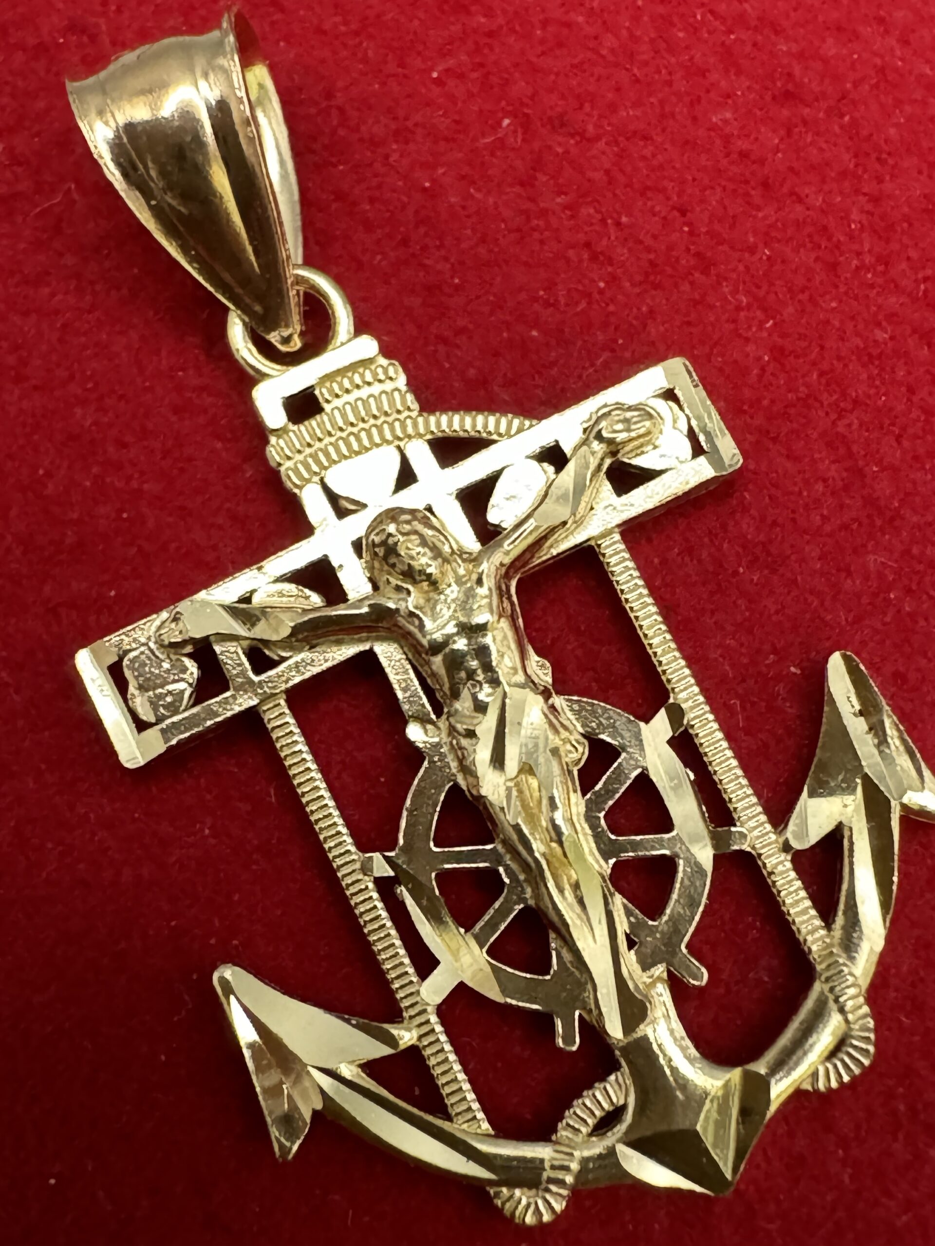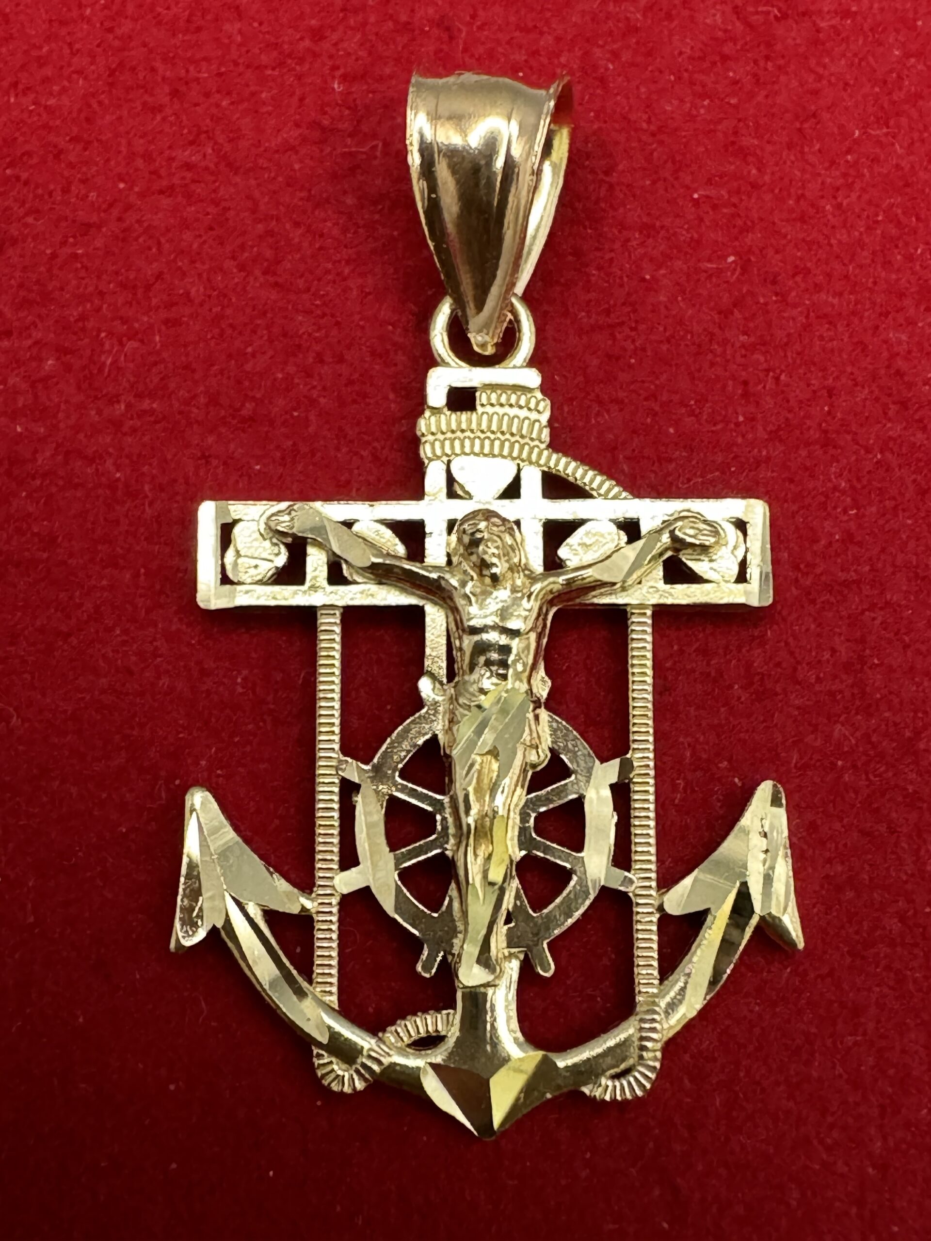 Set sail with our 14KT Gold AnchorCross Pendant! Weighing approximately 2.1 grams and measuring 0.75″ wide by 1.25″ tall, it’s a charming blend of faith and style ready for your adventures.