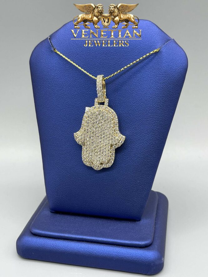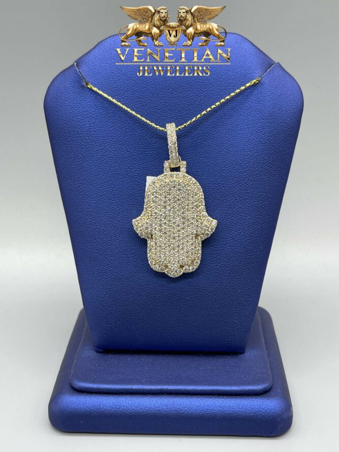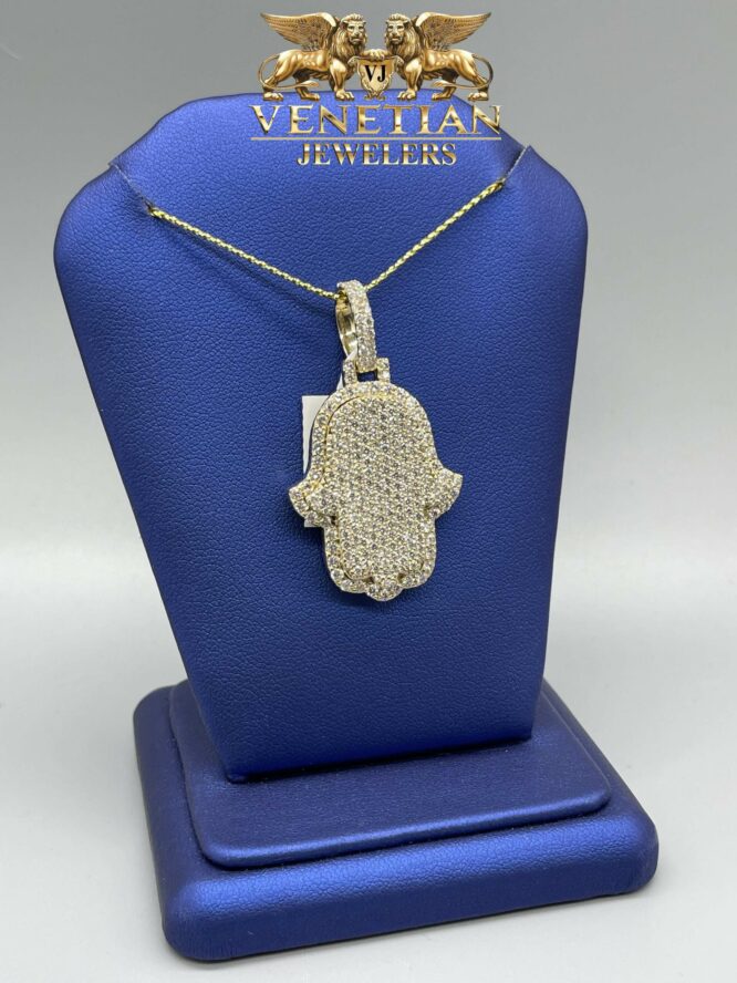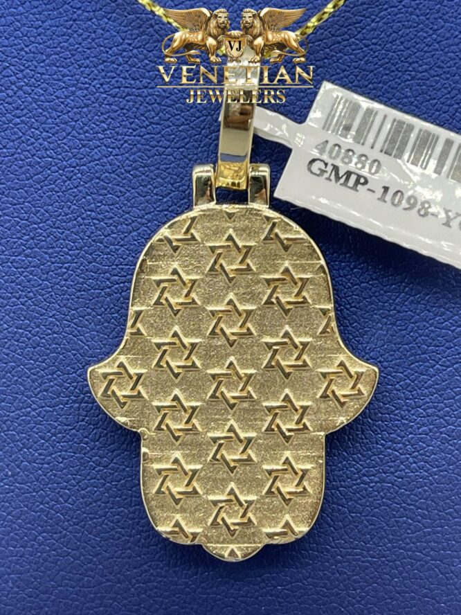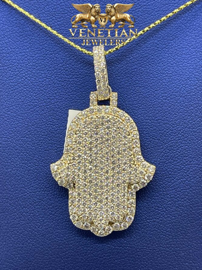 14KT Yellow Gold HoneyComb Set Solid 3.10CT Diamonds Hamza Hand Beautifully Crafted With VS Quality Stones With Star Of David Markings On The Back