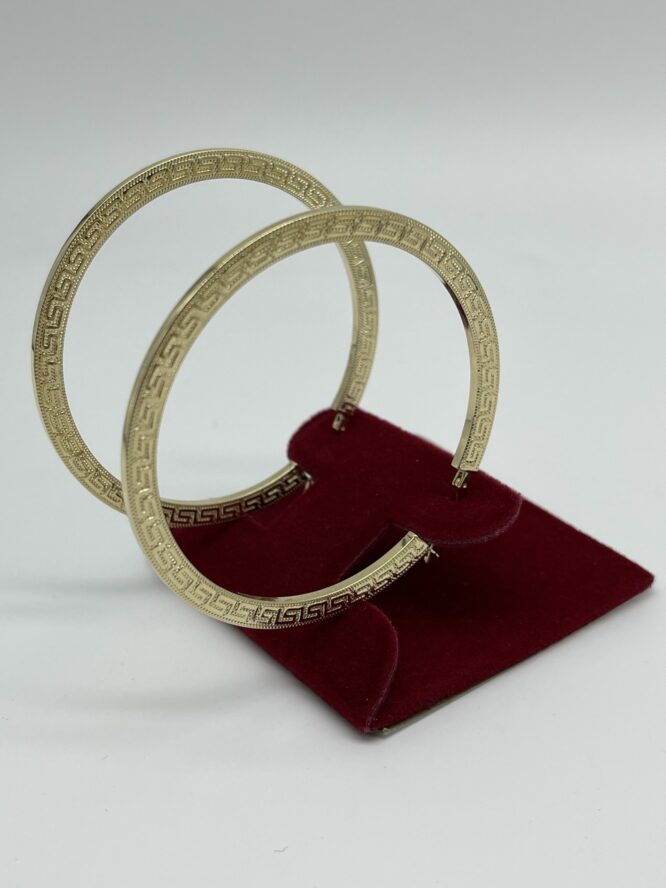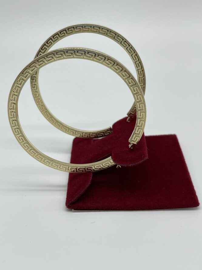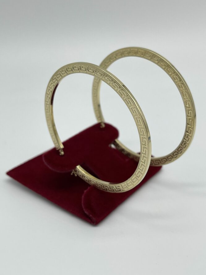 14Kt Gold Fancy 2.25 Inch Greeks Design Female Hoop Earrings Approx Gold Weight 7.30Grams