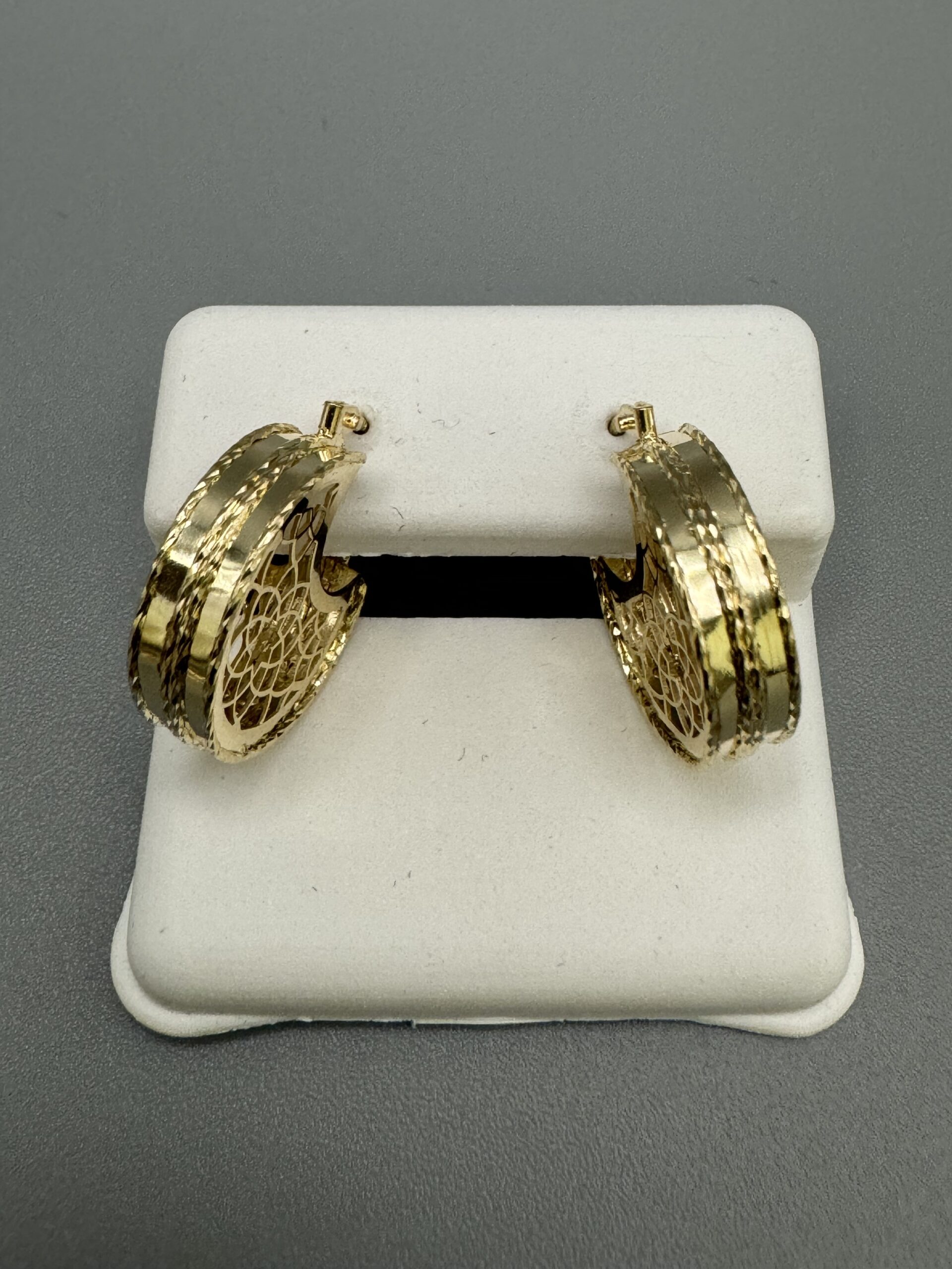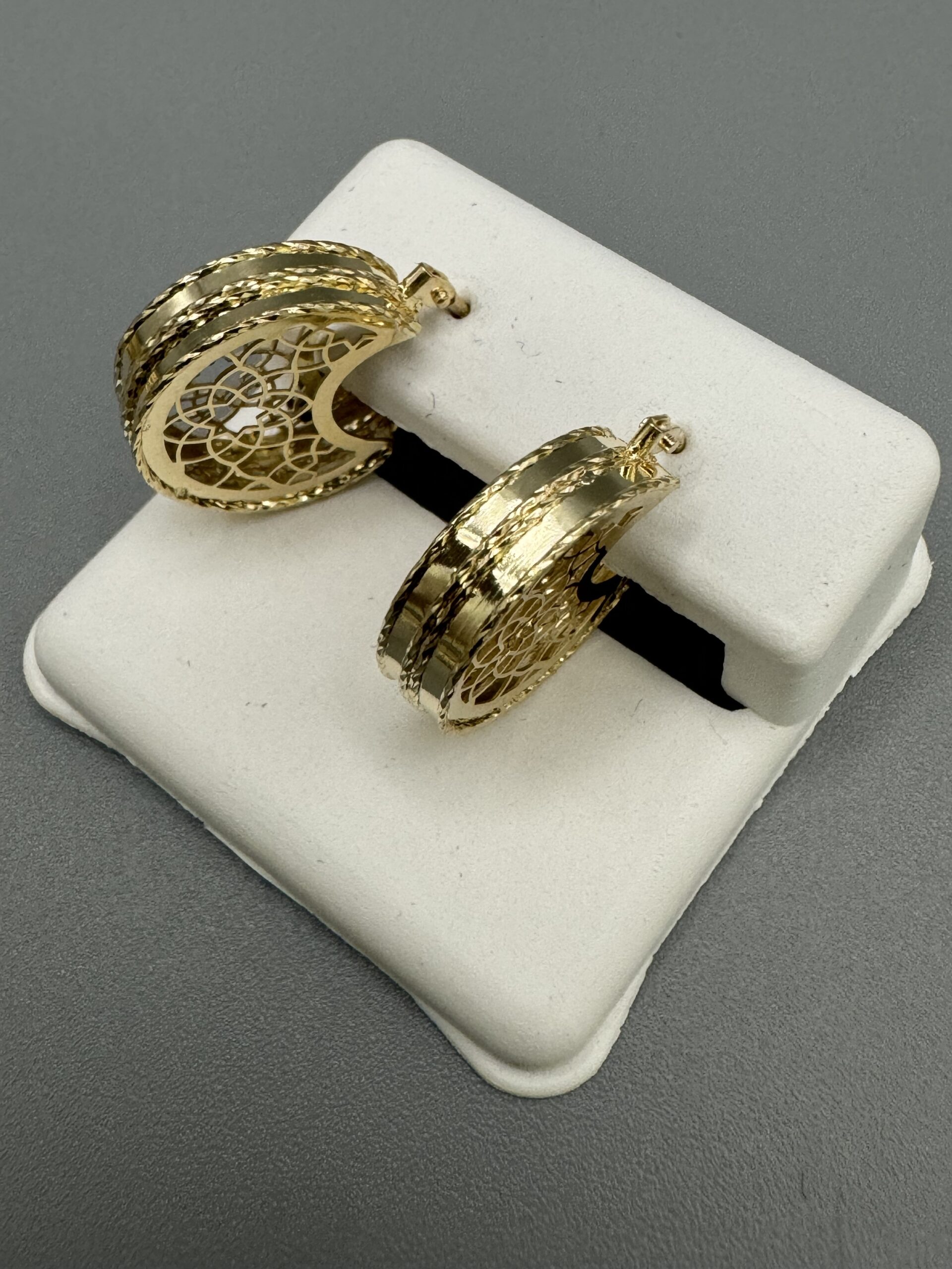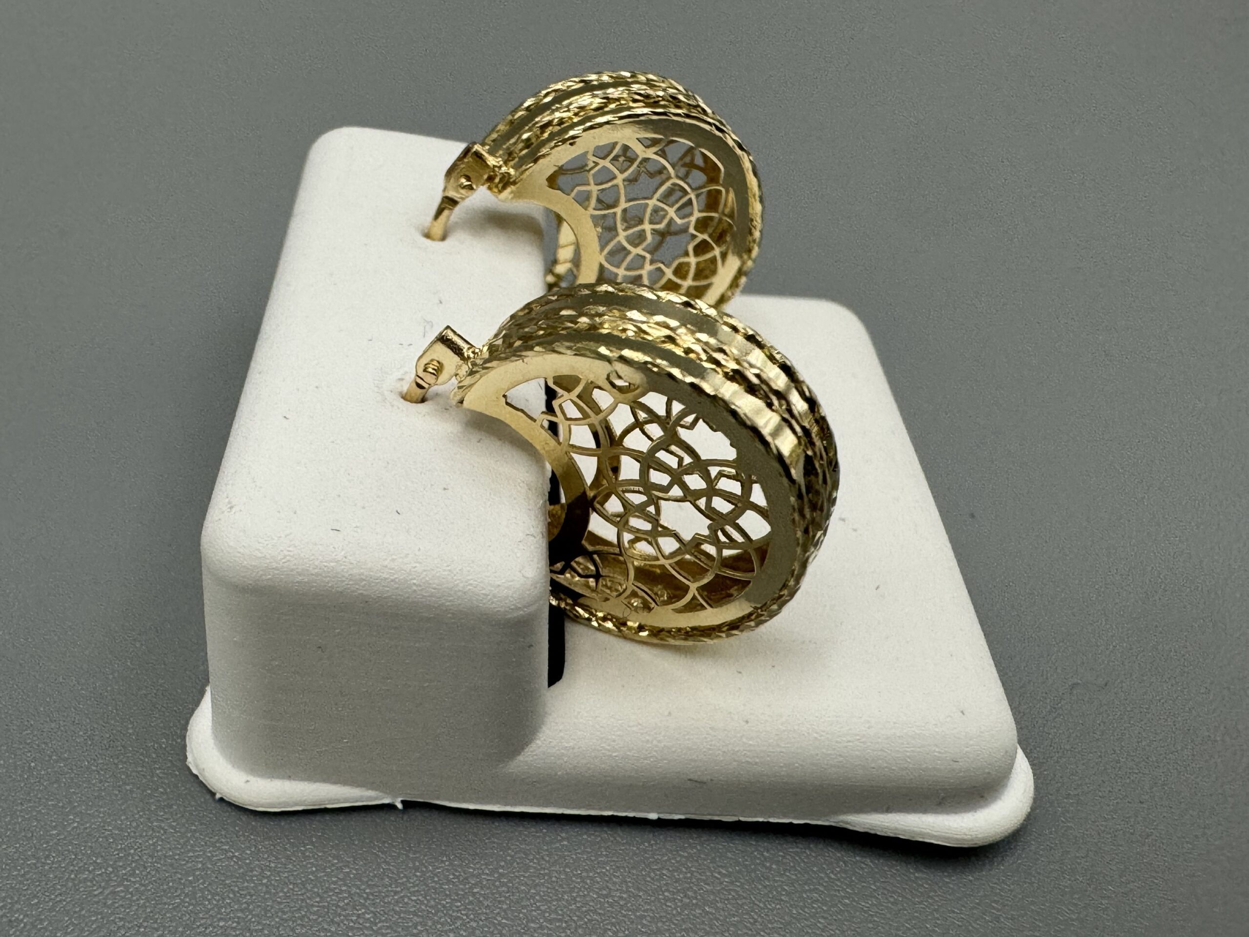 14KT Gold Fancy Hoop Earrings 5MM Width Approx Gold Weight 2.5 Gram 0.65″ Wide
