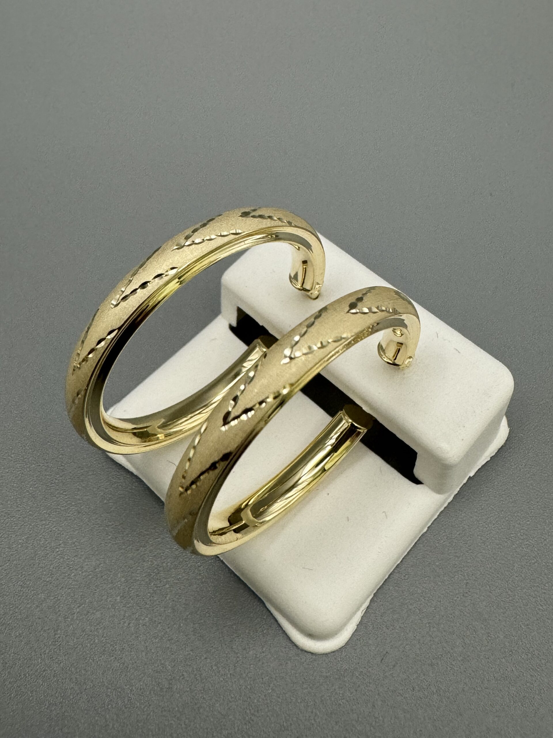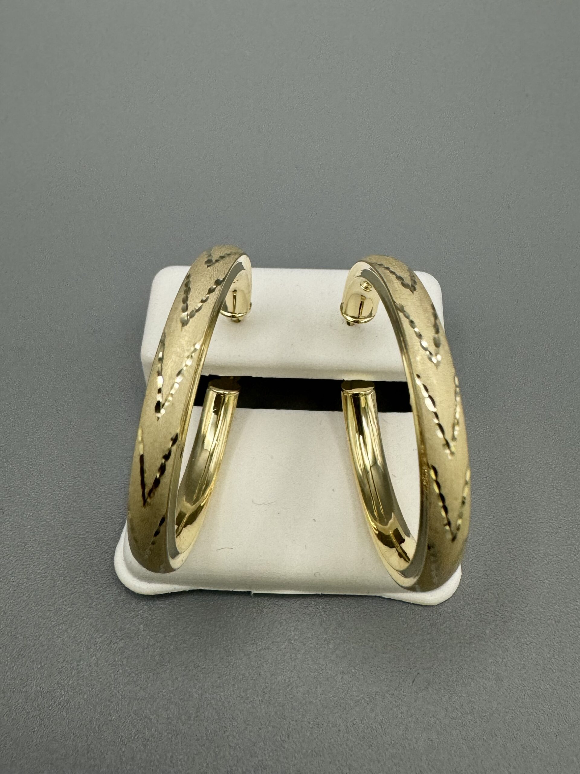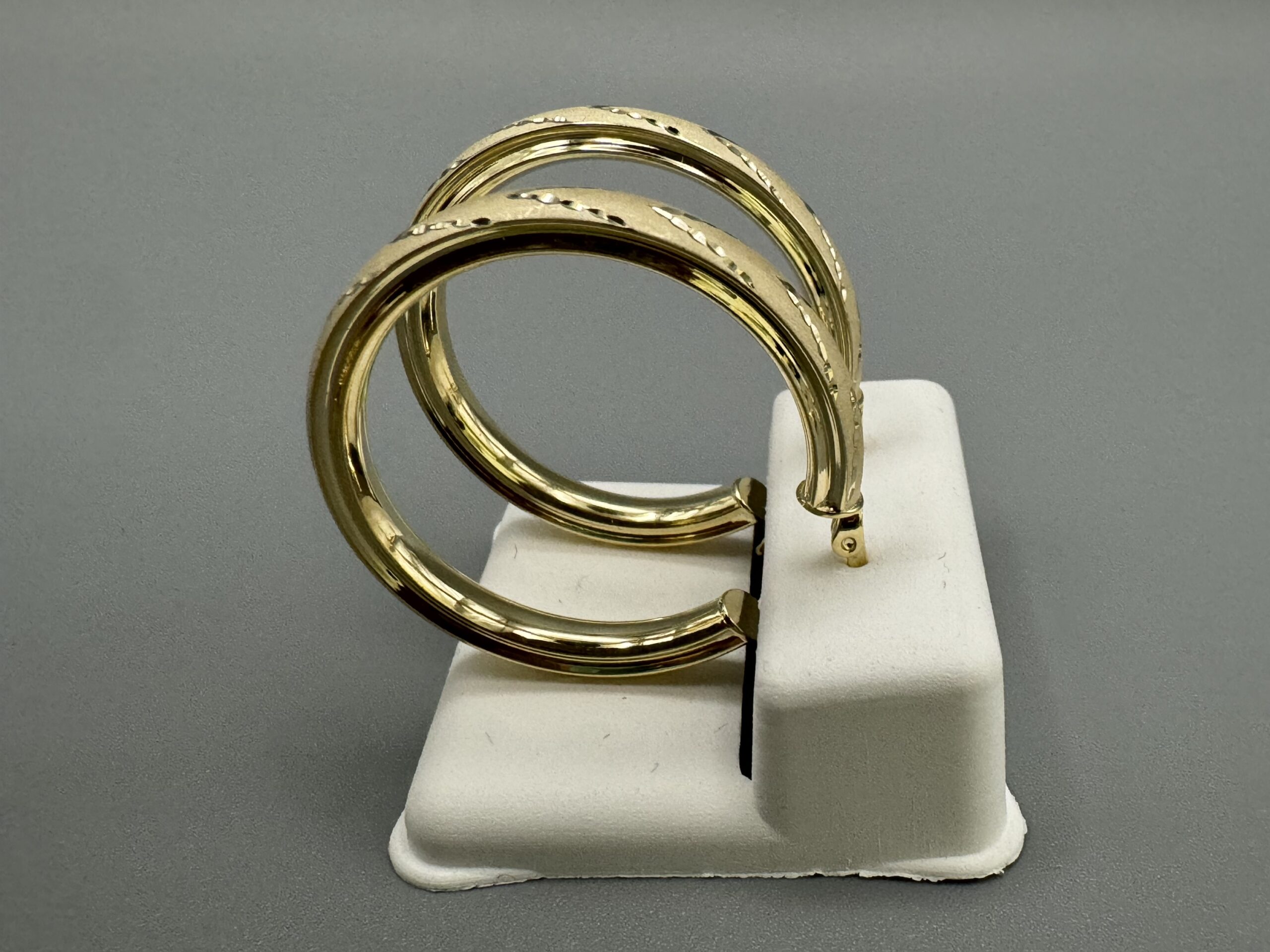 14KT Gold Fancy Hoop Earrings 4MM Width DiamondCut Approx Gold Weight 4.1 Gram 1.25″ Wide