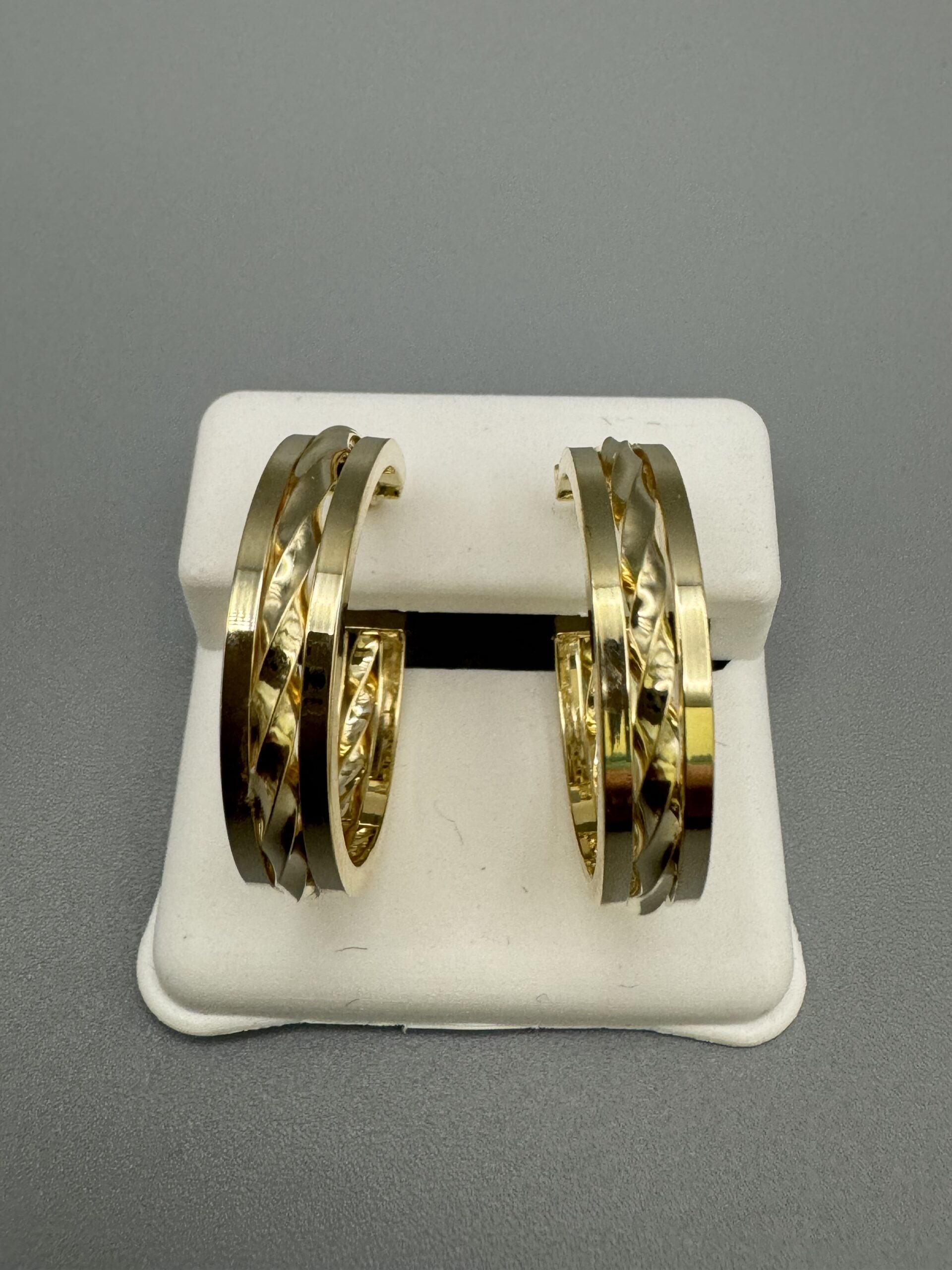 14KT Gold Fancy Hoop Earrings 5MM Width Twisted Design In Middle Approx Gold Weight 4.5 Gram 1″ Wide