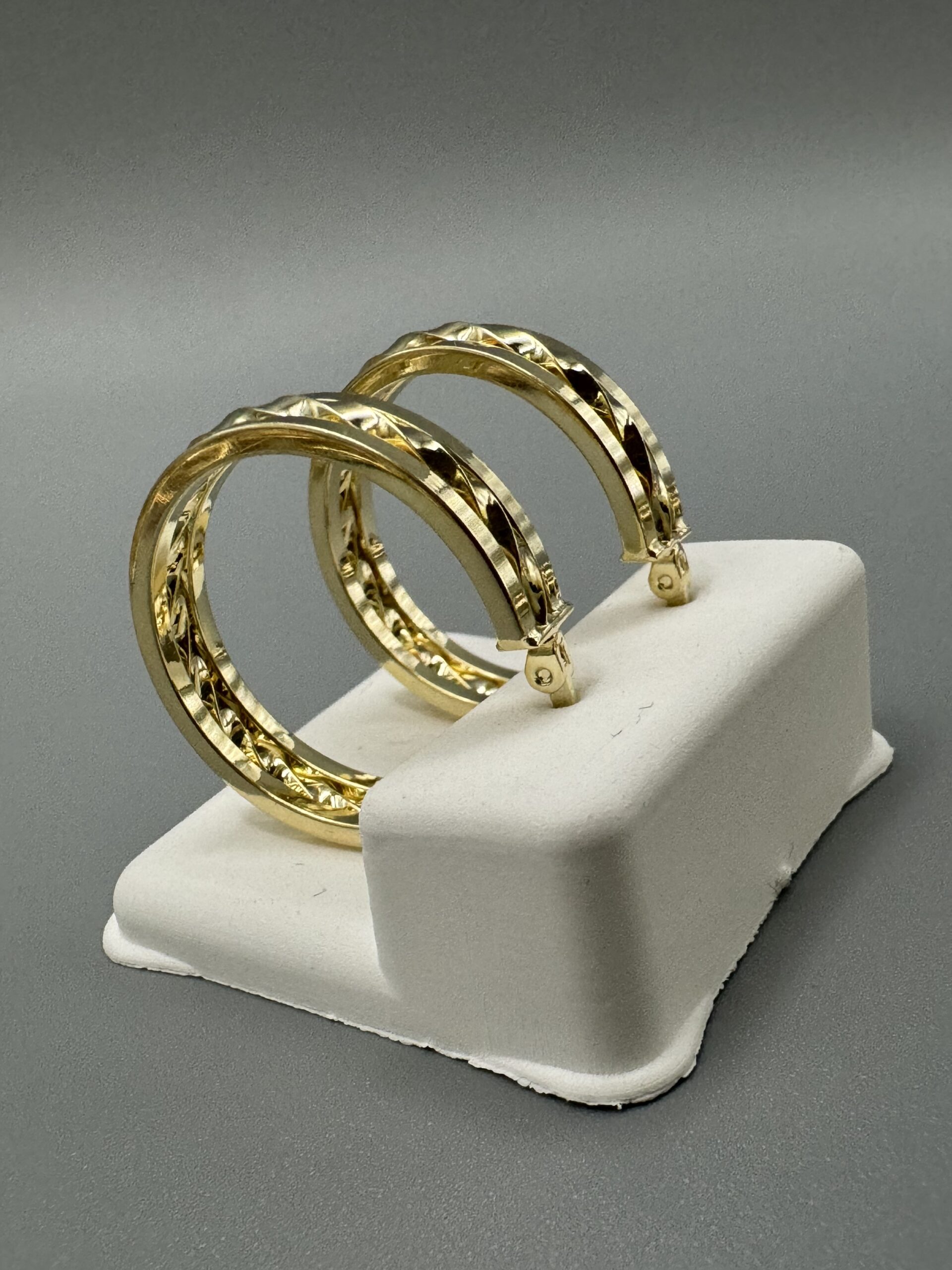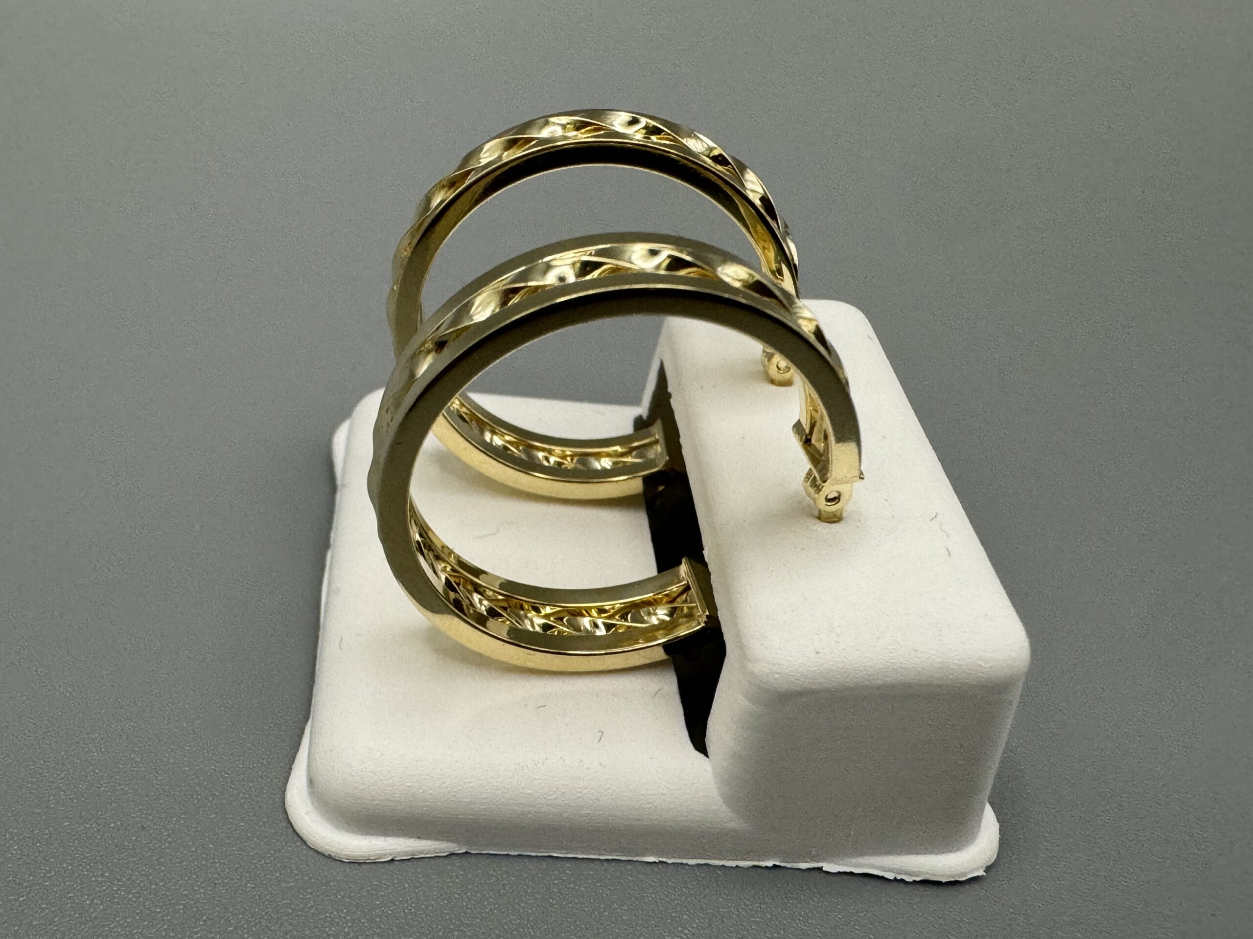14KT Gold Fancy Hoop Earrings 14KT Gold Fancy Hoop Earrings Original price was: $1,299.99.Current price is: $649.99.