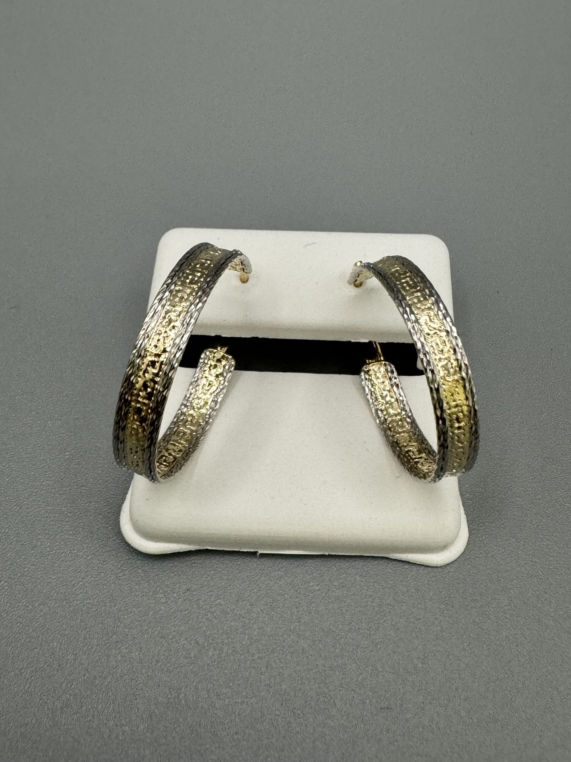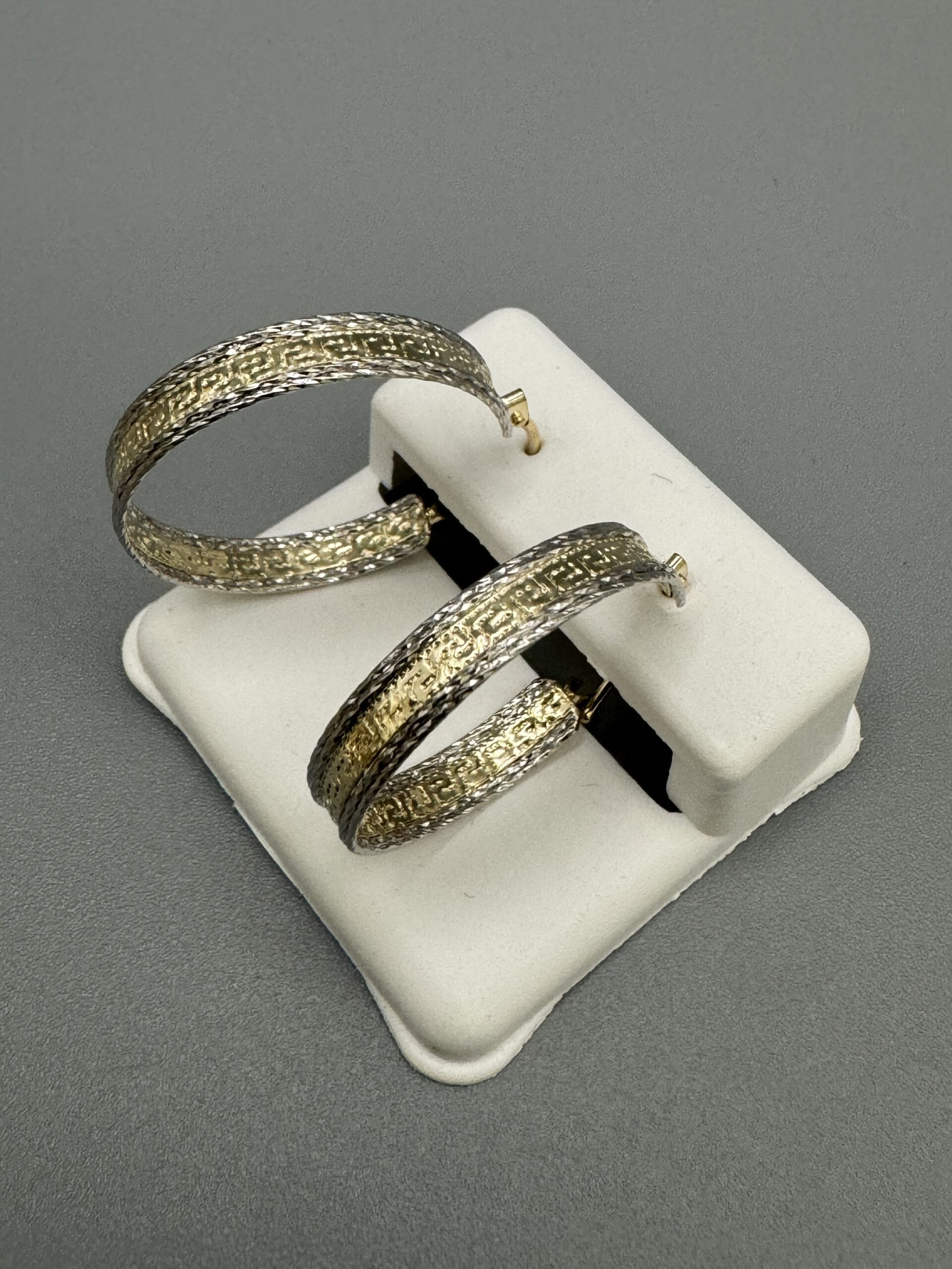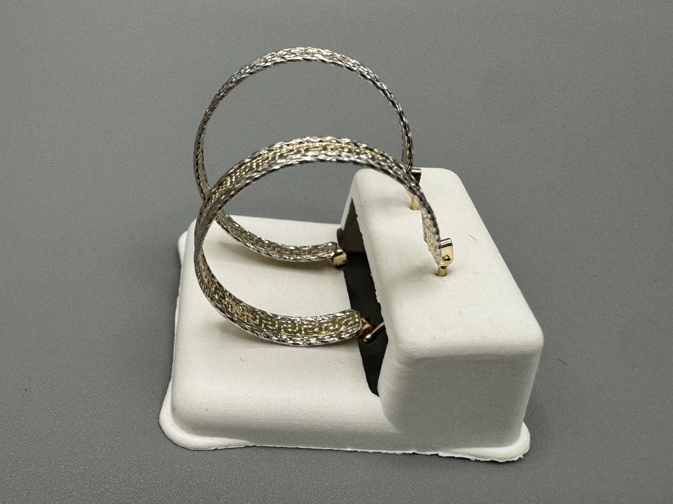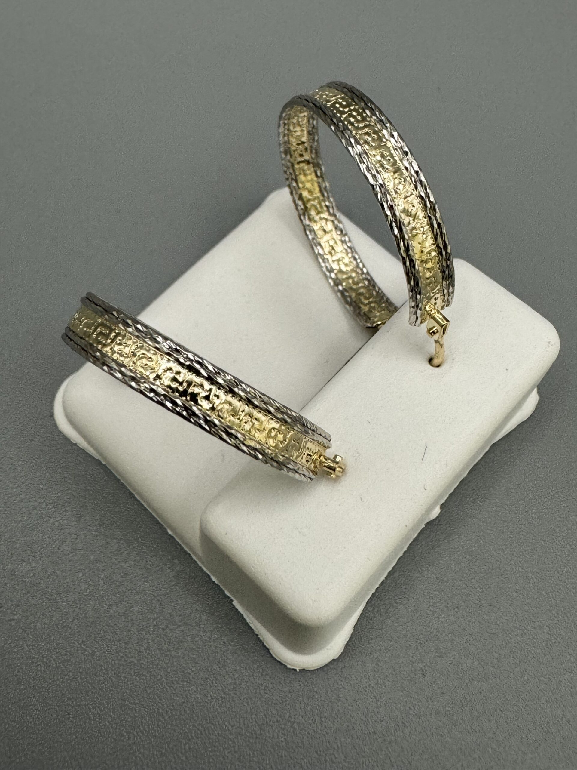 14KT Gold Fancy DiaCut Hoop Earrings 5MM Width Oval Design Approx Gold Weight 2.9 Gram 1″ Wide