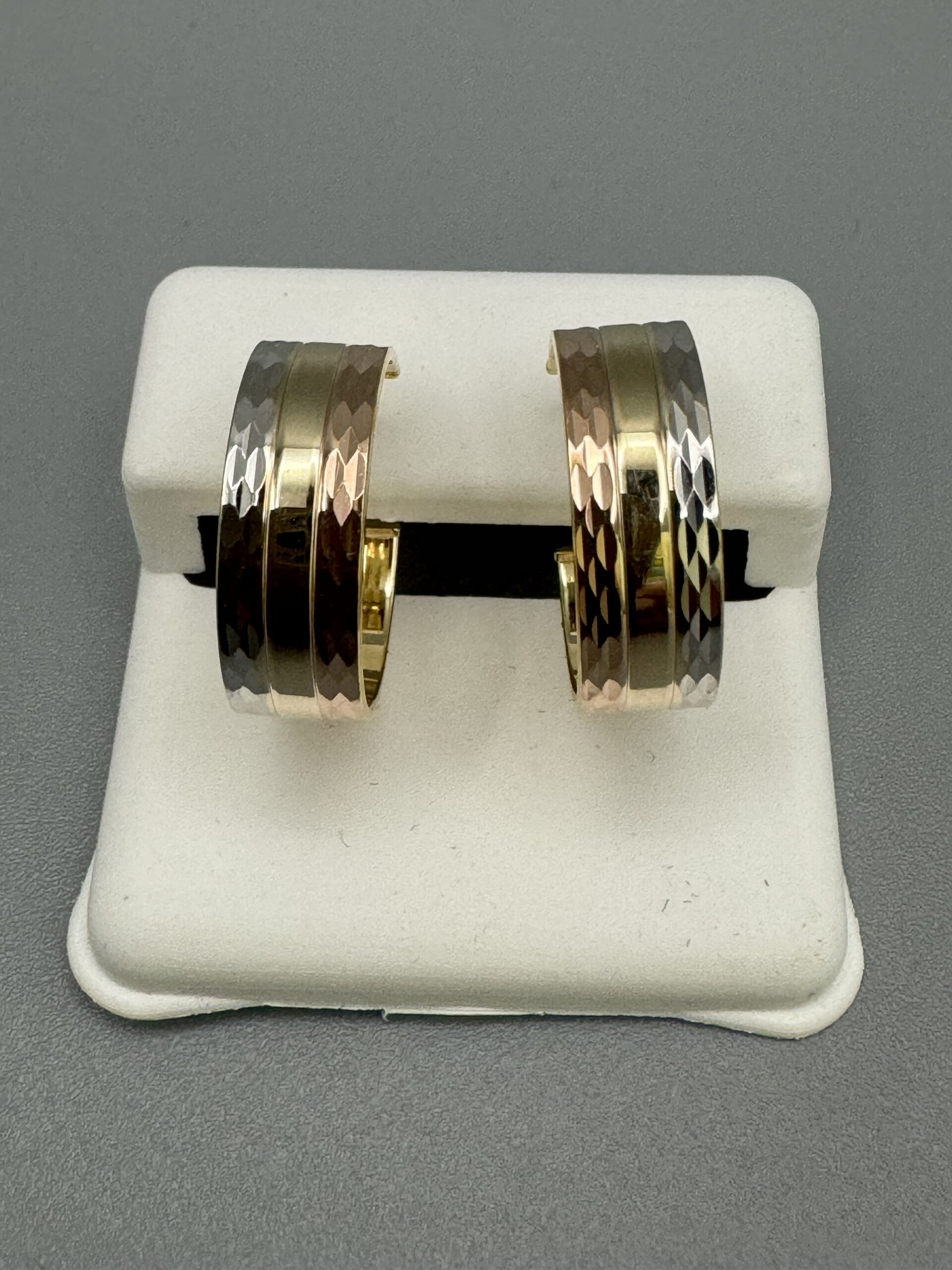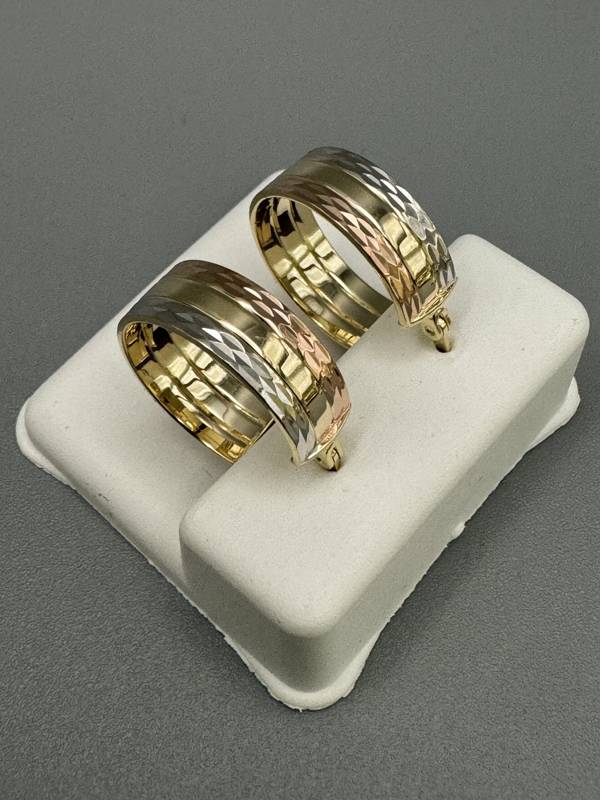 14KT Gold Fancy TriColor Hoop Earrings 6MM Width Approx Gold Weight 3.1 Gram 0.65″ Wide