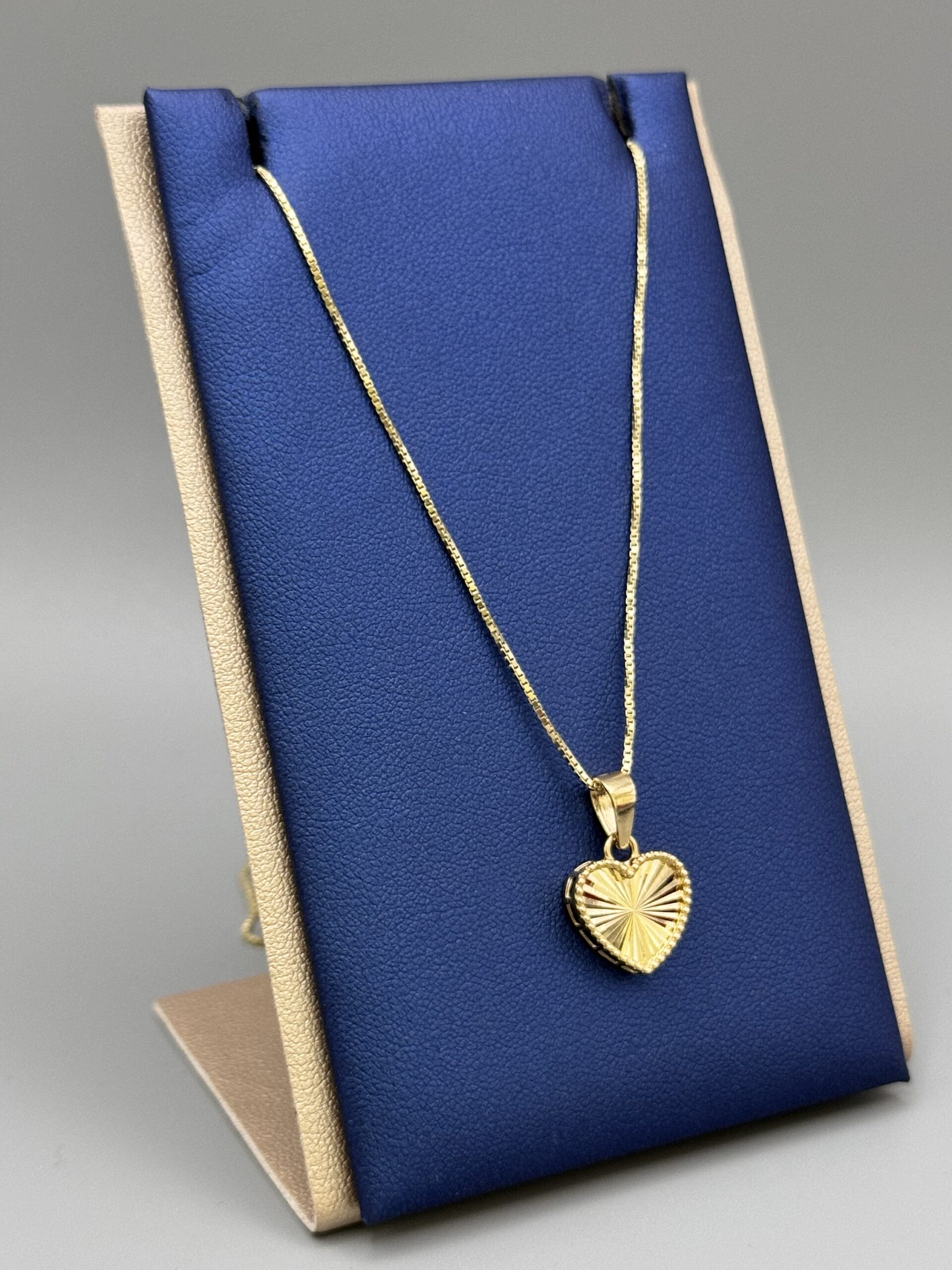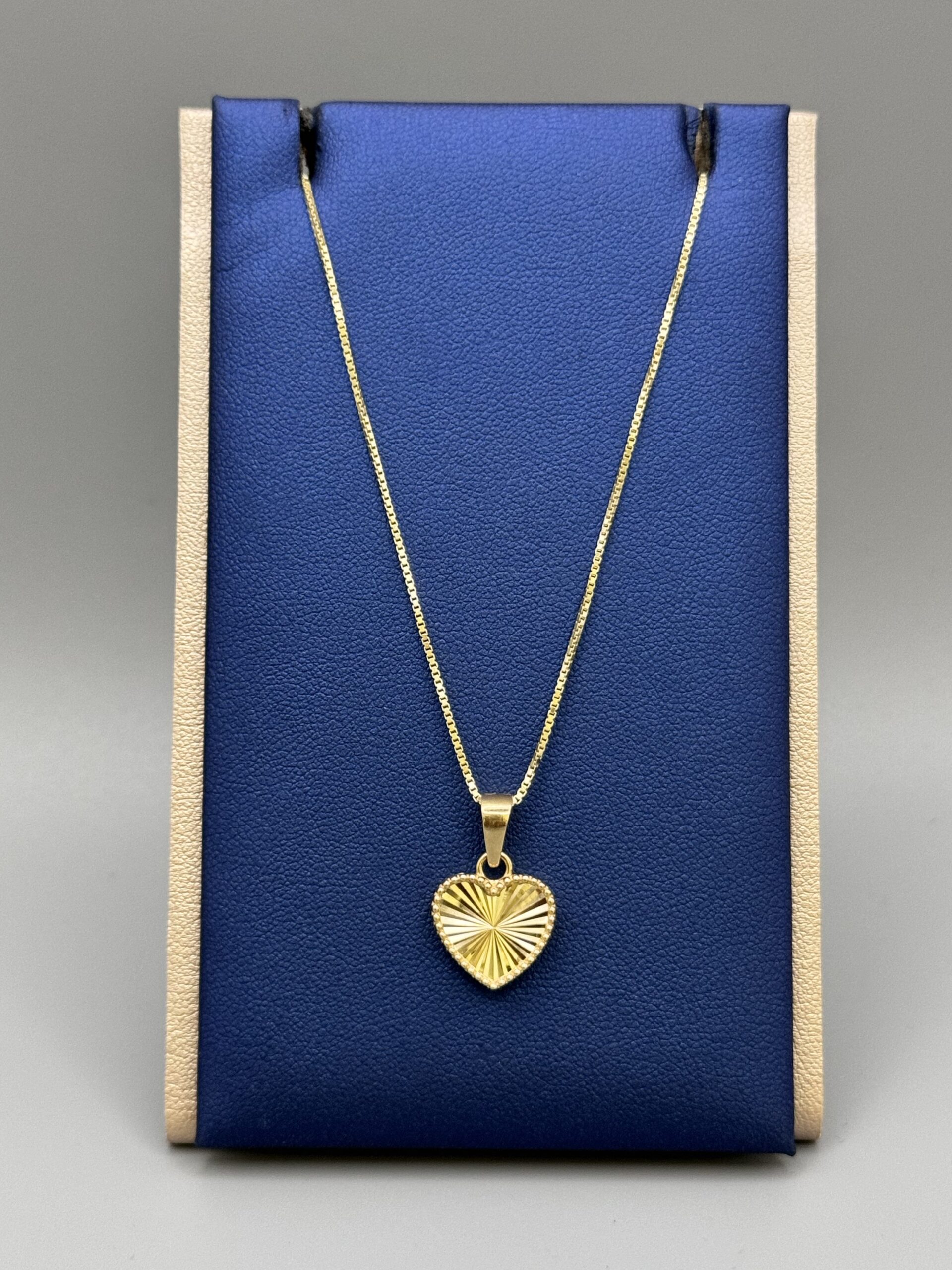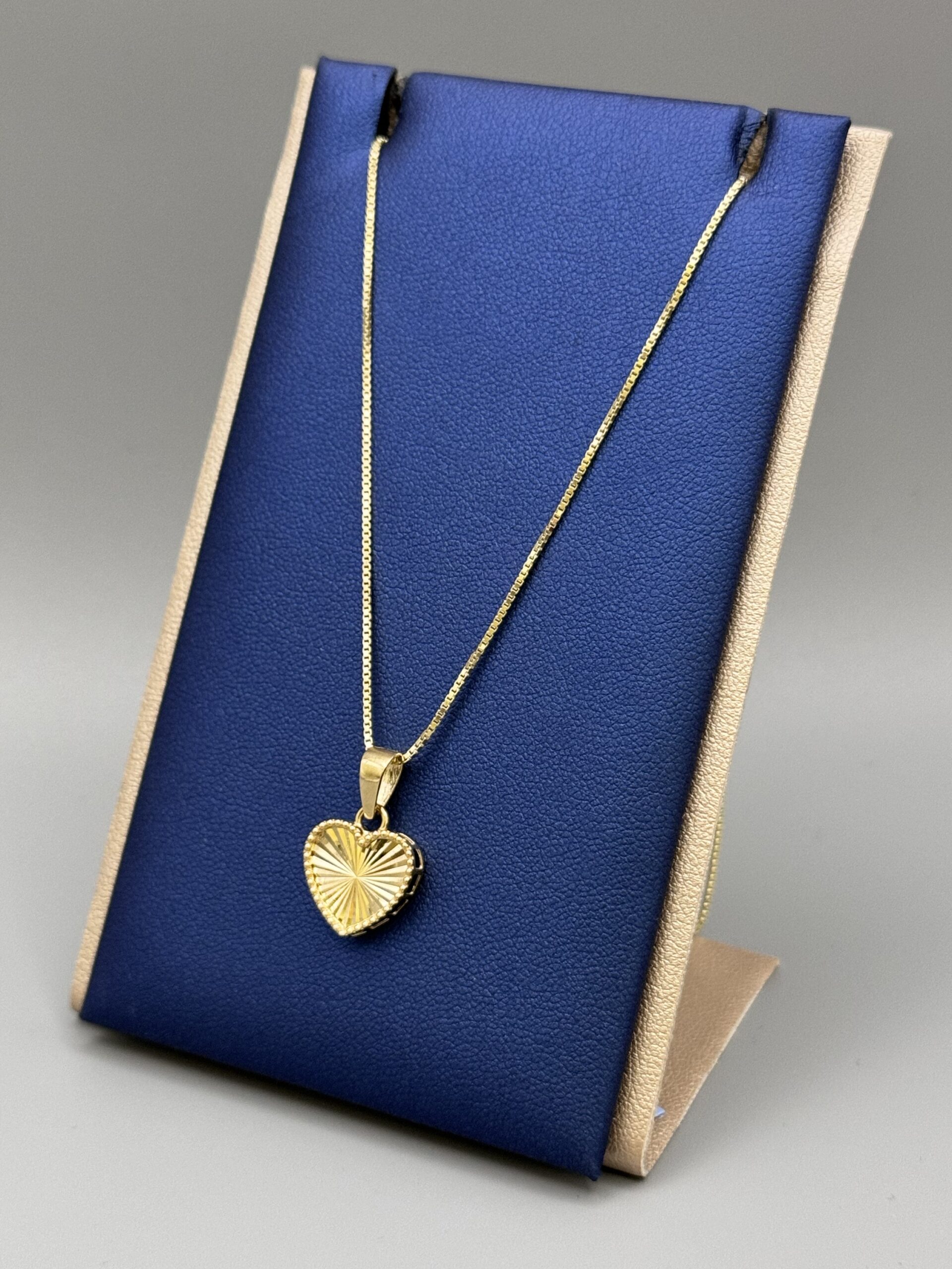 Adorn yourself with love! This 14KT Gold Heart Pendant Set weighs 3.4 grams and includes a stylish 16″ box chain. Perfect for adding a touch of elegance to any outfit!