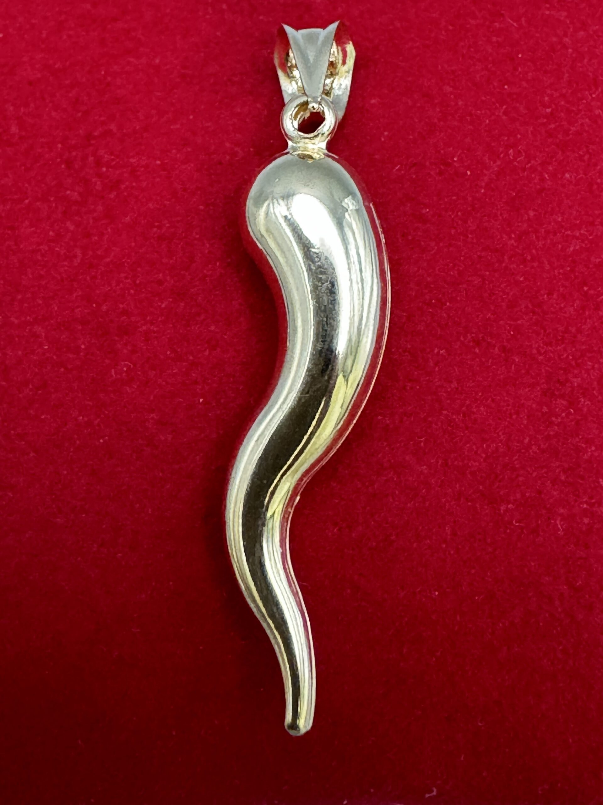 14KT Gold Italian Horn Pendant 1.75″ Tall By 0.45″ Wide All Around Approx Gold Weight 2.4 Gram