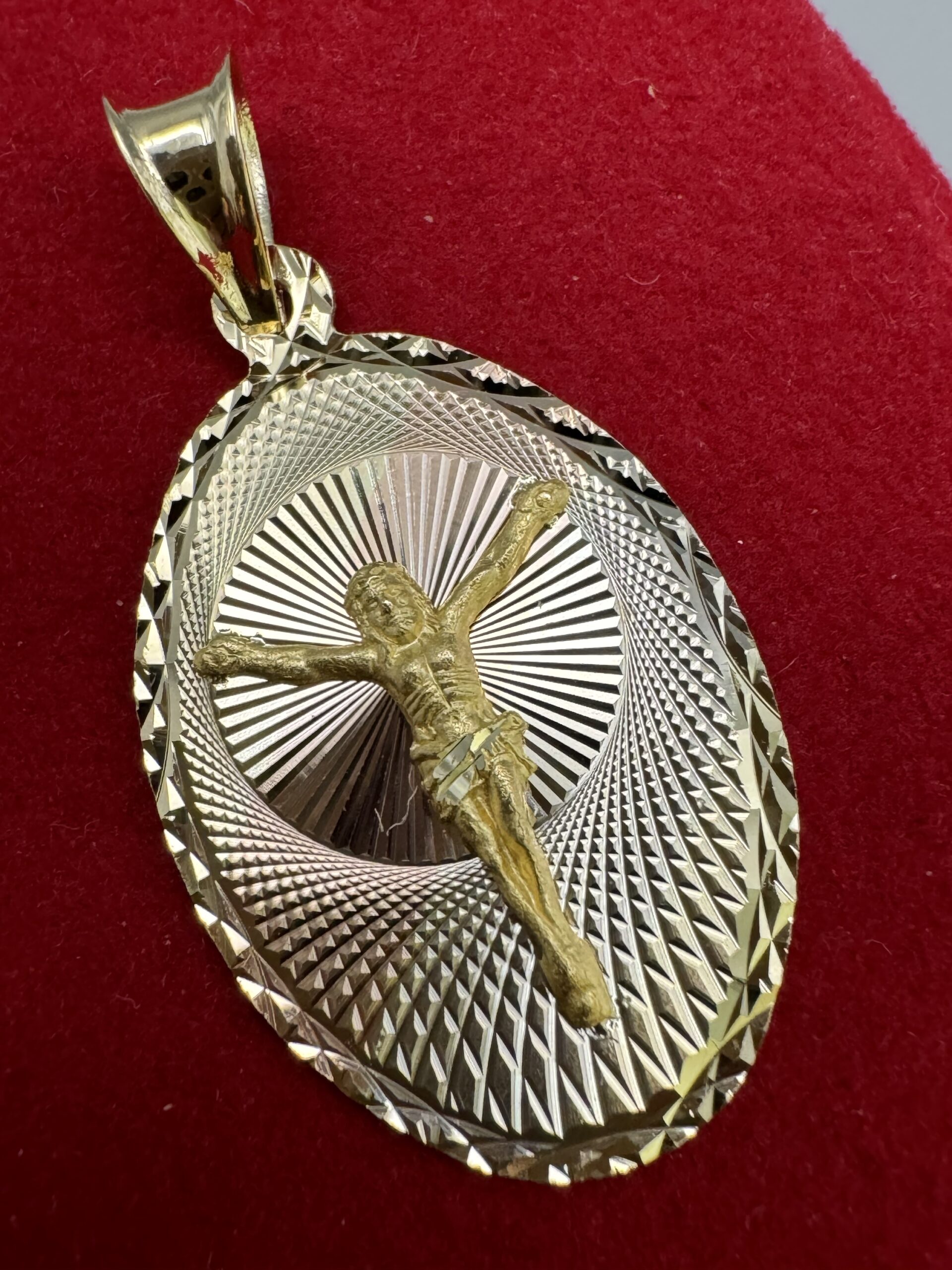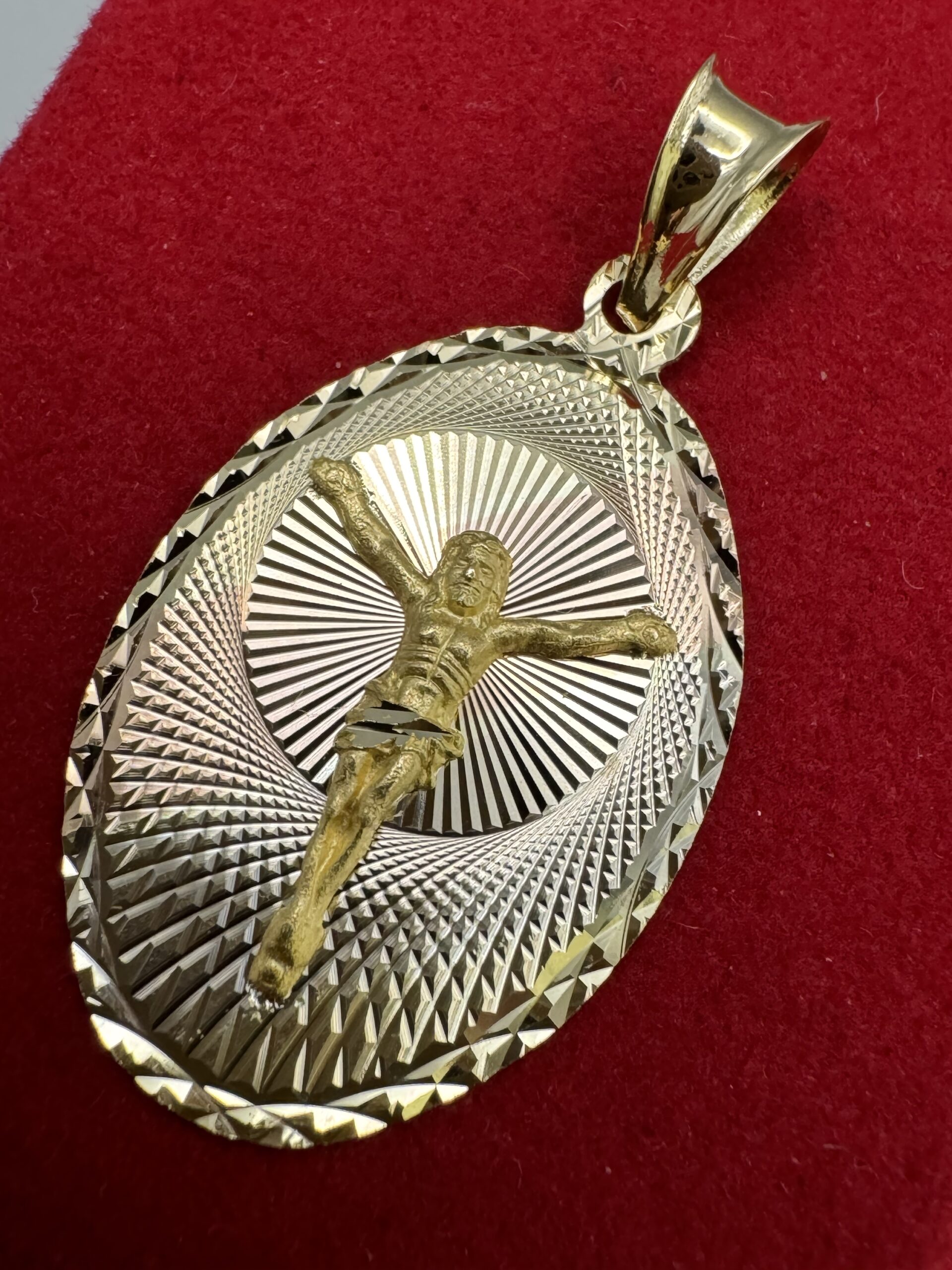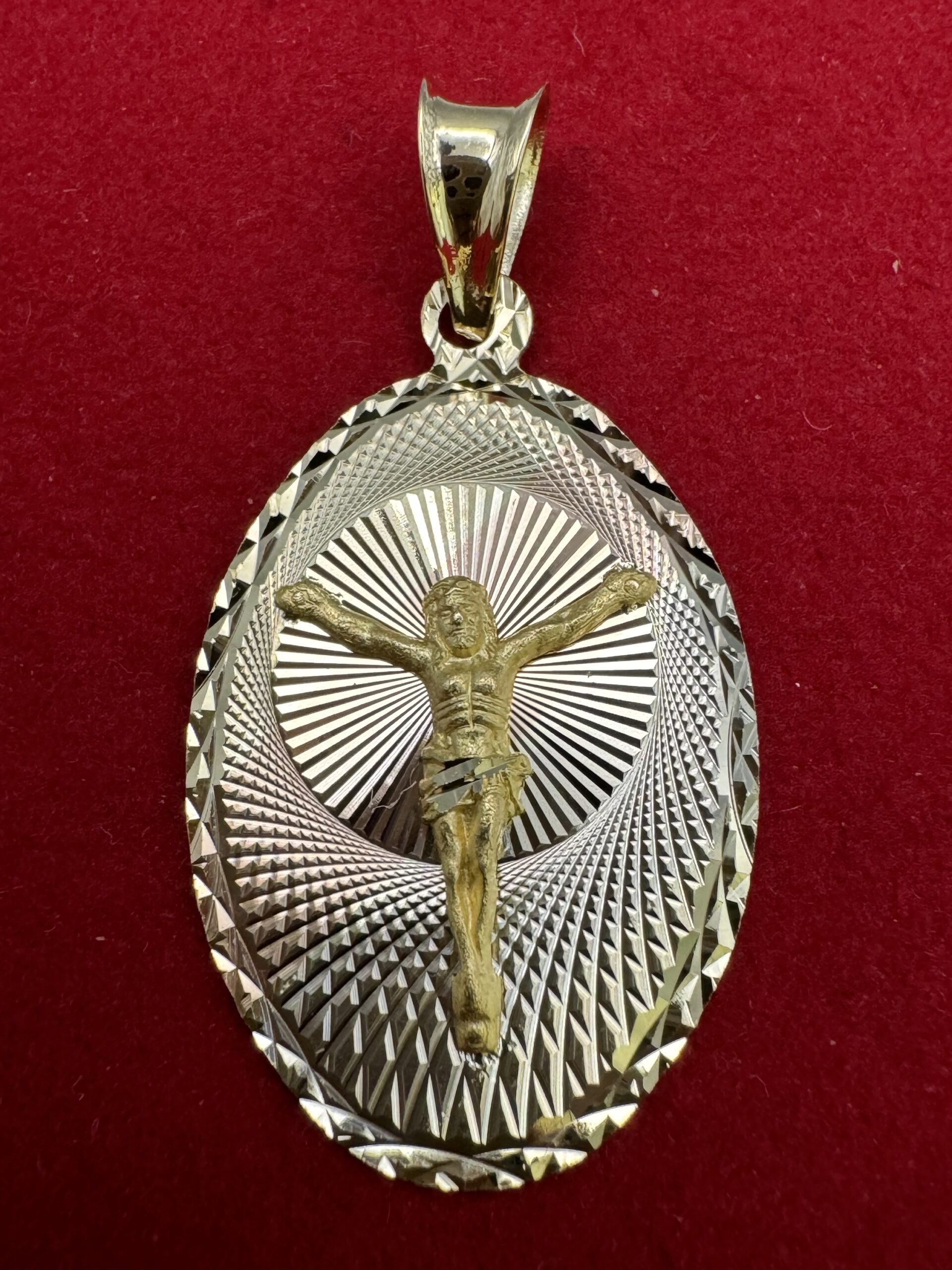 14KT Gold Jesus Pendant With LaserCut Design 1.25” Tall By 0.75” Wide Approx Gold Weight 1.8 Gram
