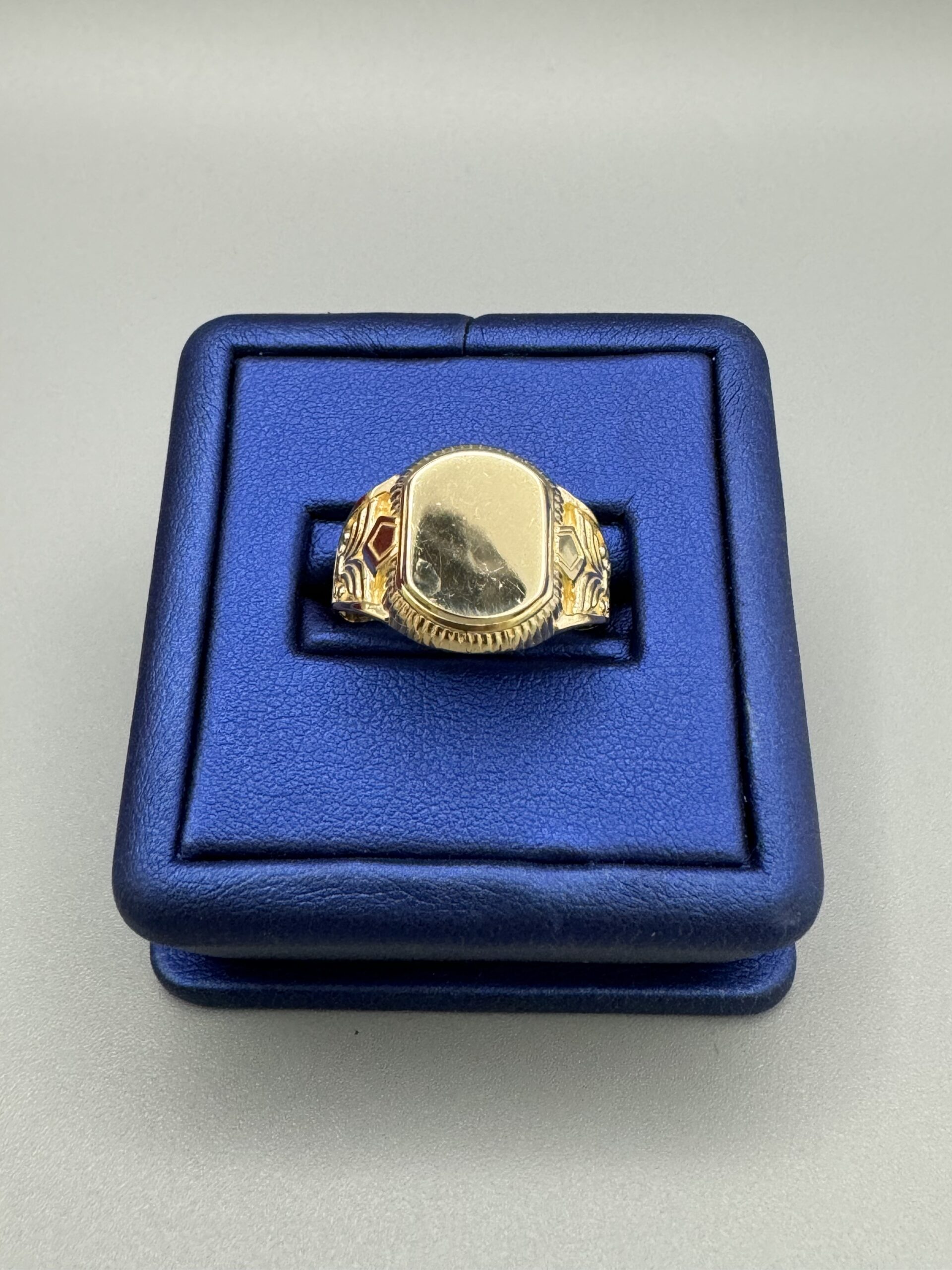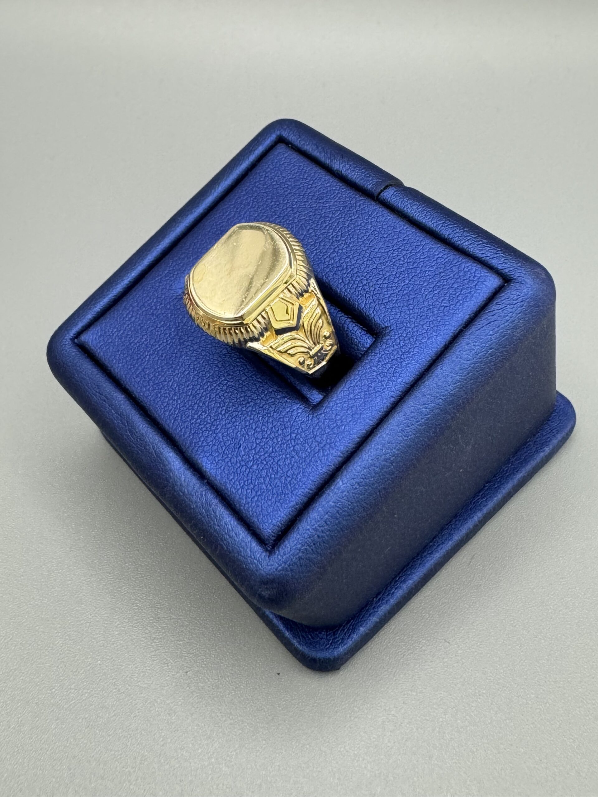 14Kt Gold Men’s Signet Ring Size 9 Approx Gold Weight 4.2 Gram 16MM engraving Available