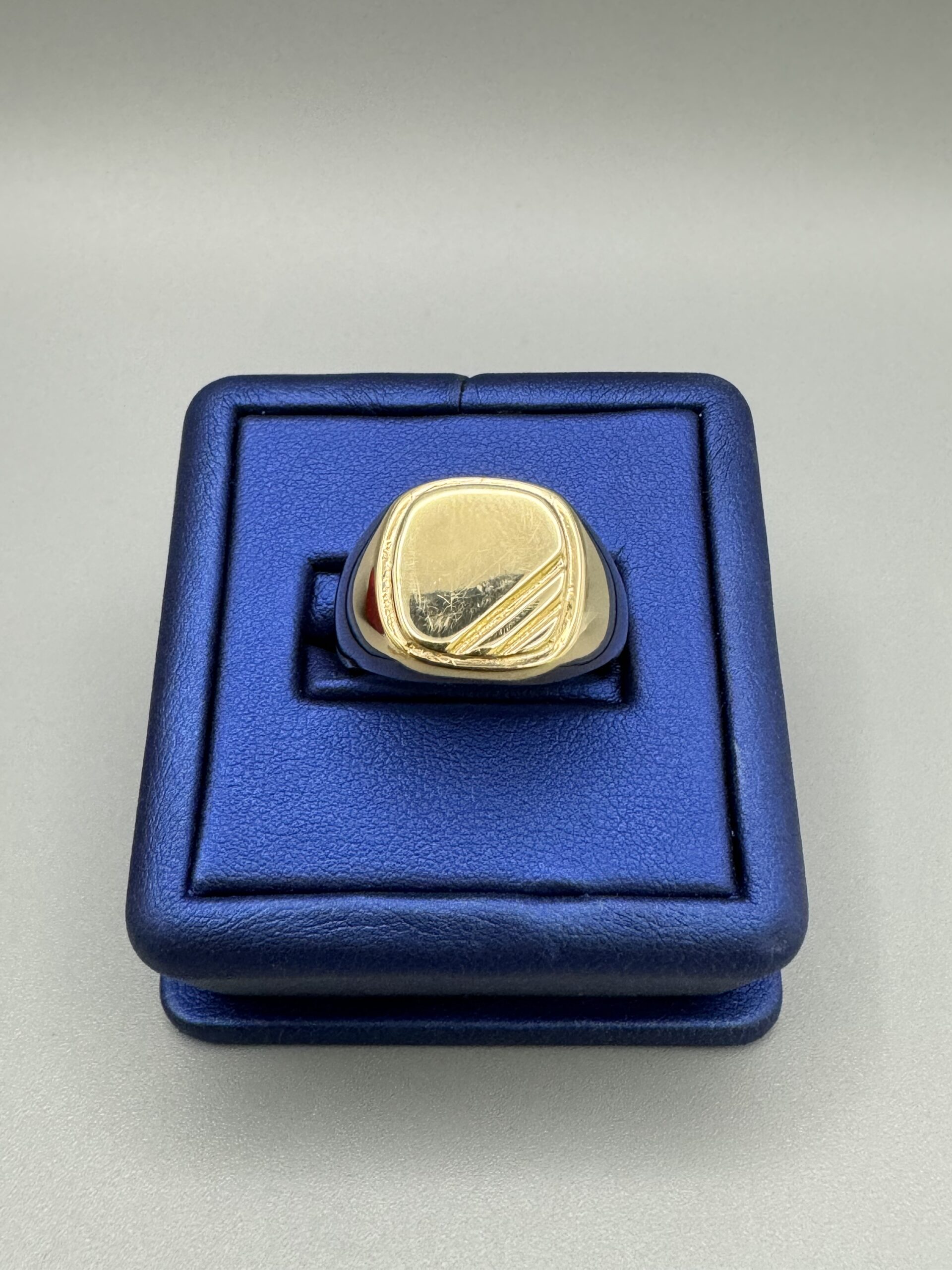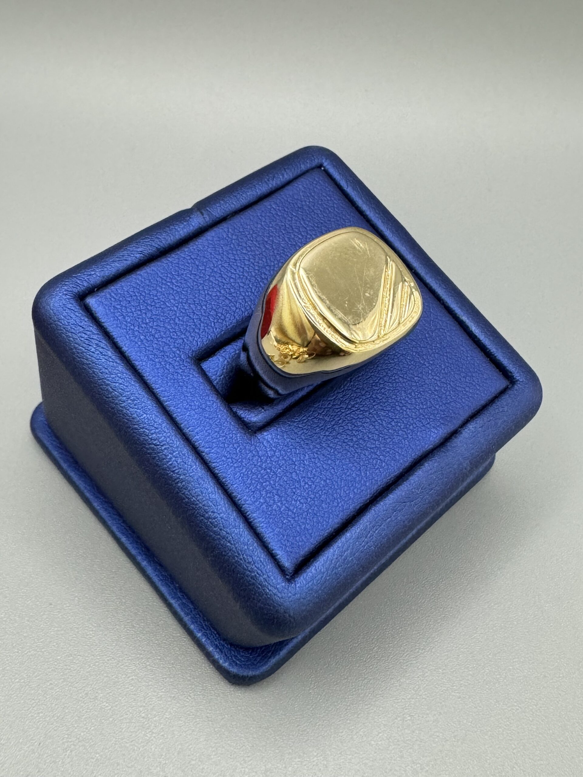 Elevate your style with this stunning 14Kt Gold Men’s Signet Ring, weighing 8.0 grams. Size 9 with a generous 16mm engraving area—perfect for personalizing your legacy in gold!