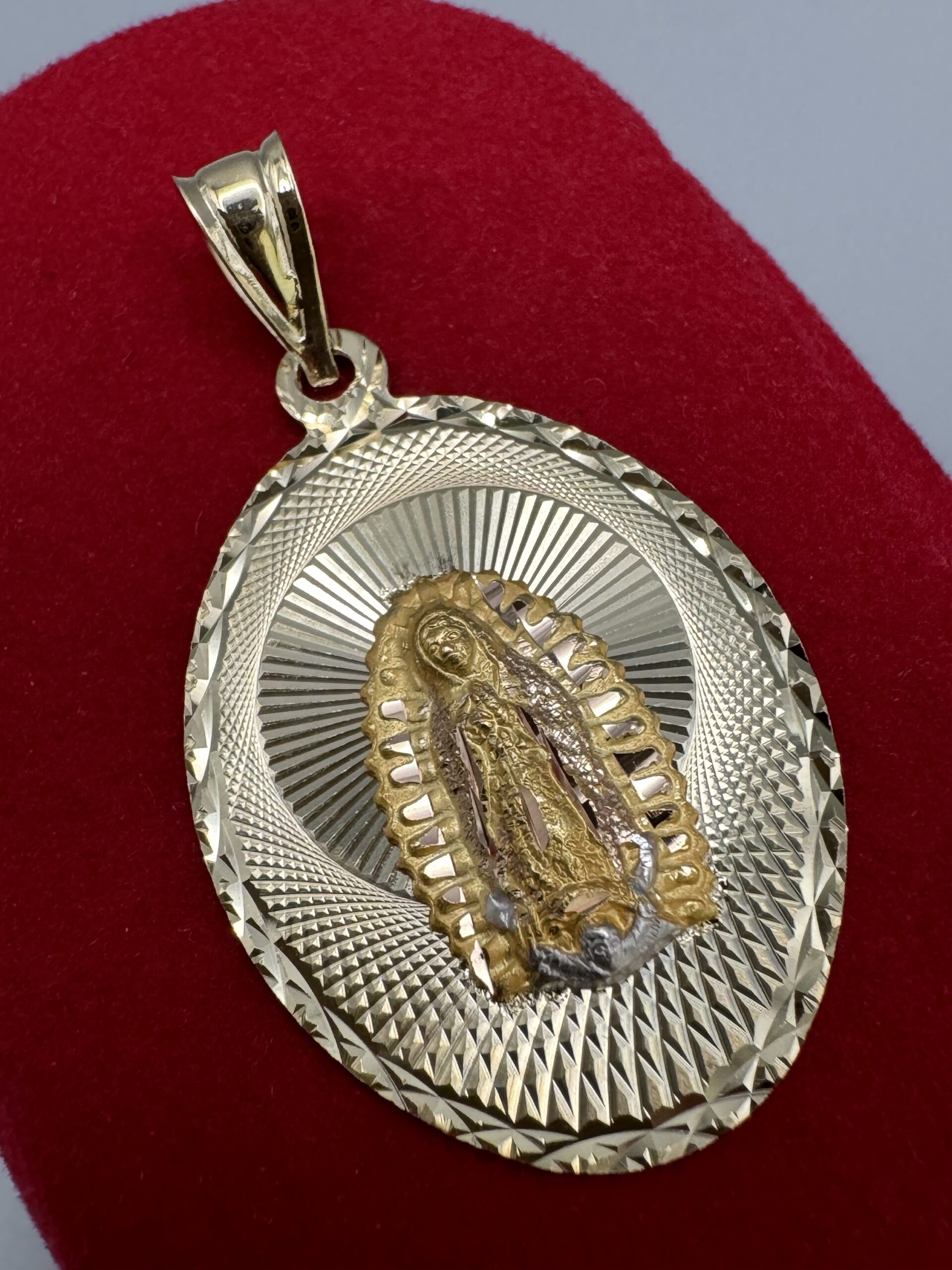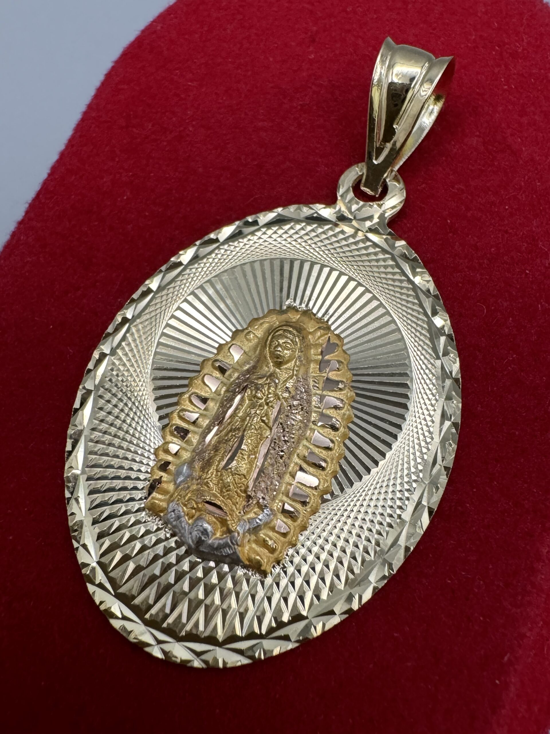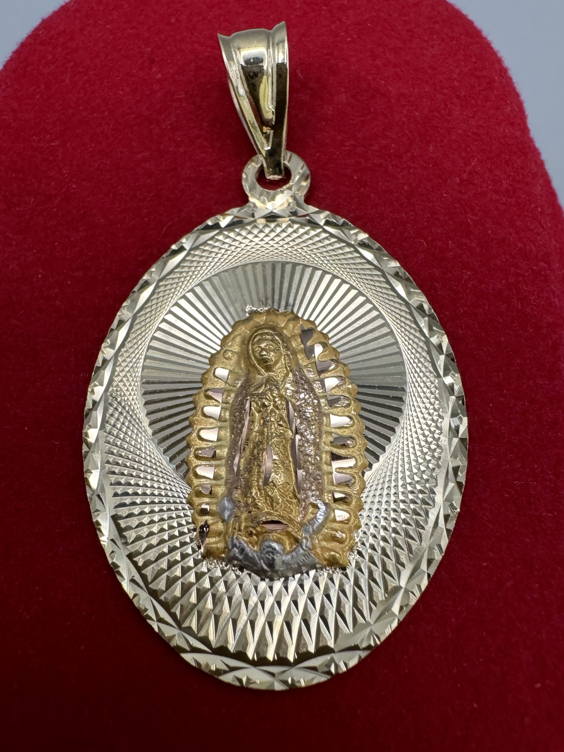 14KT Gold Saint Mary Pendant With LaserCut Design 1.5” Tall By 1” Wide Approx Gold Weight 3.8 Gram