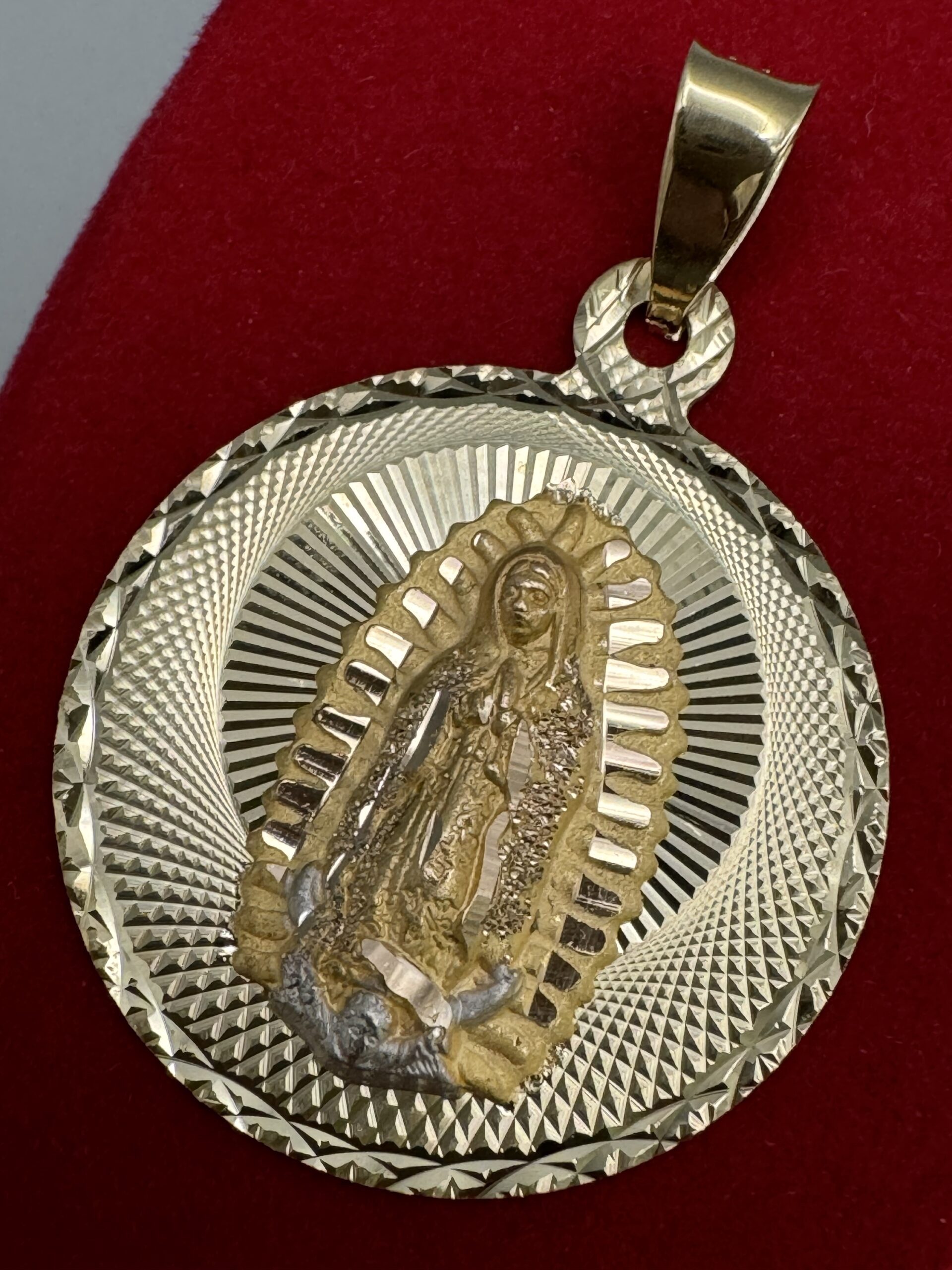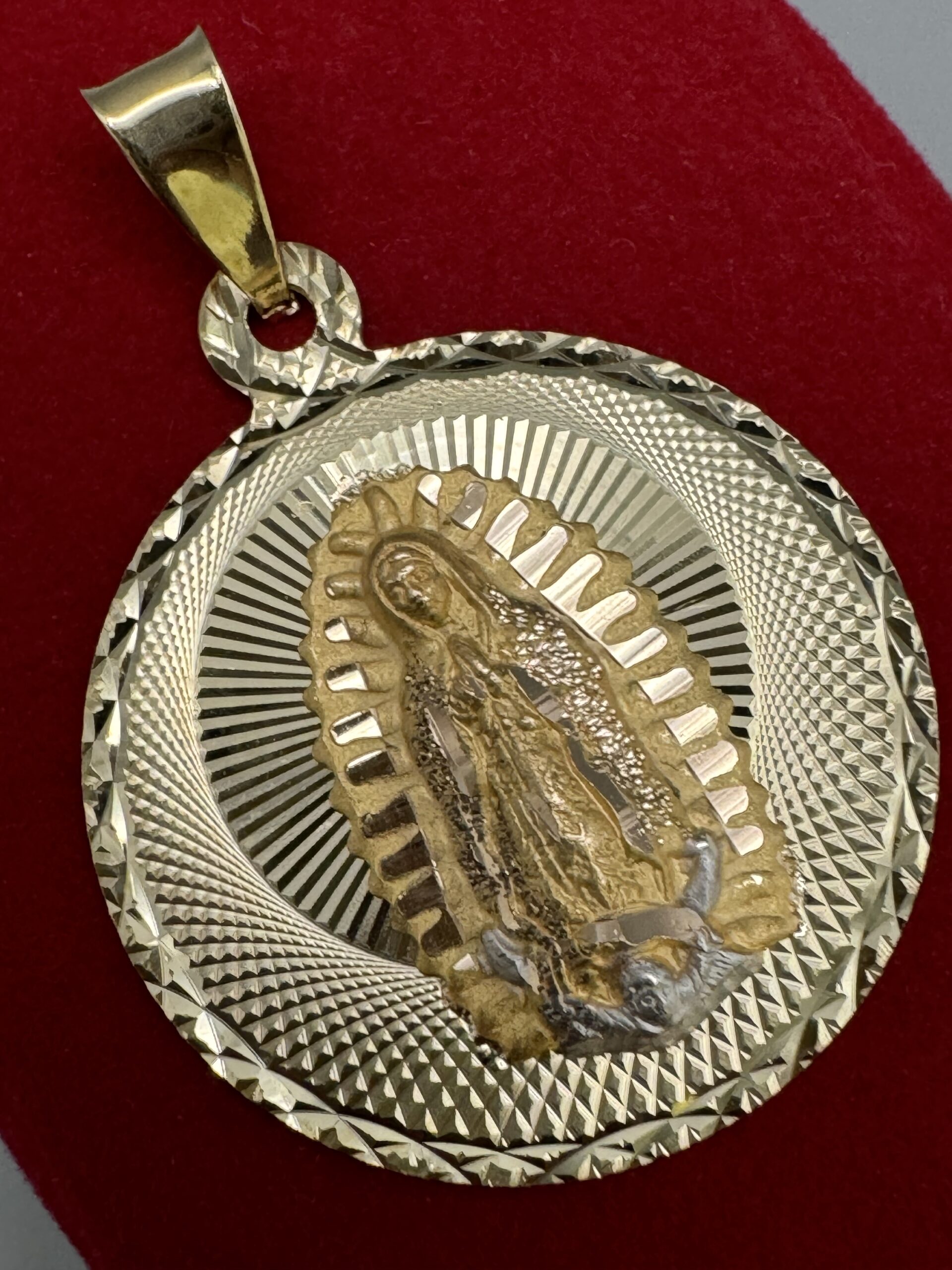Adorn yourself with divine elegance! This 14KT Gold Saint Mary Pendant is not just a piece of jewelry; it’s a radiant reminder of faith and grace that complements any outfit!