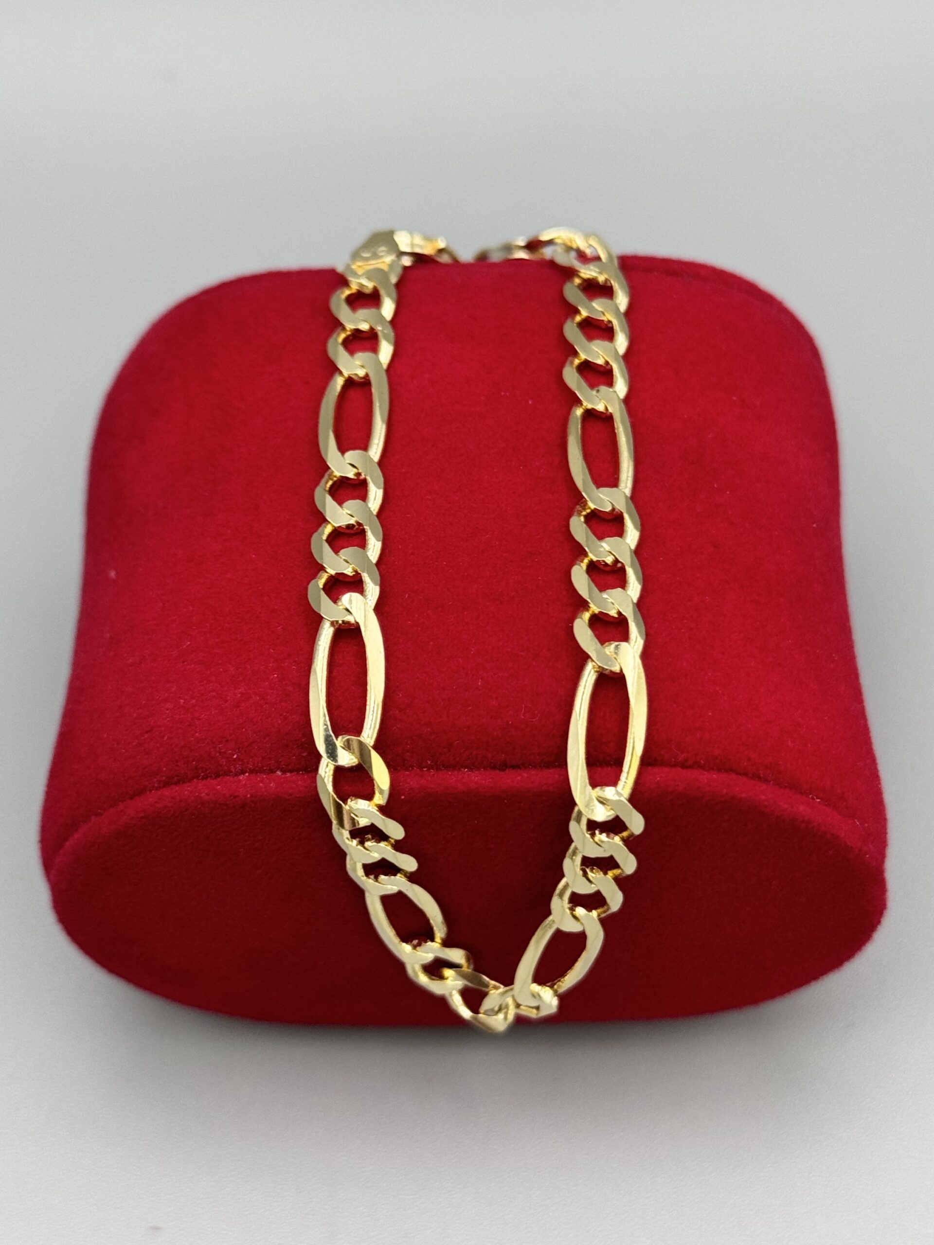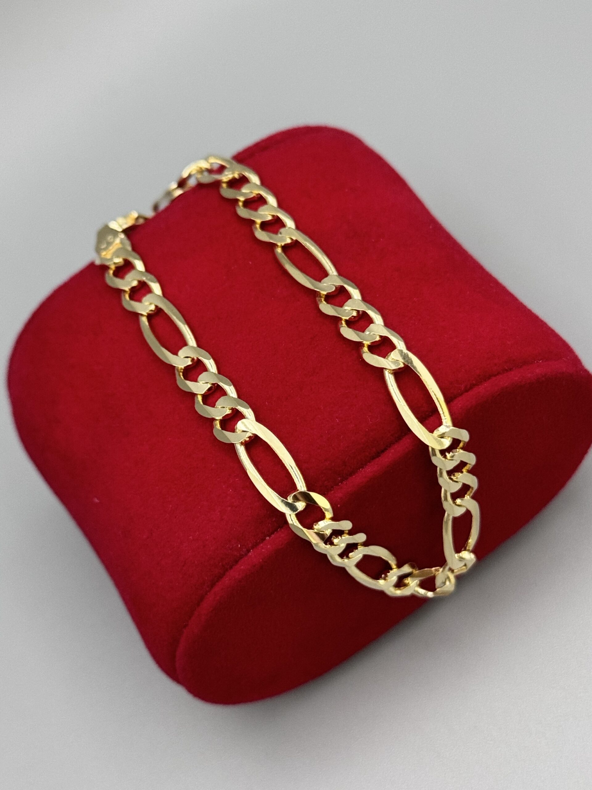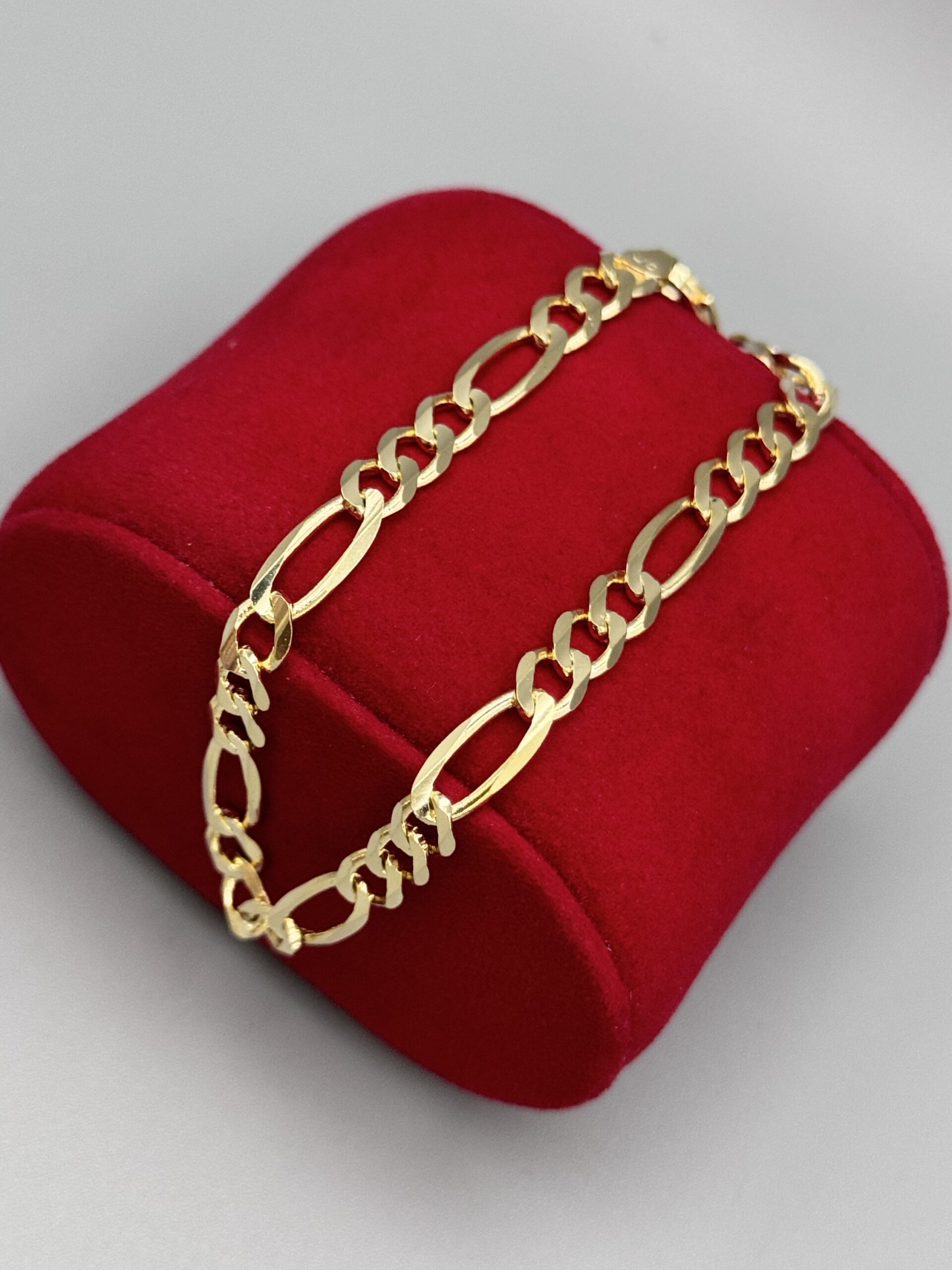 14KT Gold Solid 7MM Figaro Bracelet 9”