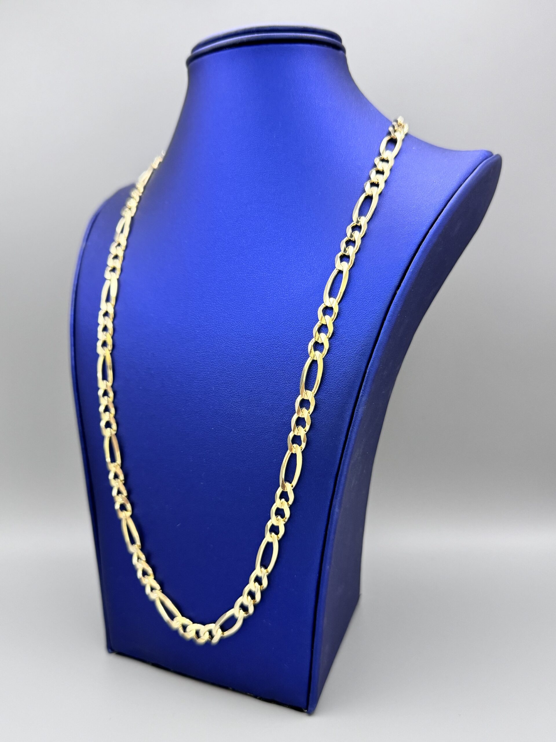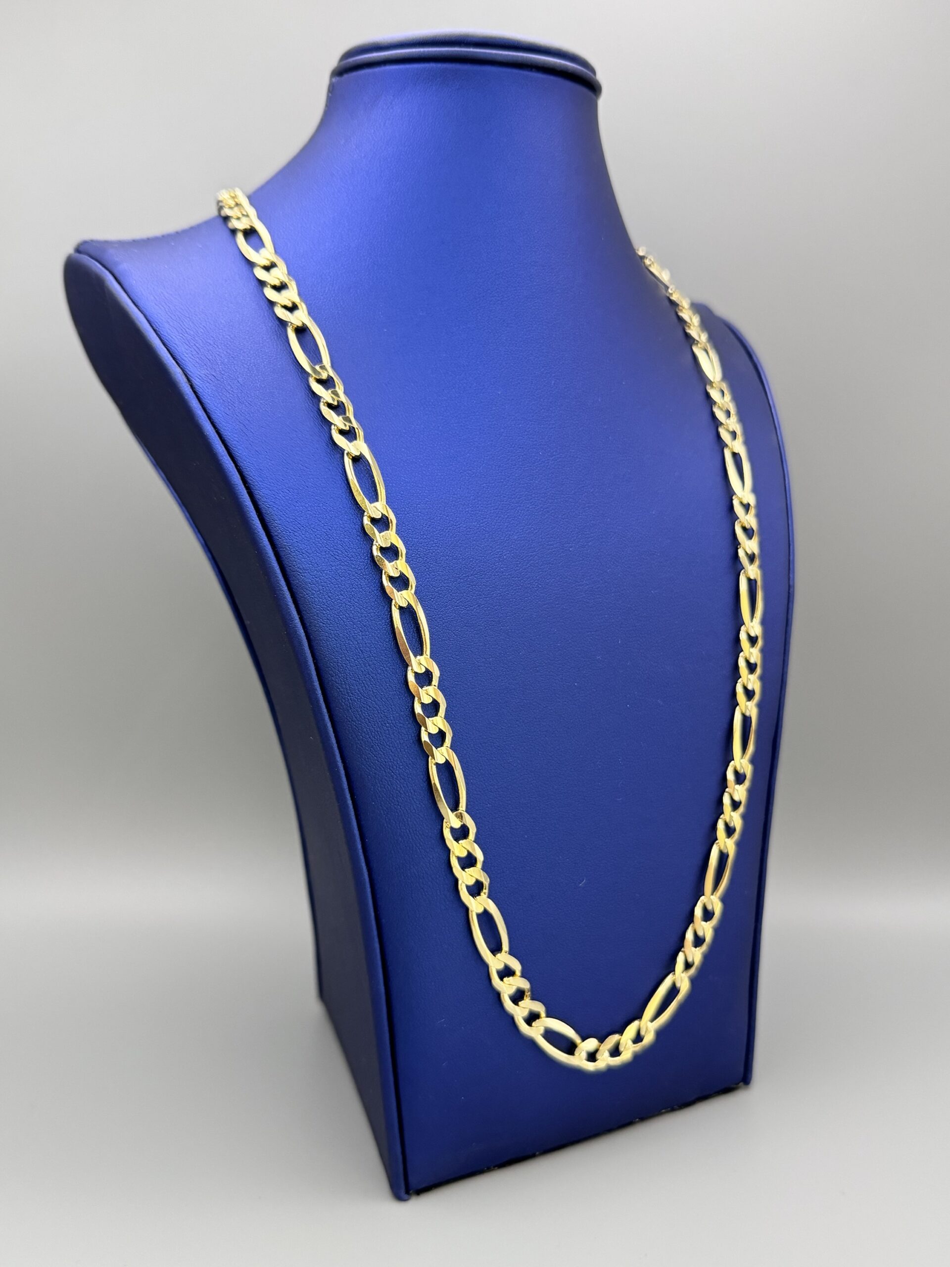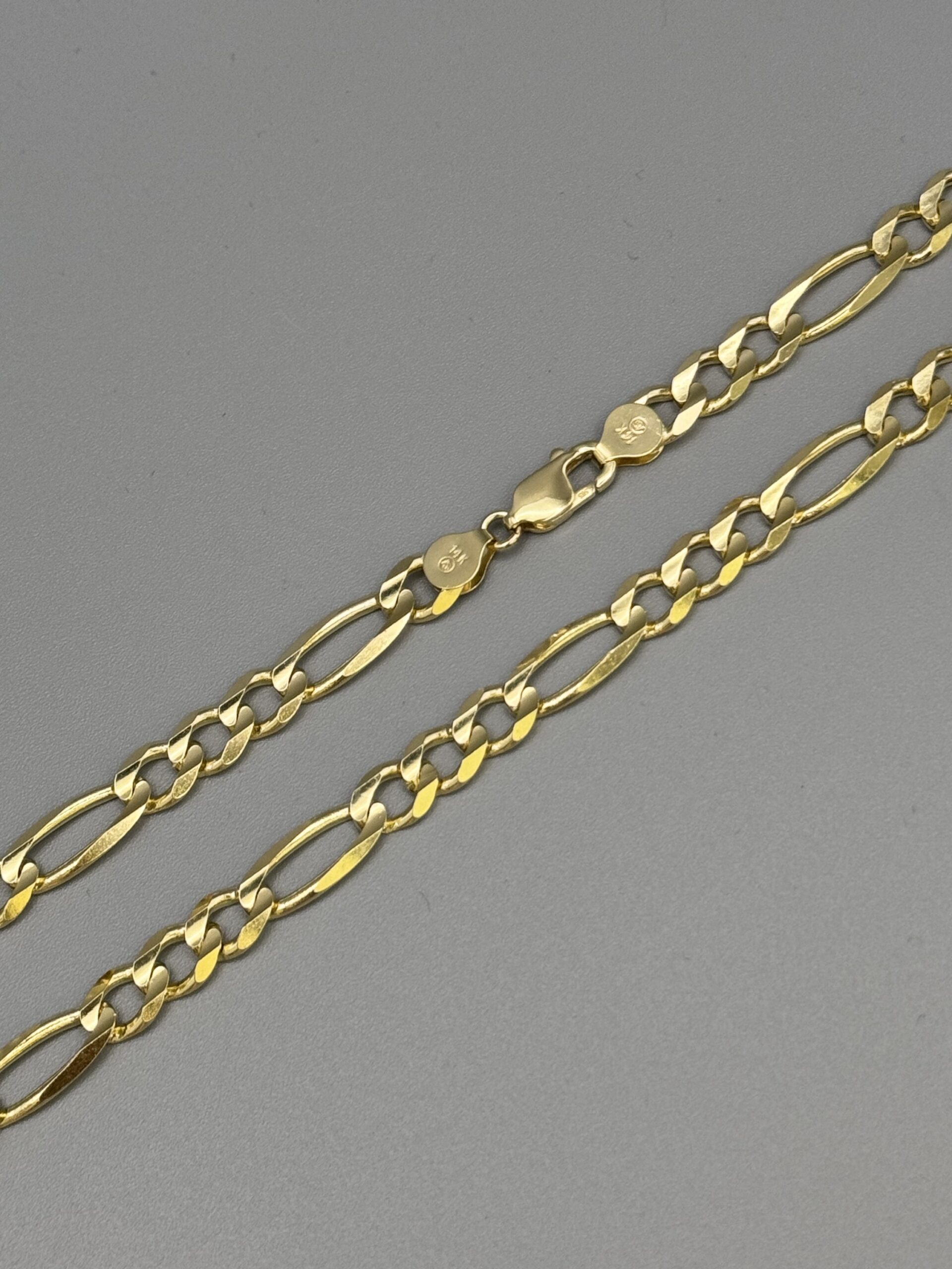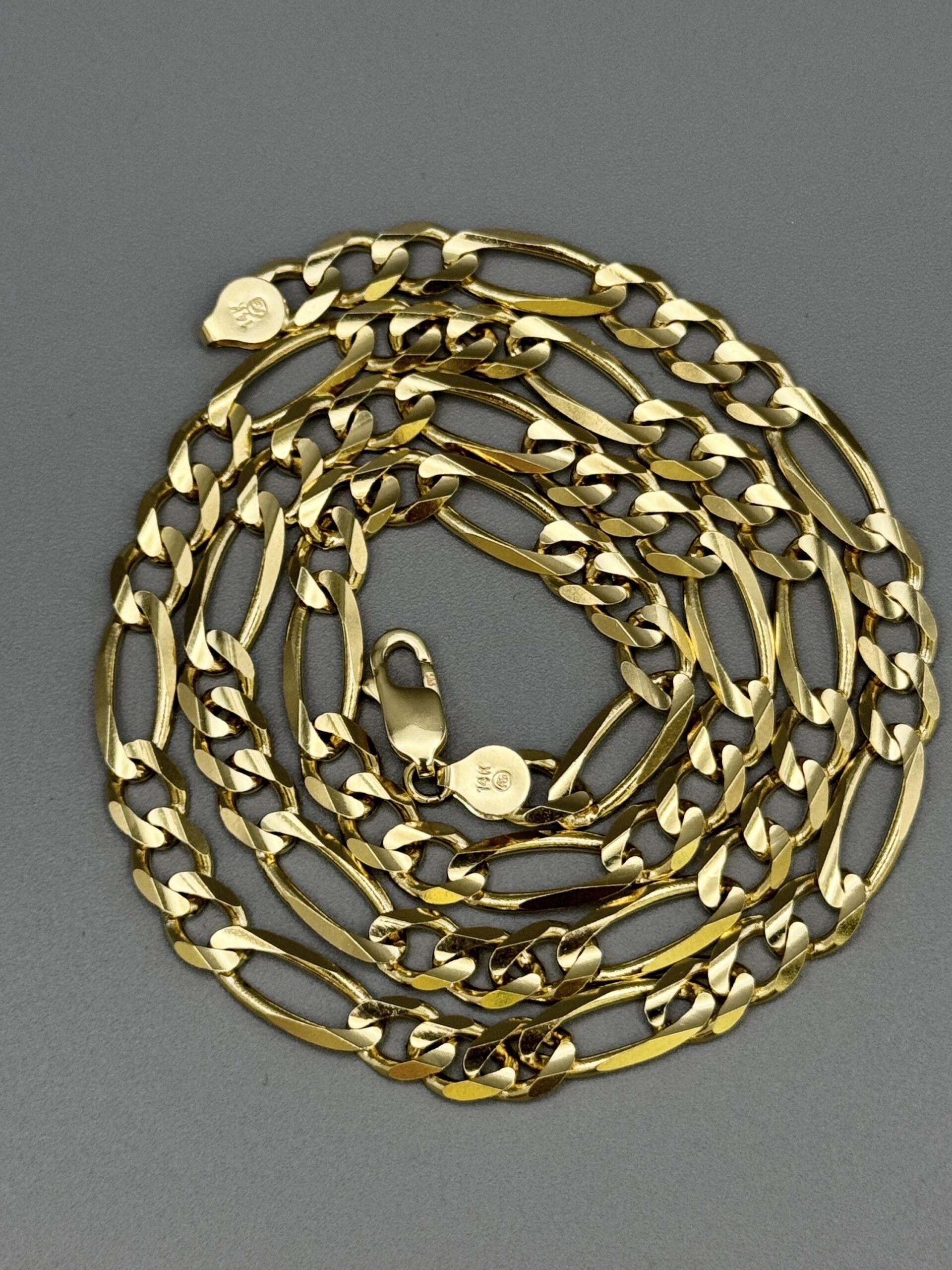 14KT Gold Solid 7MM Figaro Necklace 22”