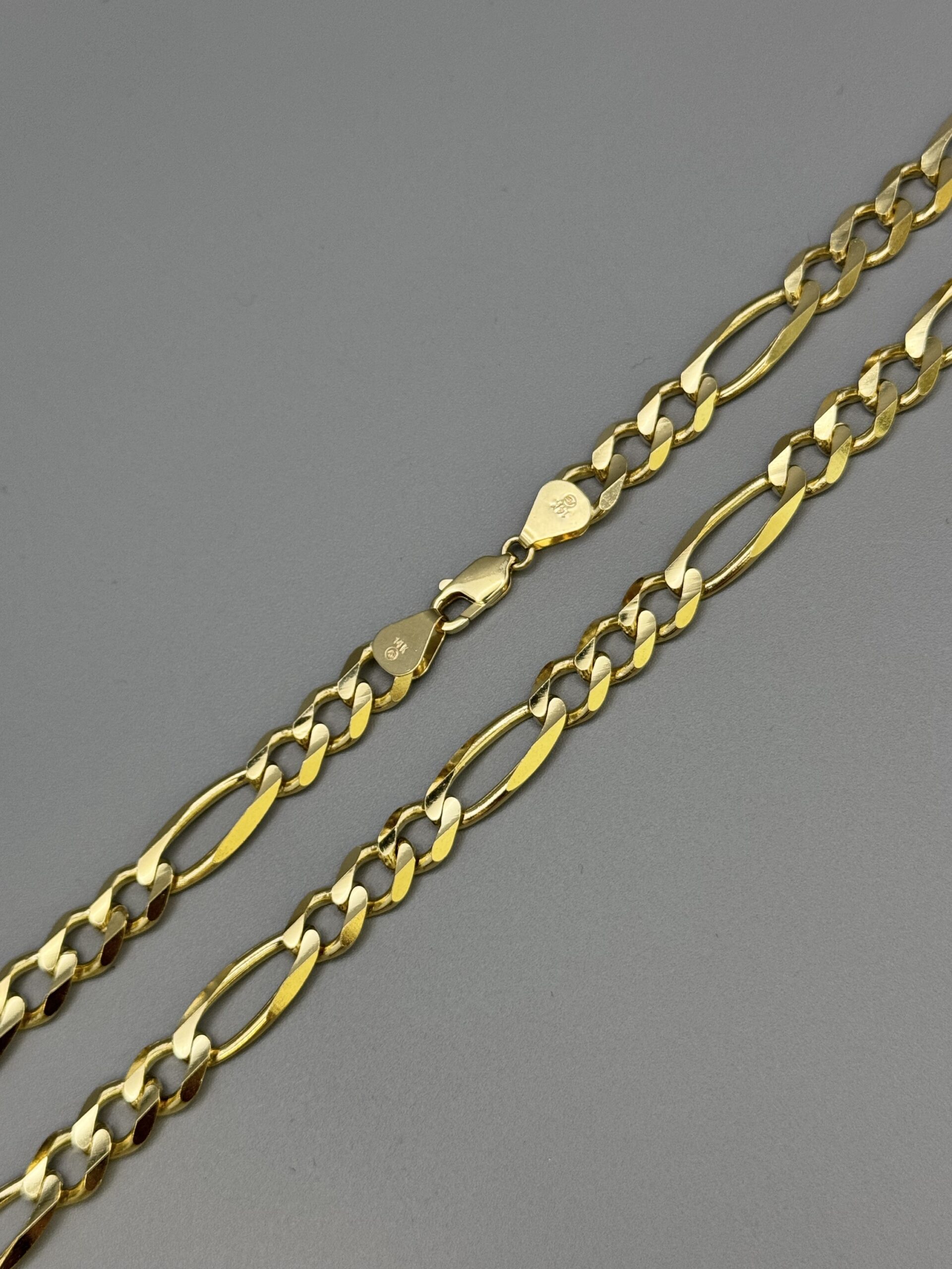 14KT Gold Solid 9MM Figaro Necklace 22”