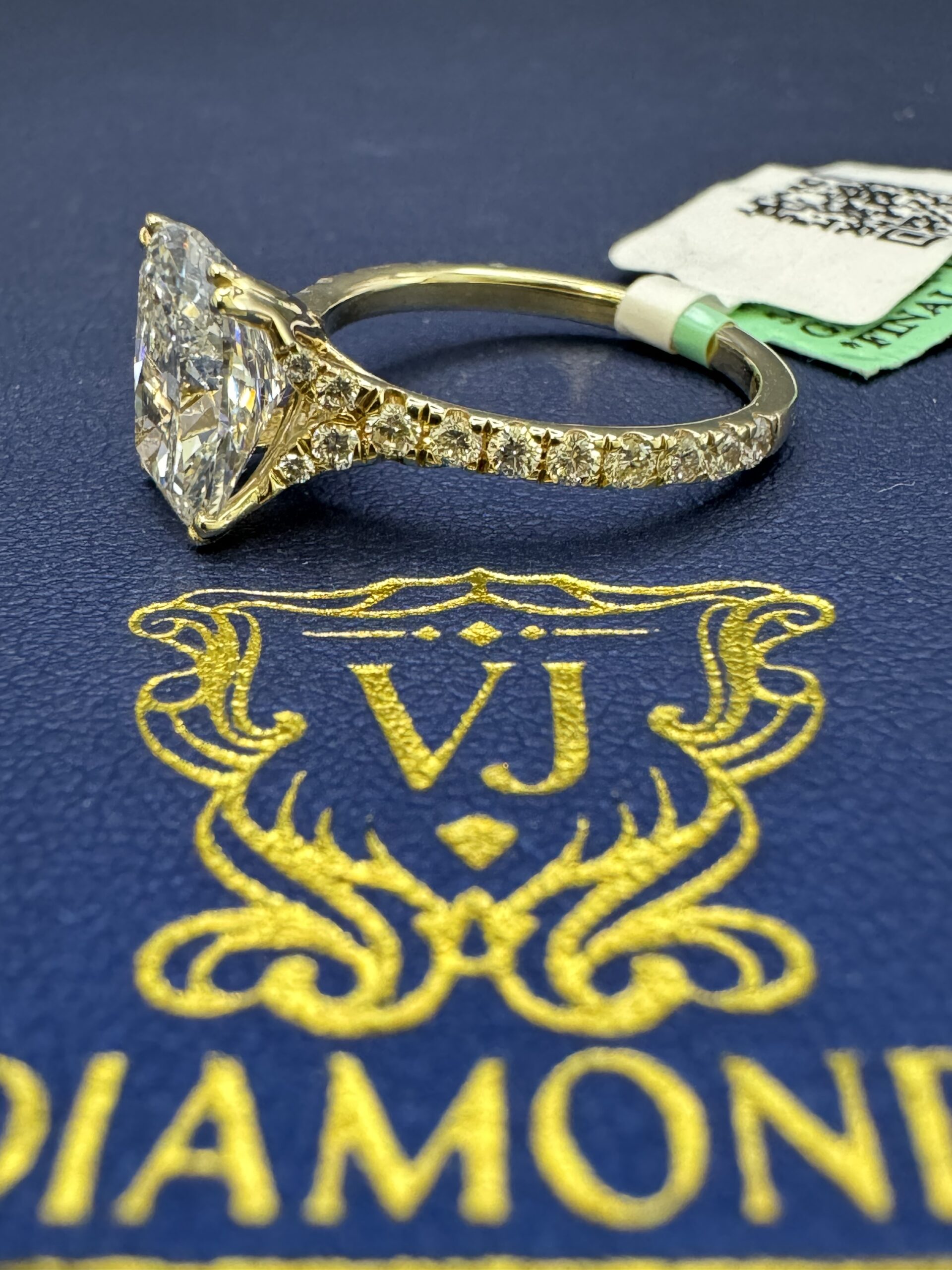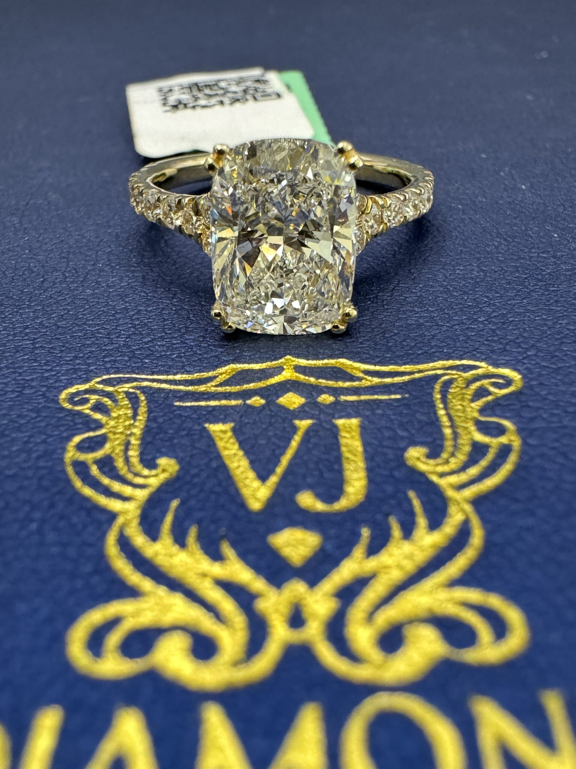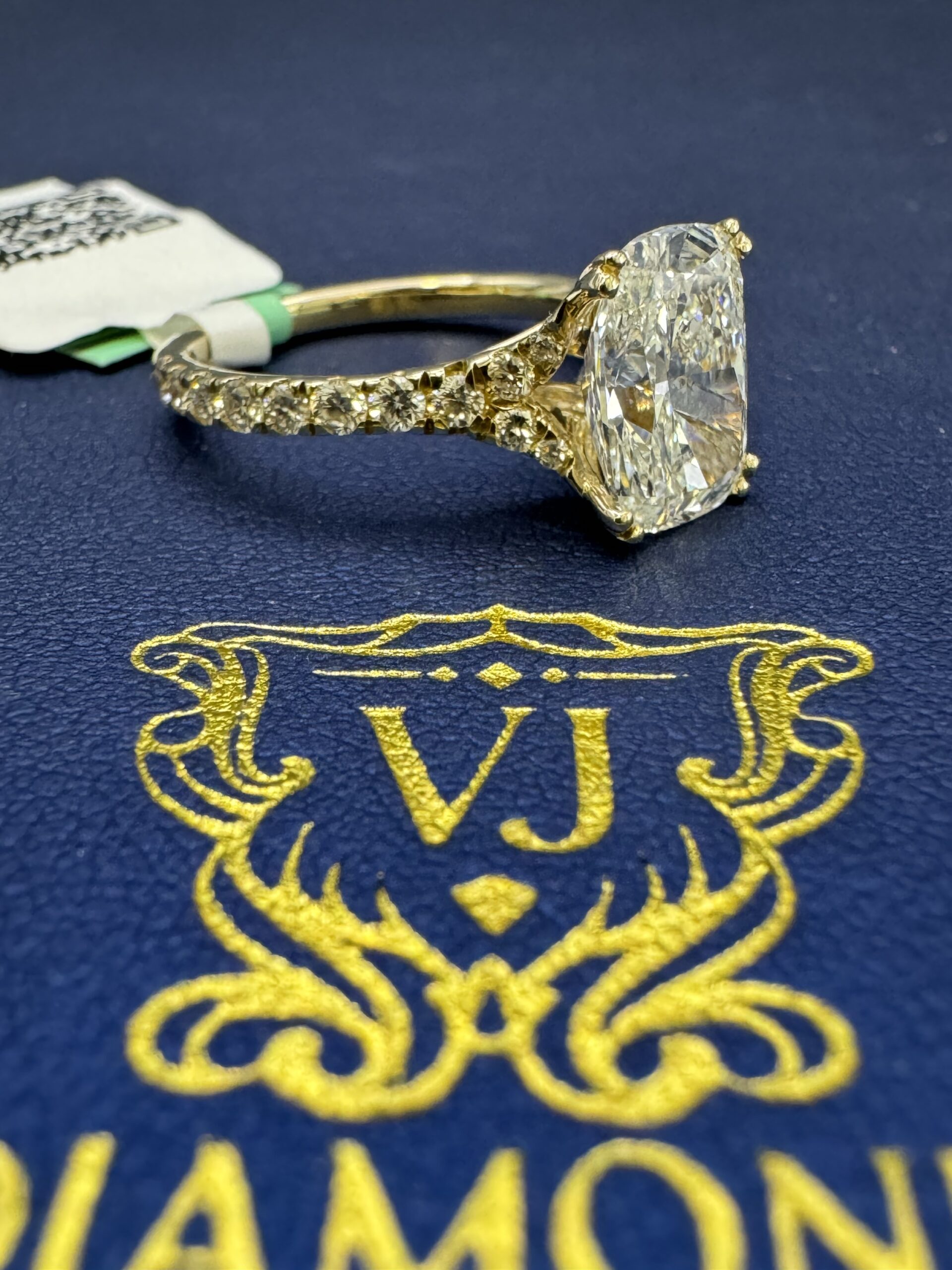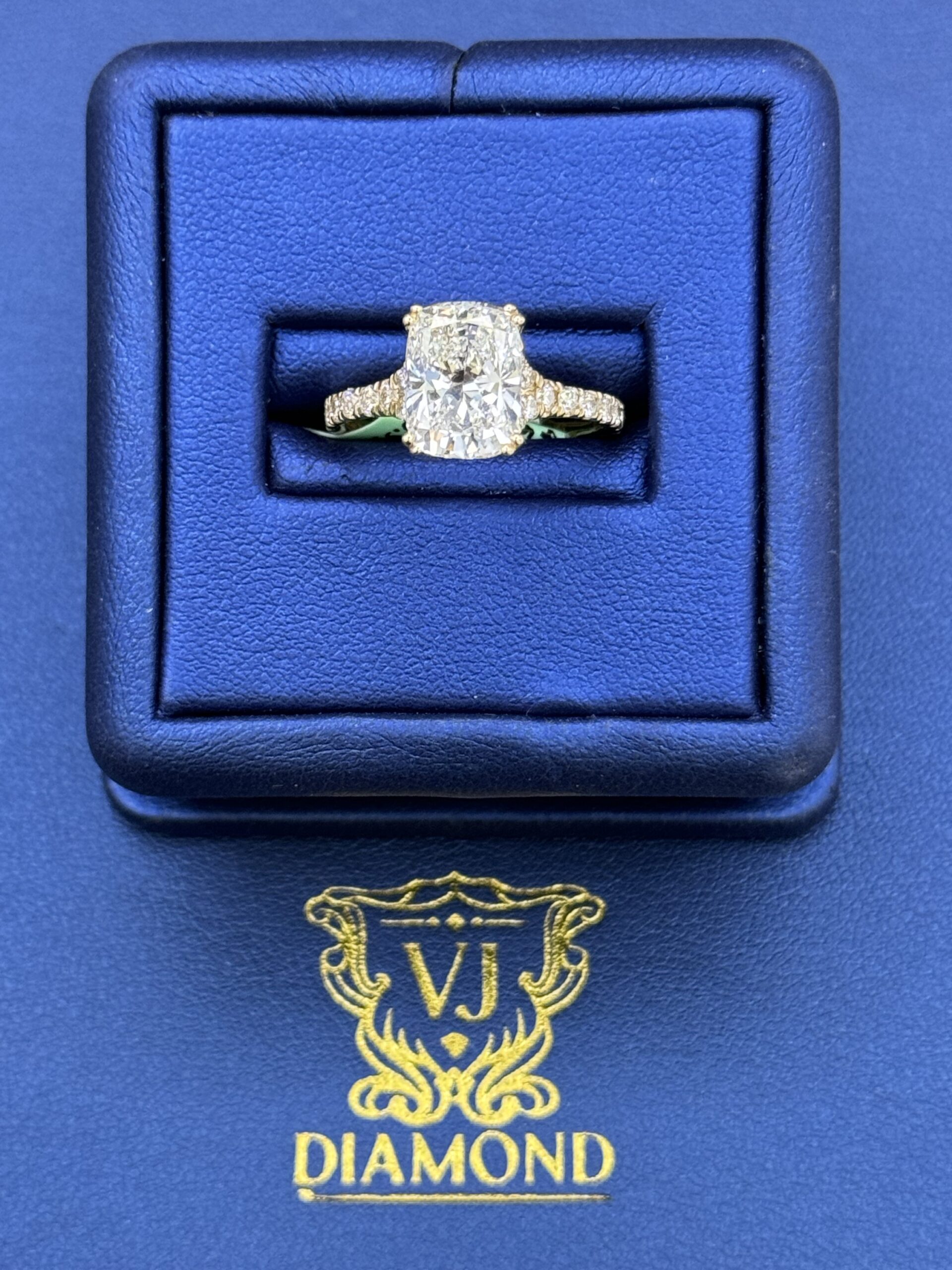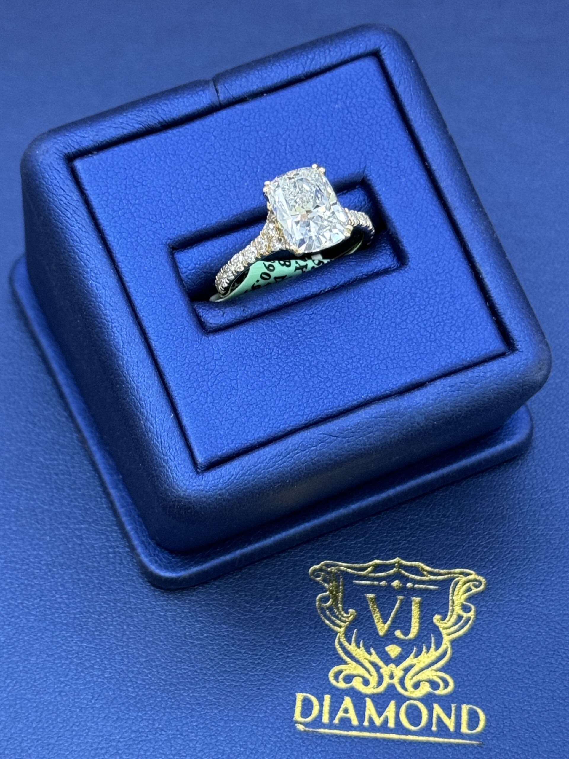 14KT Golf 3.55CT LabGrown Diamond Ring Elongated CushionCut 3.00CT Center Solitaire VS / E-F Clarity Size 7 Comes With Certification Sizing Available