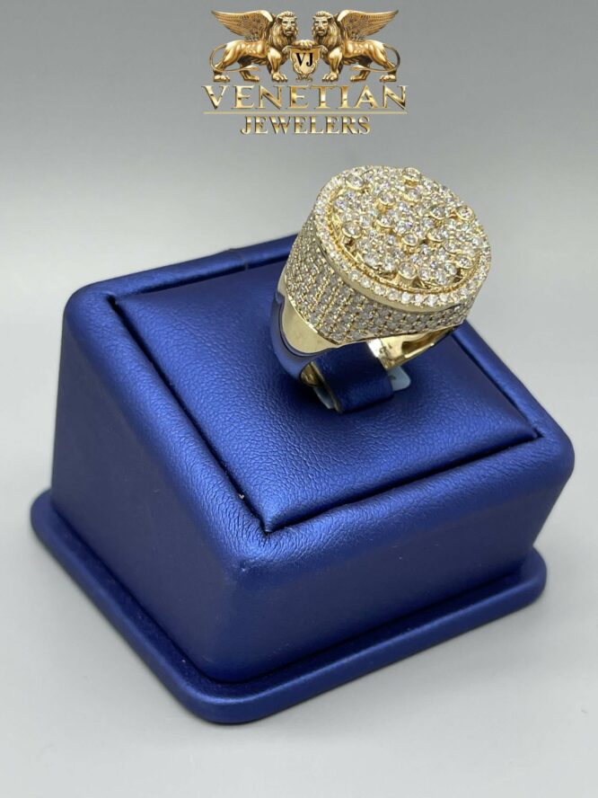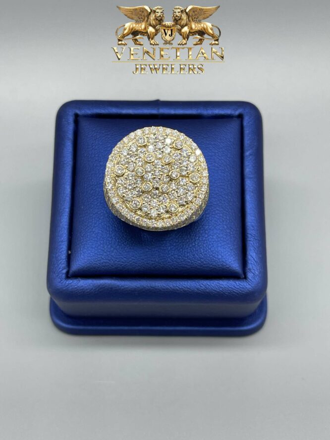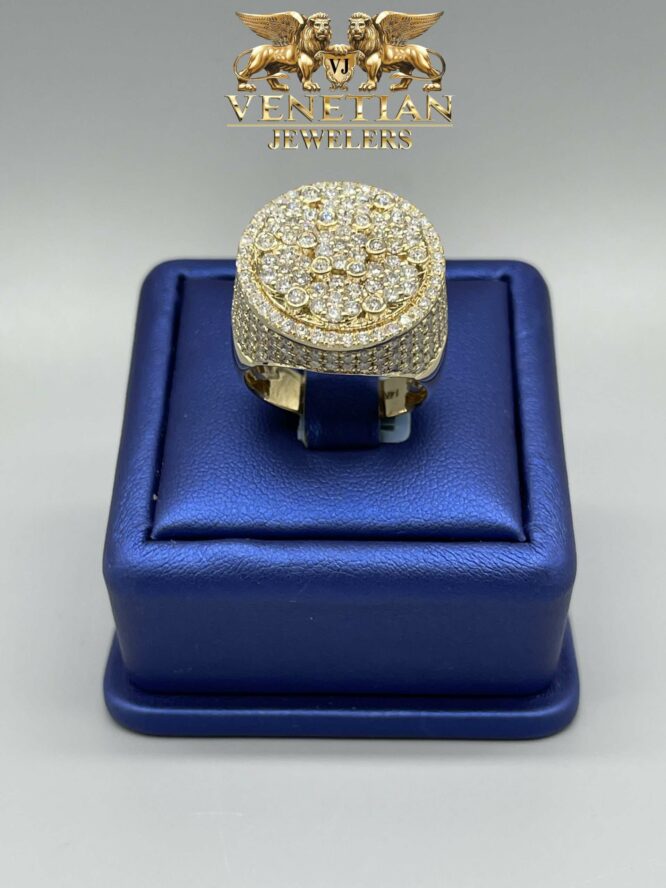 14KT 3.94CT Mens Round Head Diamond Flowered Ring HoneyComb Set