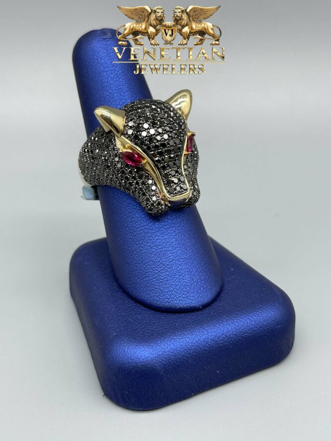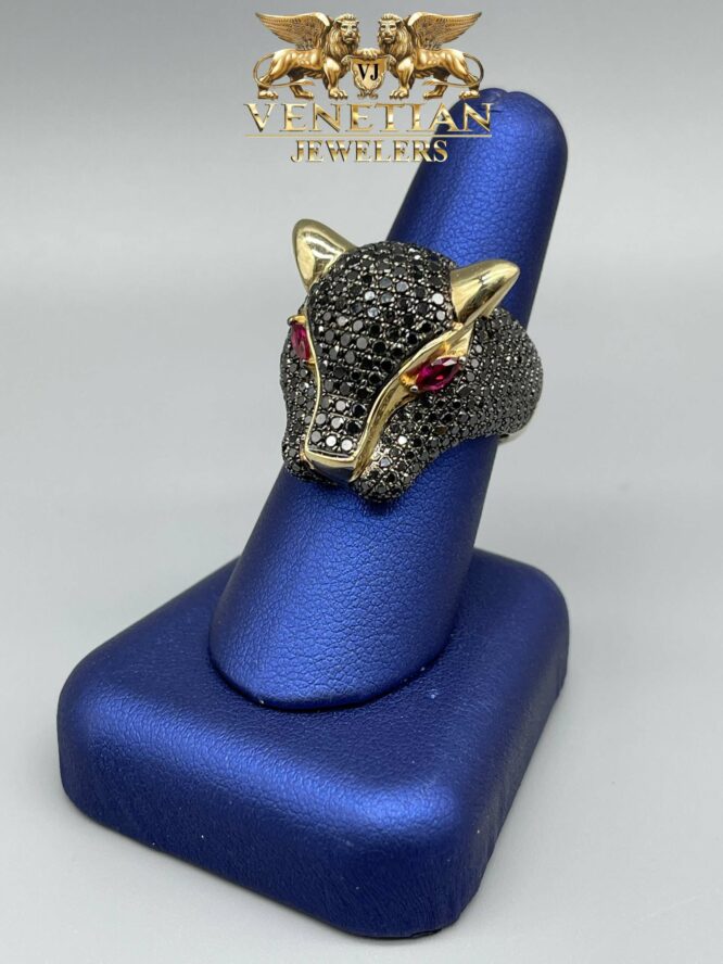 14KT 4.20CT Black Diamond Panther Ring Custom Made