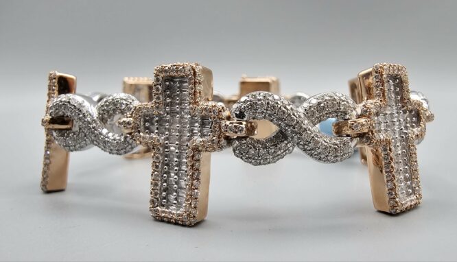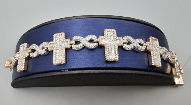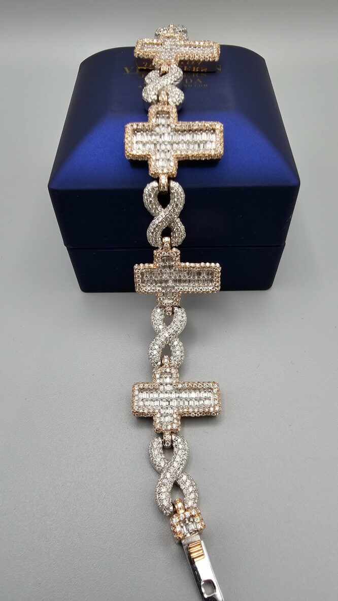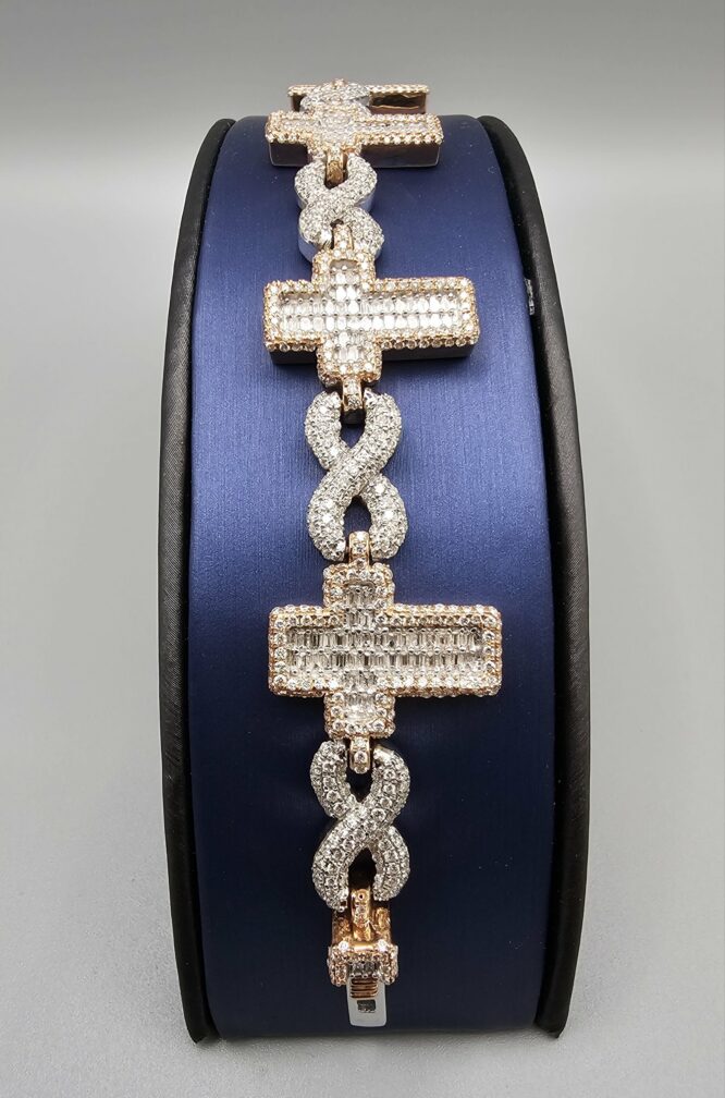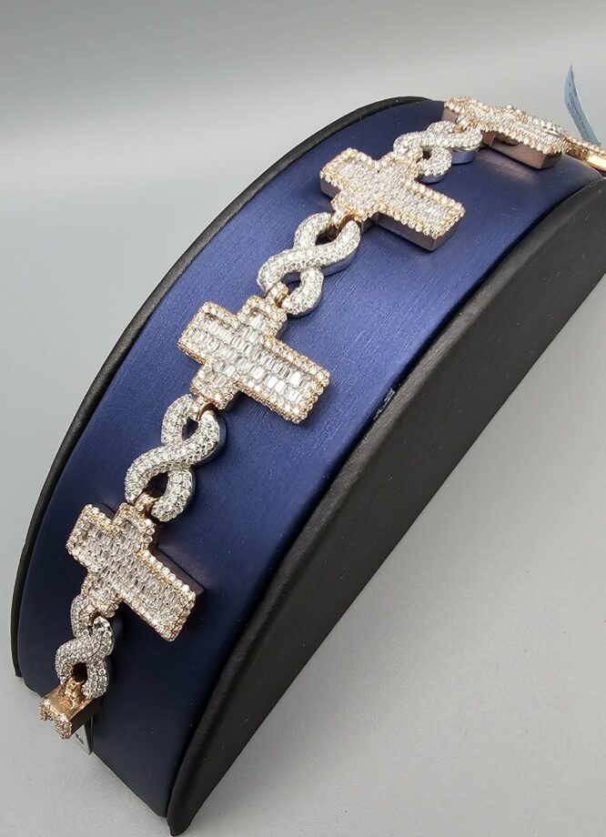 14KT R/Gold 7.75CT Diamond Baguette Cross With Inifinty Bracelet 8″ Approx Gold Weight 49.5 Gram