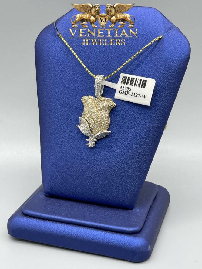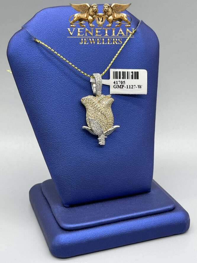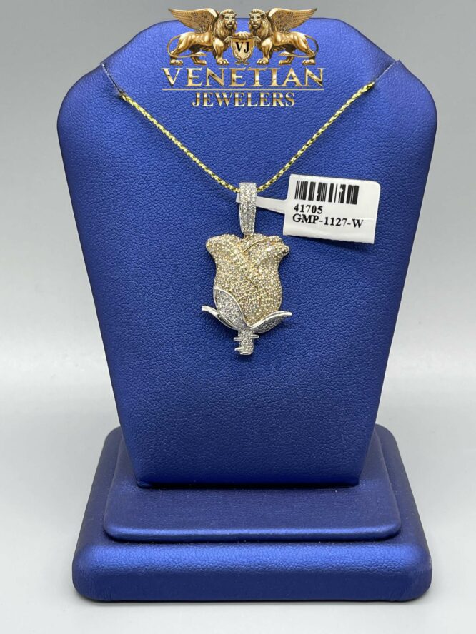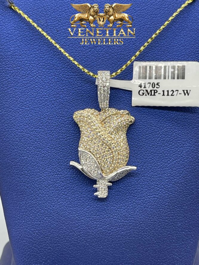14KT Two Tone Flower Pendant With 1.34CT Diamonds All VS Clarity